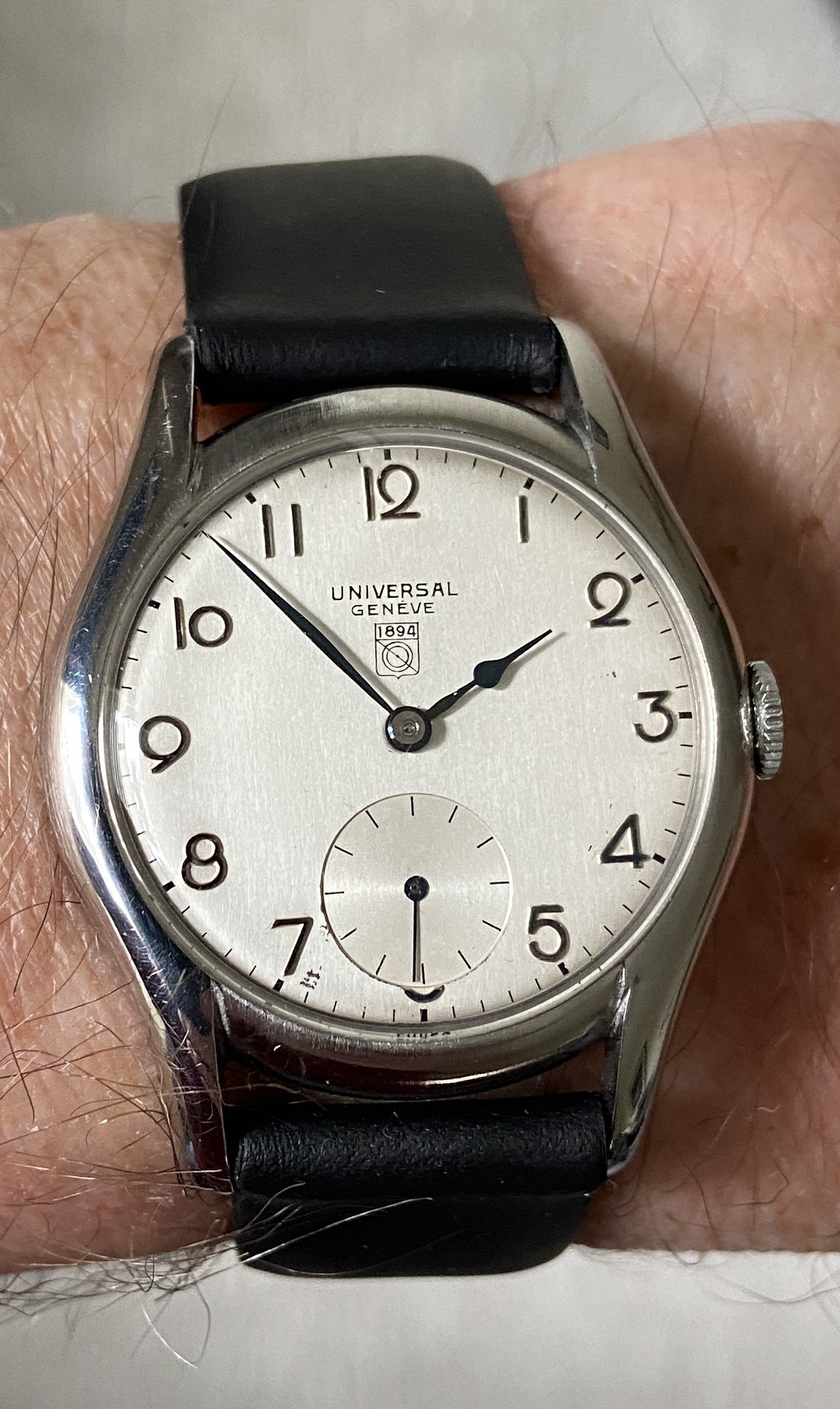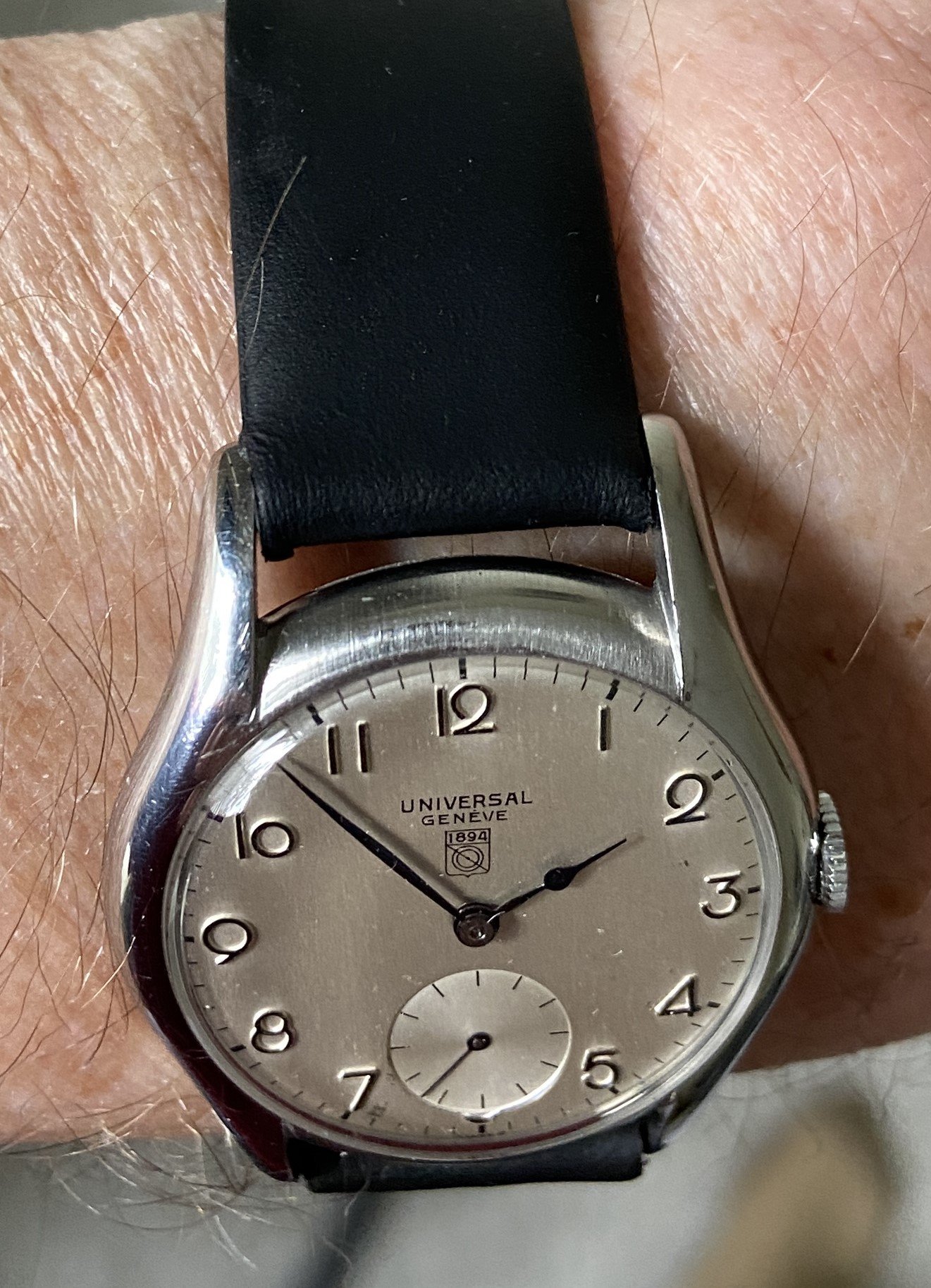 For sale is my Universal Geneve watch with Art Deco inspired numerals, circa 1943.