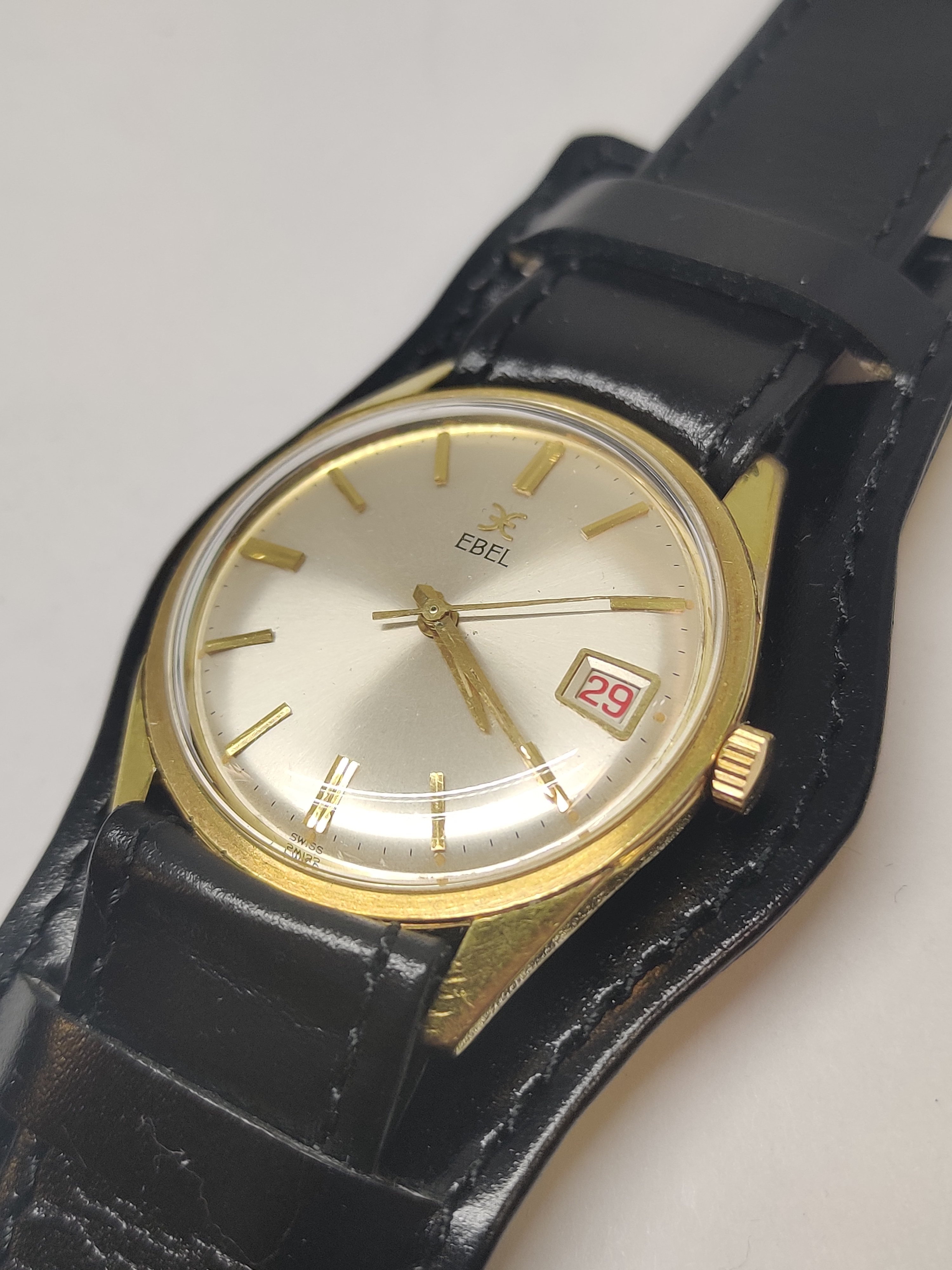 The Ebel is (i think) a gold plated 34mm dresswatch with very cool roulettewheel date and in nice condition, service history unknown.