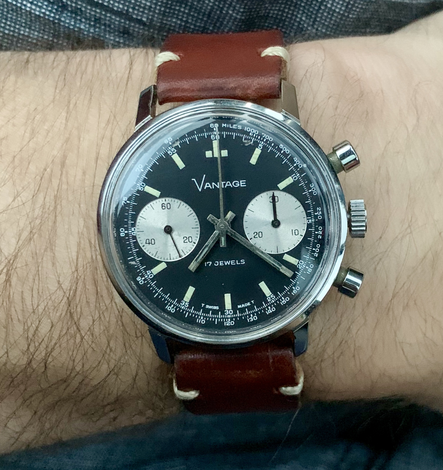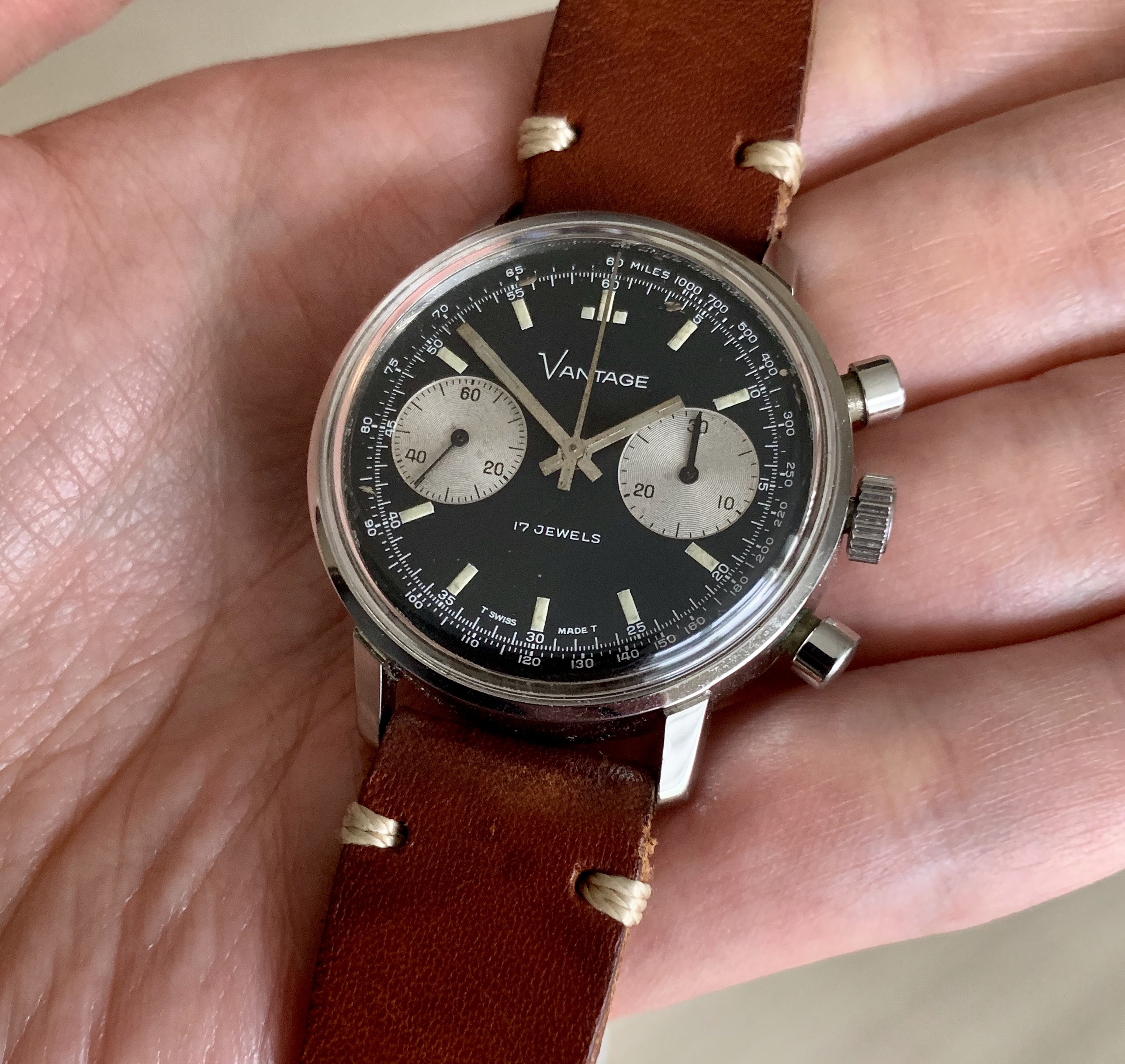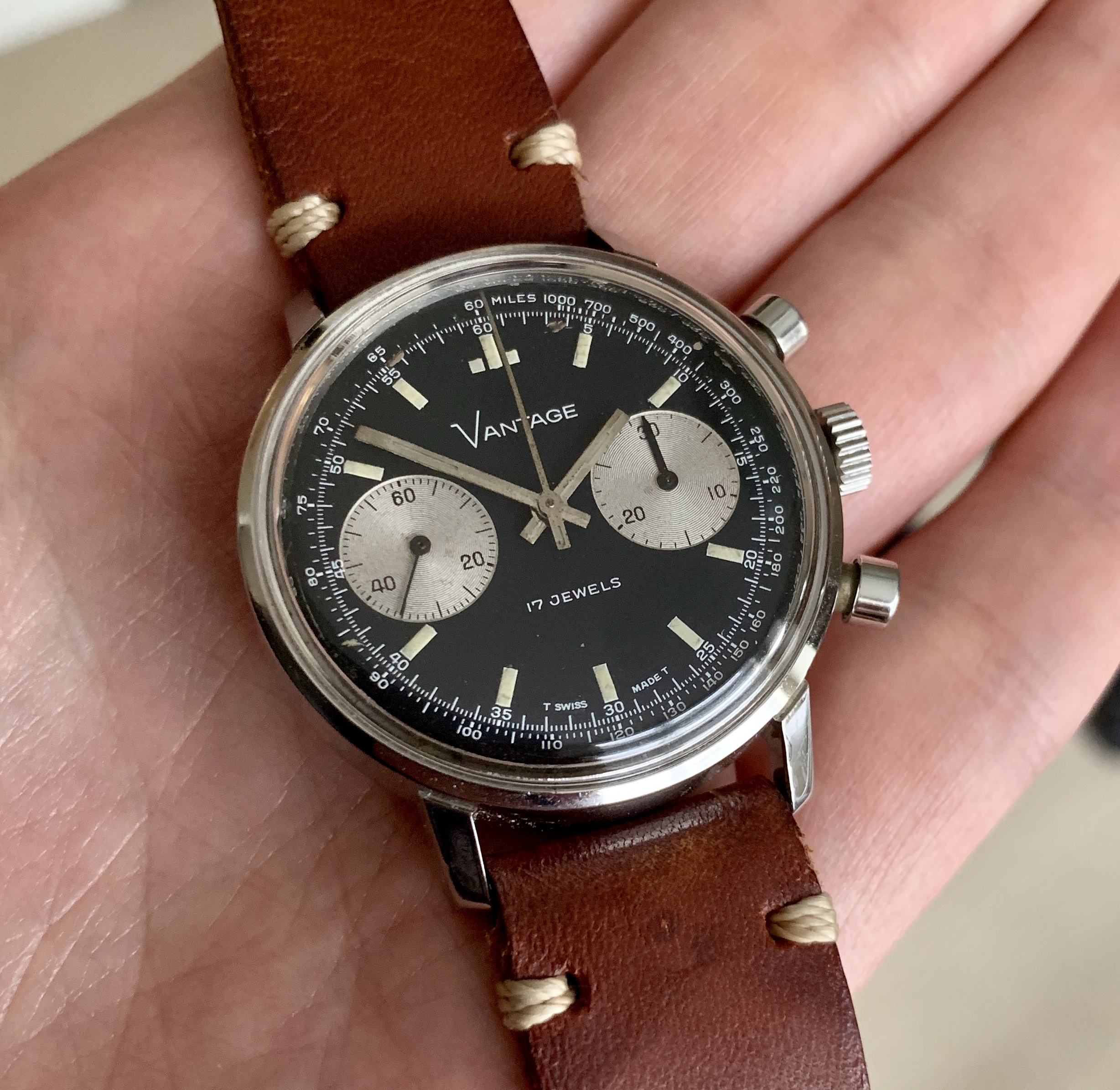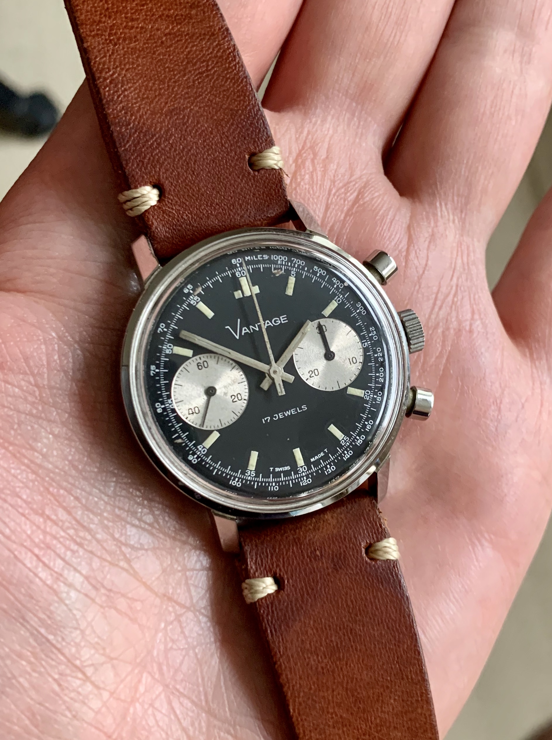 ·Offered for sale is a fantastic vintage Vantage chronograph that features a sought after reverse panda dial. Vantage was a subsidiary of the Hamilton watch company.