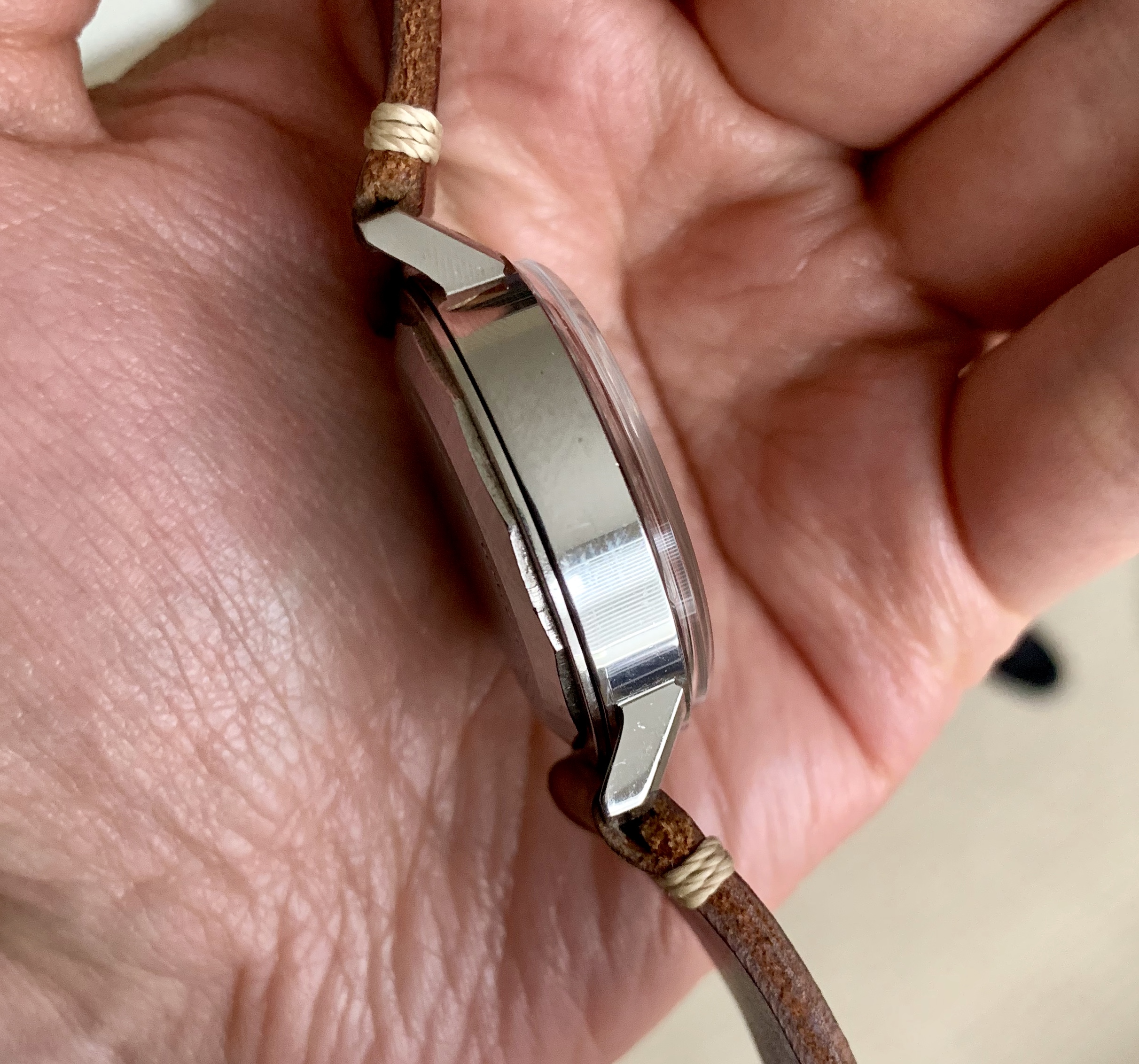 The original, unrefinished dial is in well preserved condition. Small mark next to the 1 o’clock marker.