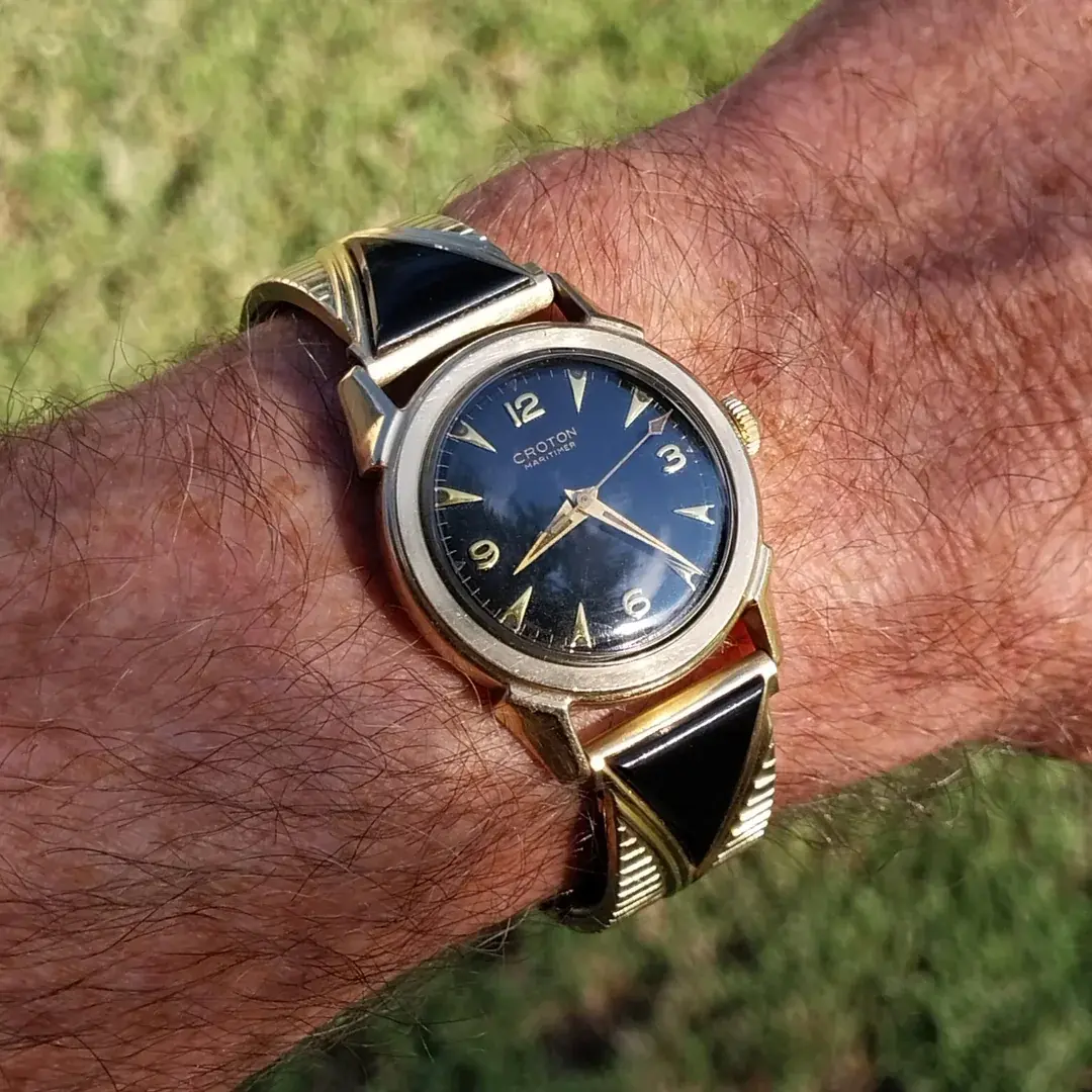 The right bracelet can enhance the appearance of the watch. I grabbed this 1950s black dial Omega when I had the chance as I loved the look of this particular period band on it.