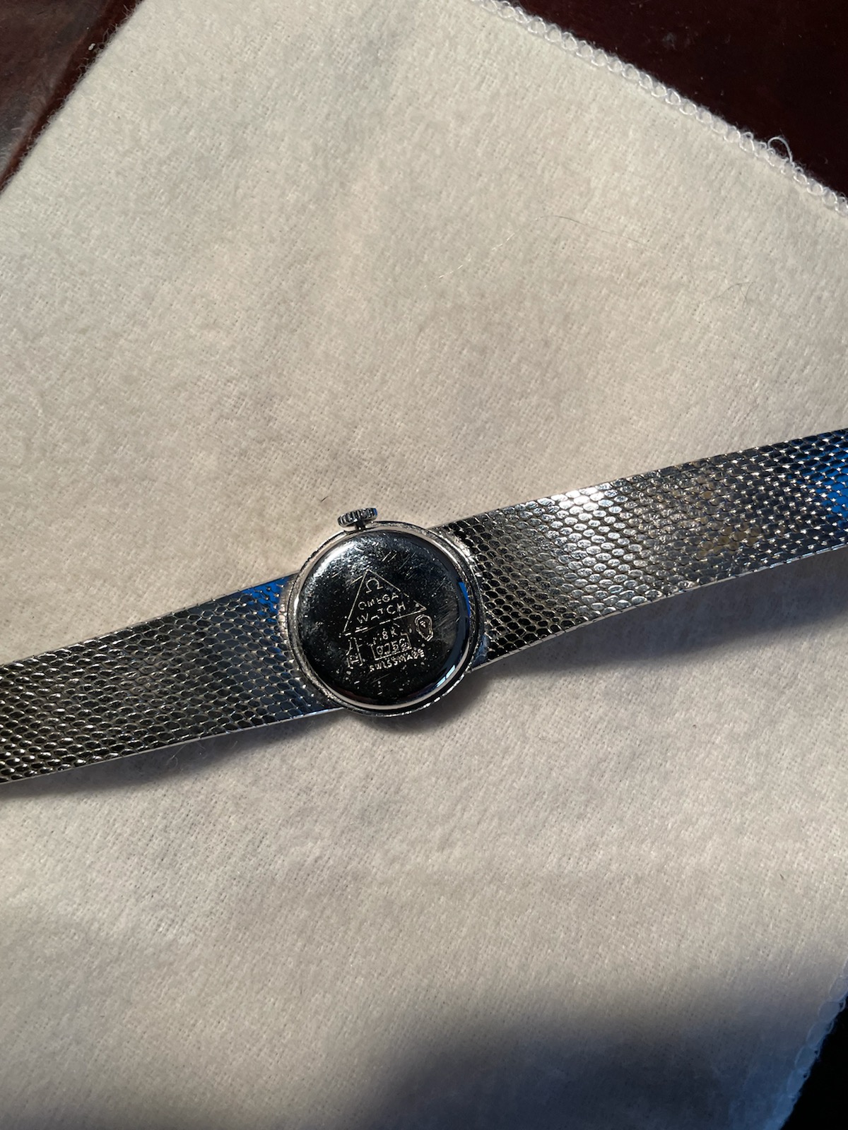 I just ran across this forum while trying to research the authenticity of a watch. I have a ladies watch that has been with my wife prior to our marriage over 25 years ago. It appears to have been made after 1959. I am asking if any of you can give any advice on its authenticity as my wife has asked me to sell it for her. I do not know if it is authentic, nor the sale value. There are no markings on the back of case, and only OMEGA on the inside. Thank you for any advise.