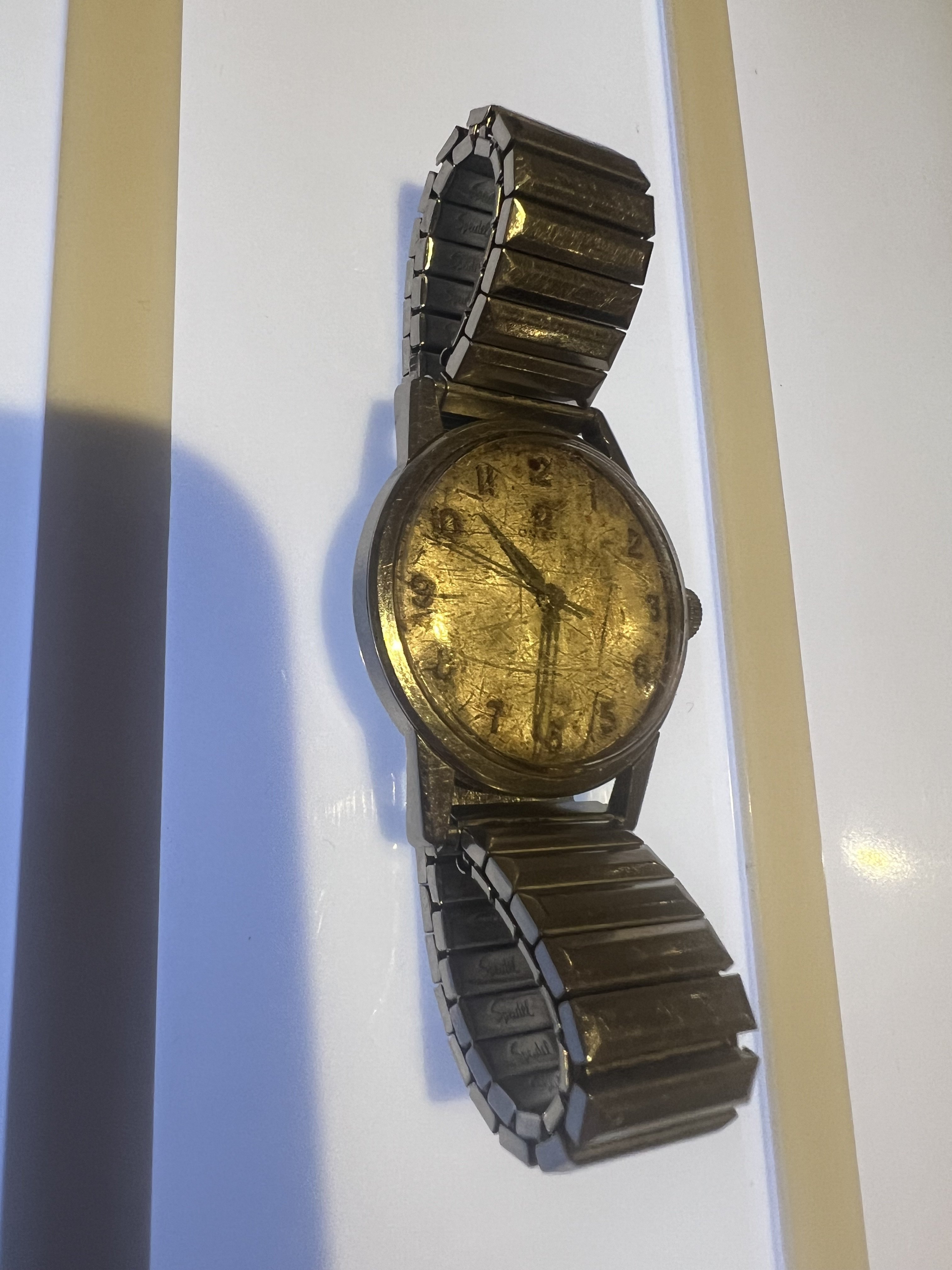 I was given the below watch by late grandfather and I am trying to identify what I can about it, as I will be looking to get it restored.