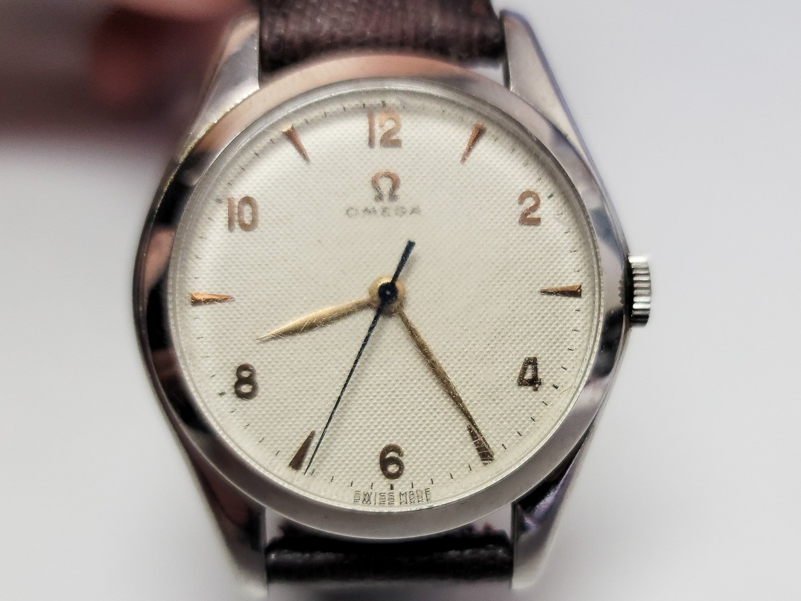 I have been lurking on the forum for a few weeks. I have decided I want a vintage watch that I can wear on a regular basis. I have spoken to customers and friends in case they have something laying around they would be willing to part with. I have one friend that told me he had an omega he got in 1963 when he was 10 years old and while he wasn't interested in selling it he would bring it in for me to check out. He brought it in and it is about as close to perfect in style and size as I am going to find. One thing I do not want is a gold watch or anything larger than 34mm (small wrist).