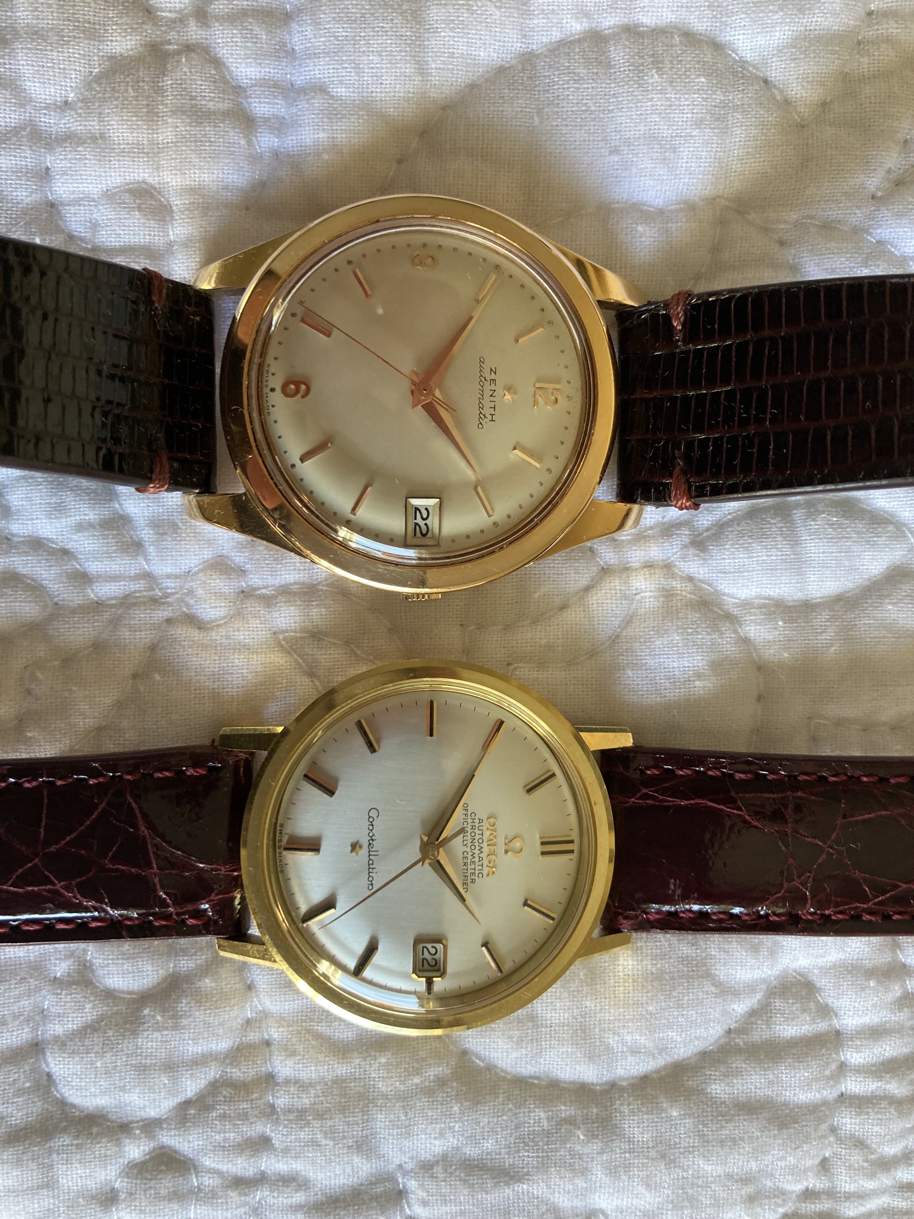 Posts 204 Likes 344 DTMwatch ·Jan 10, 2023 Another shot of the tow gold dress watches from Zenith and Omega. This pair date to around 1958 and 1966, respectively.