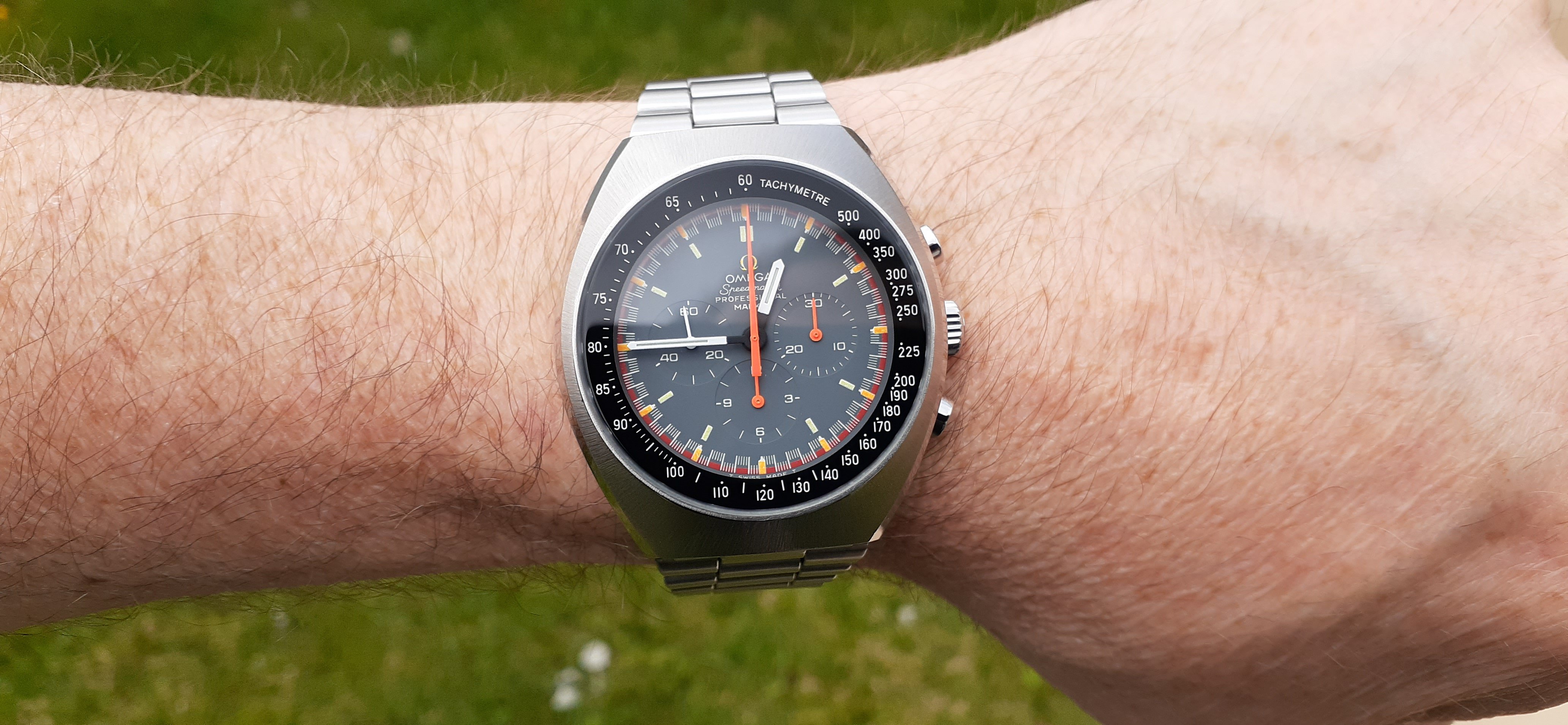 Finally, the Omega that started my love for vintage Omega watches. My Speedmaster Automatic "Mark 4.5" Ref. 176.0012. I chased this model for about 15 years after reading about it on Chuck Maddox's site and finally found the right one in 2018. Not easy because they are hard to find in good condition and are priced all over the place. I snagged this one on eBay for a great price too. Timing is everything I guess.