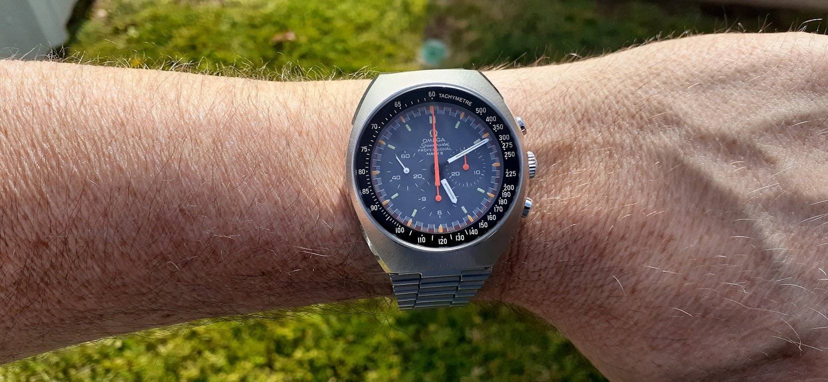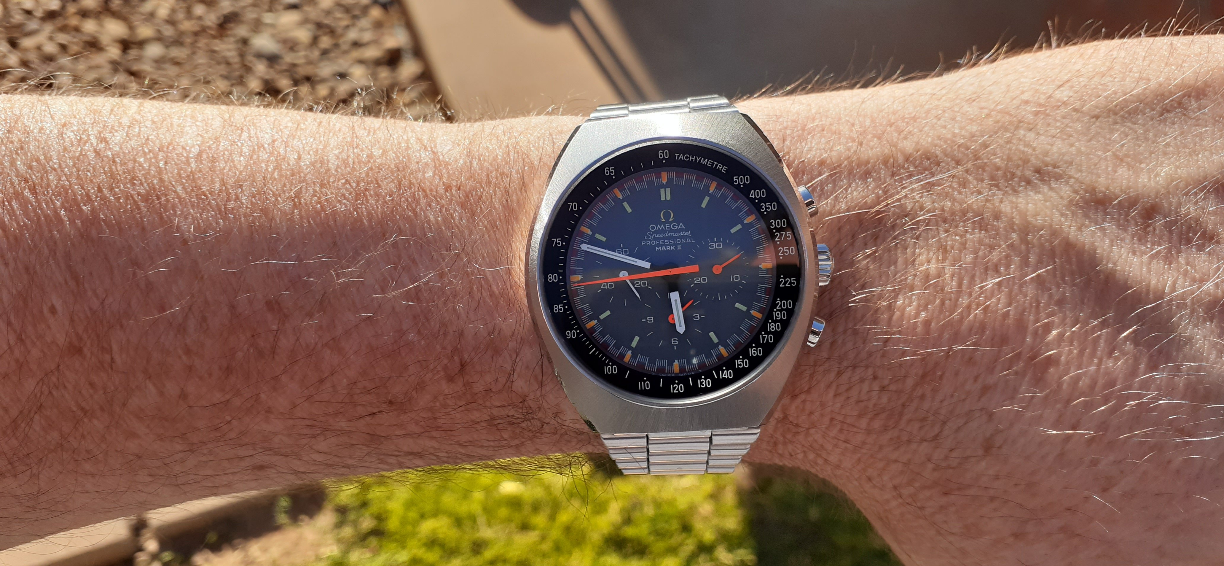 1969 Speedmaster Professional Mark II Ref 145.014. It was an impulse buy last year while on a two year search for a nice flightmaster. The seller posted fairly bad photos and the crystal was terrible so I was the only bidder and got it for a bargain price IMHO.