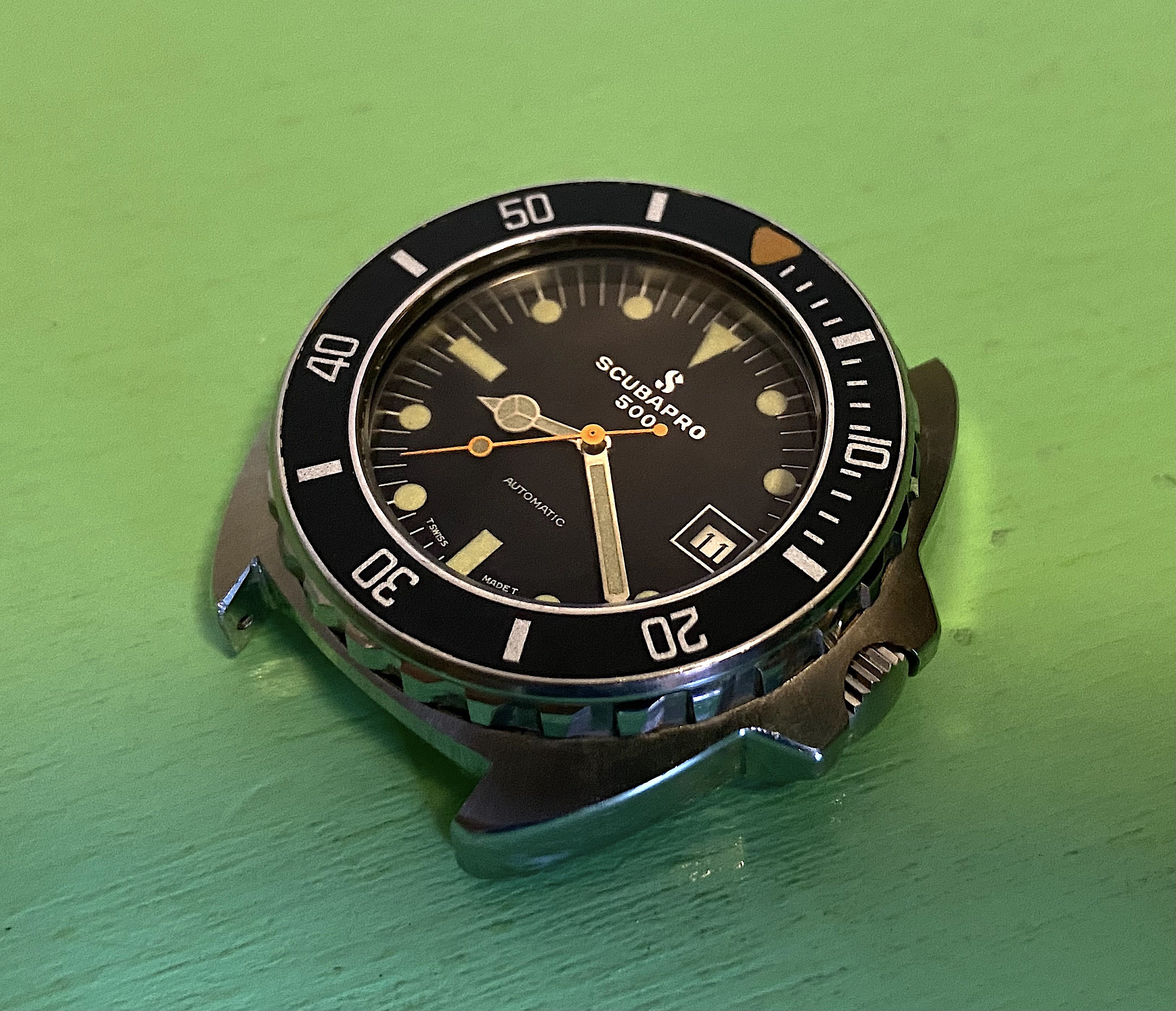 STAINLESS STEEL SWISS MADE case ref.# 67199 SUPER-WATERRESISTANT "SCUBAPRO WORLDWIDE" Diver's wrist watch came with black or white bezel. With a 17 jewels unadjusted Swiss "SCUBAPRO" stamped ETA 2784 automatic movement with quickset date function, 41 hour power reserve (same as 25 jeweled Tudor Submariner Snowflake 94110 Automatic Movement)