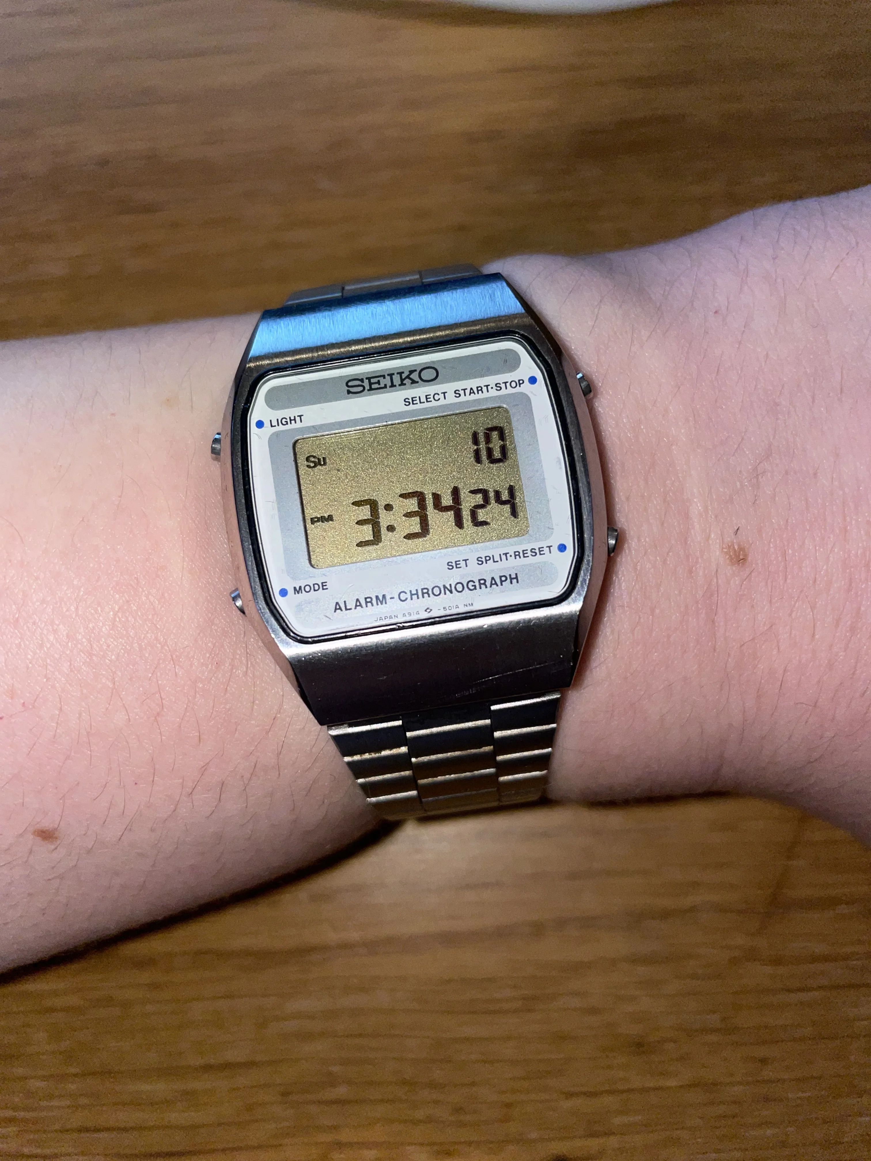 My grandad used this watch from new back in 1984 up until 2013 when the display gave out. I always had a fascination with this watch as I'd see it on his wrist nearly every single day and due to the colour scheme it always stood out more than traditional styles like the Casio versions.