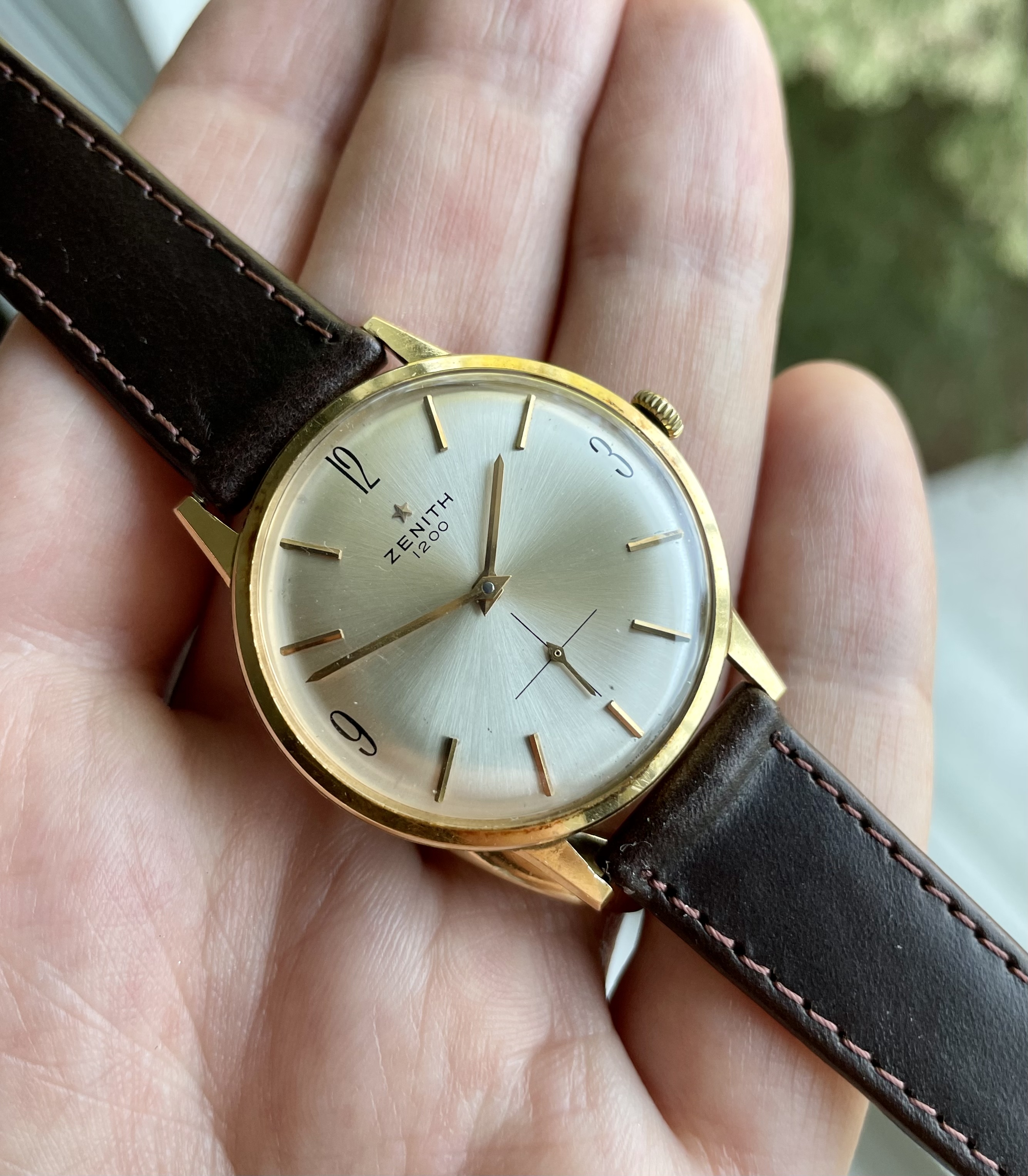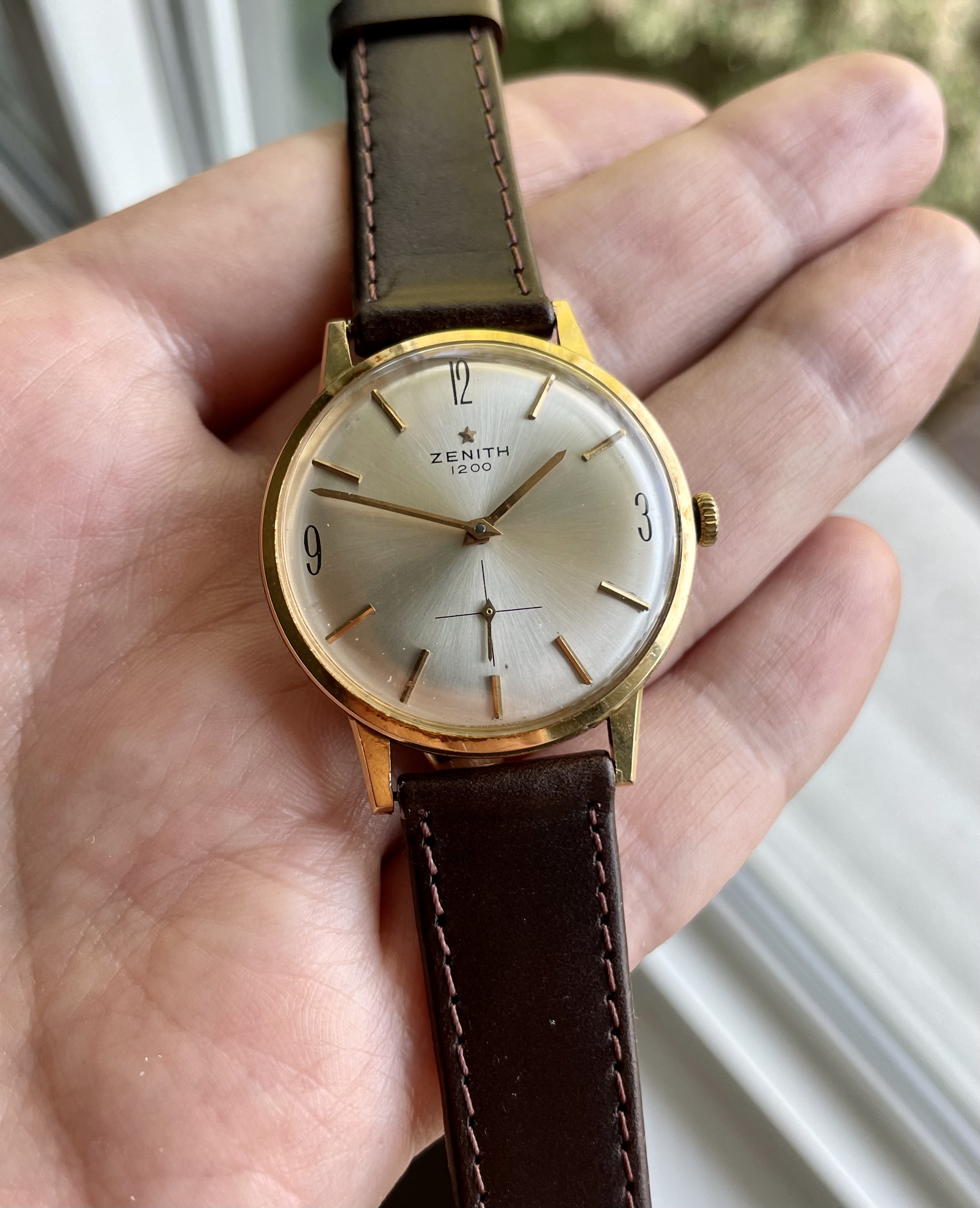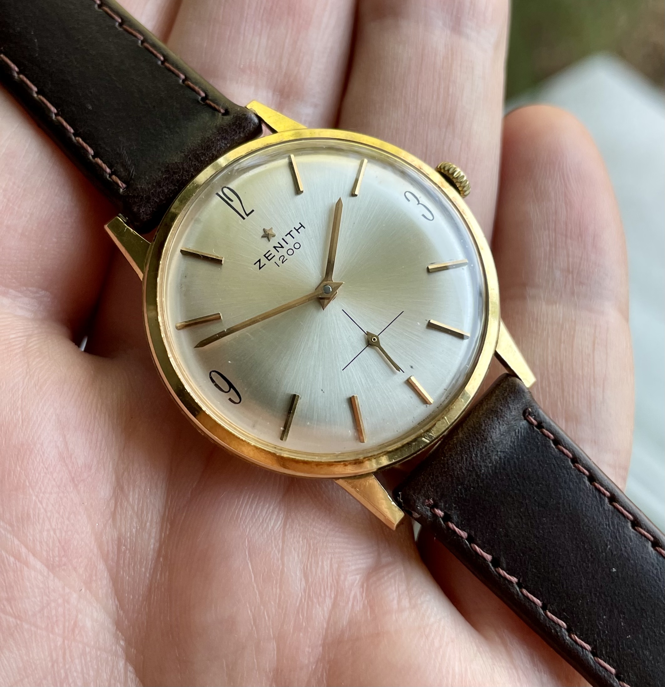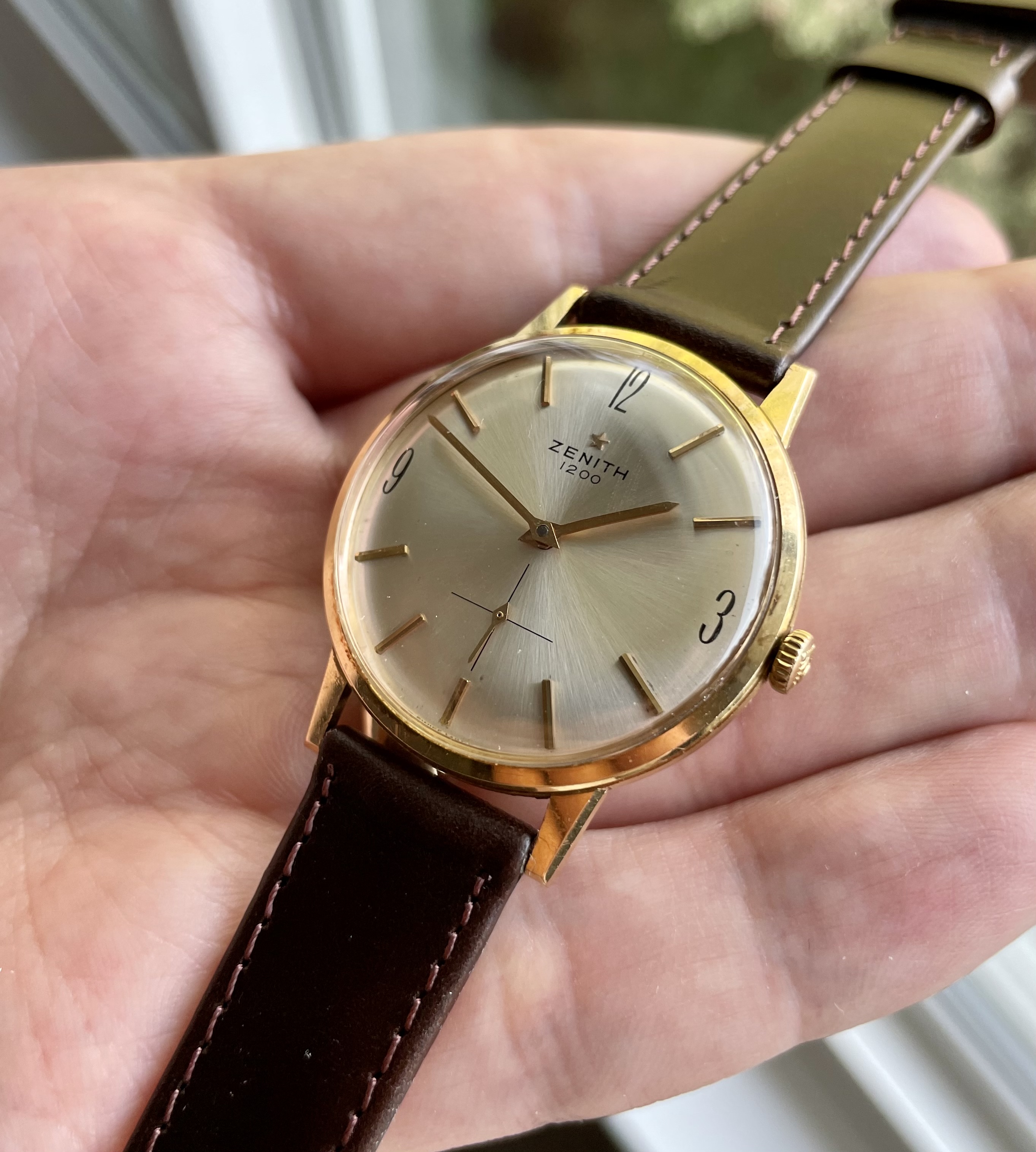 Up for sale is a really nice solid 18k gold Zenith that I assume was manufactured in the 1960s. It features a simple and clean design, with somewhat unique 3, 9 and 12 o’clock hour markers.