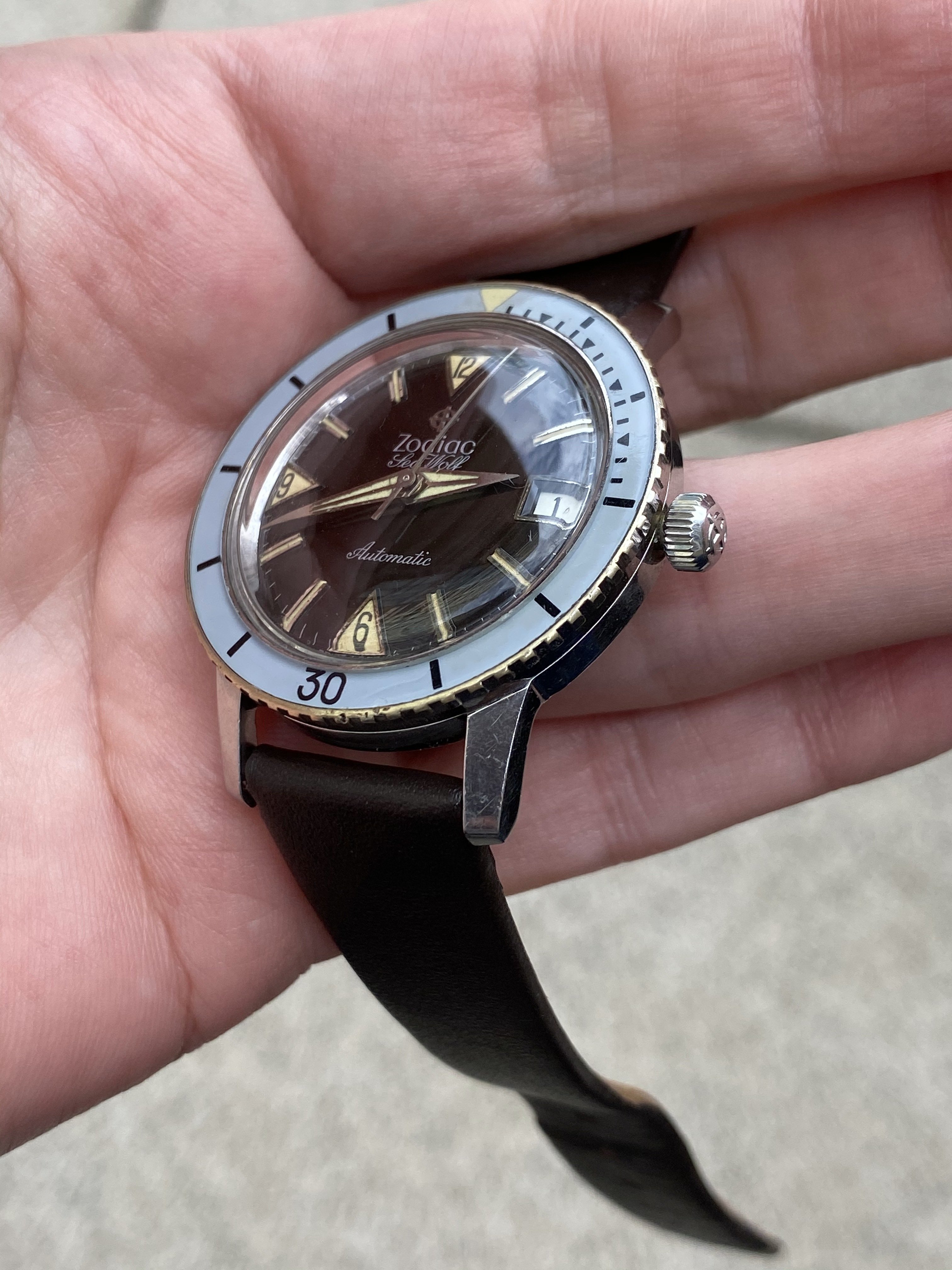 Movement: Original high-grade 21 jewel 72B movement was serviced in April 2020 by Yuriy Vakulenko (a Zodiac expert if there ever was one), and it is running very well.