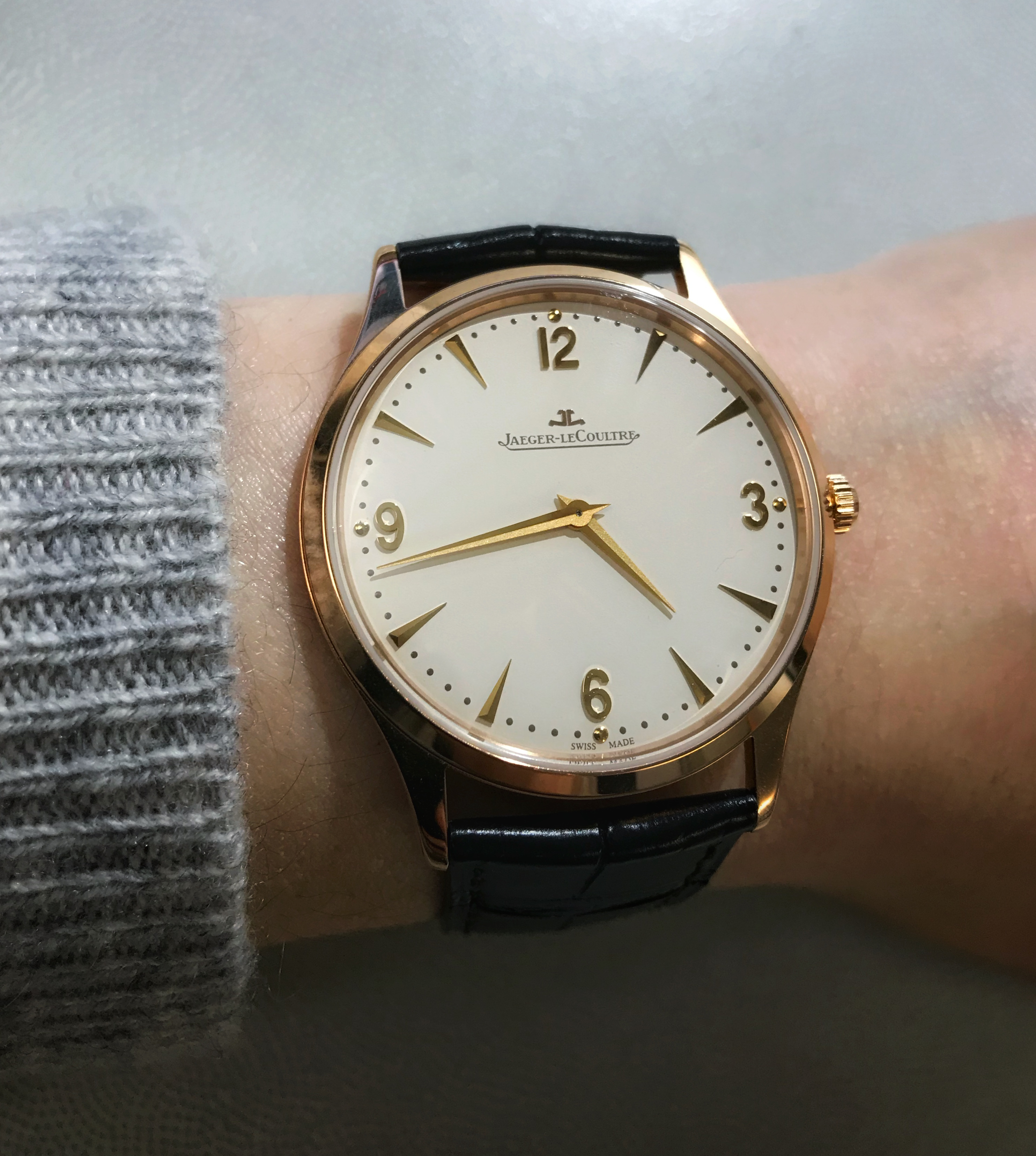 ·I've been curious about JLC for some years now, but have always felt they made watches that were too dressy for me (at least for my current phase in life). But every year or so, I do like to swing into a boutique to have a look at the watches that have always held my interest. Having given up on the Reverso (the only one that seems to fit me well is the Gyrotourbillon 4 🙁), I am now more focused on someday pulling the trigger on the Master Ultra Thin.