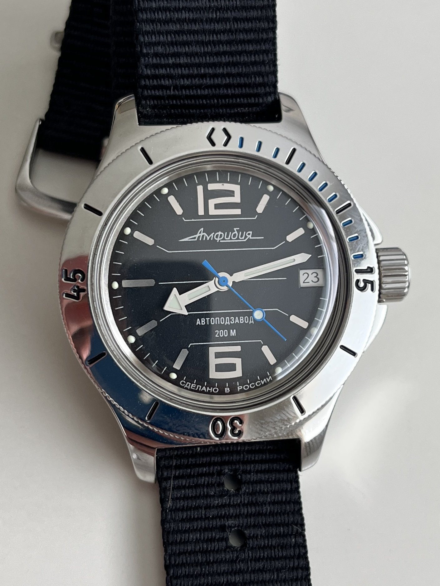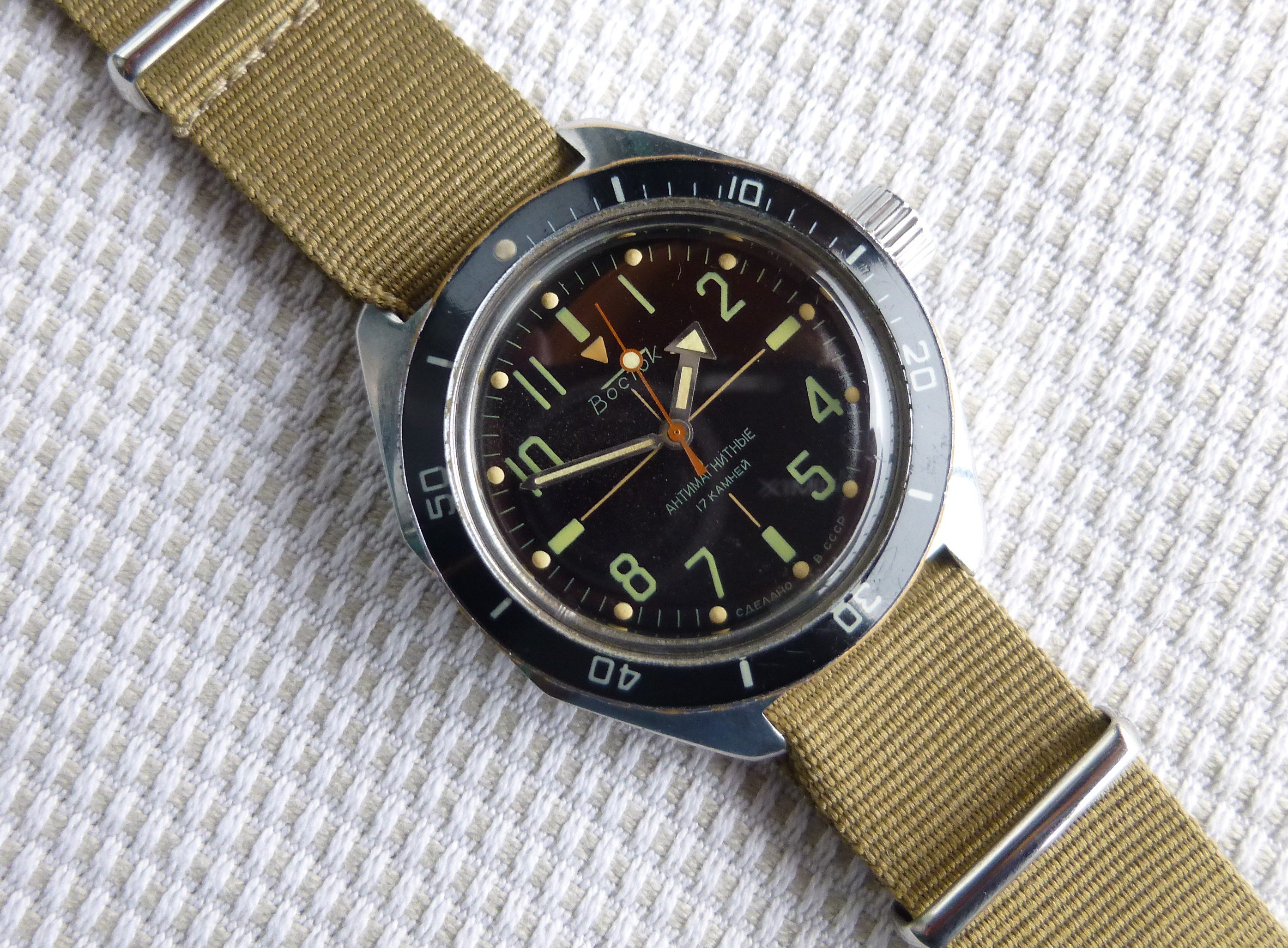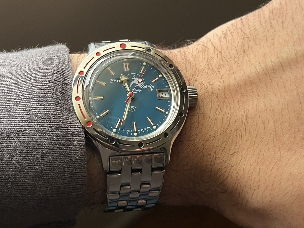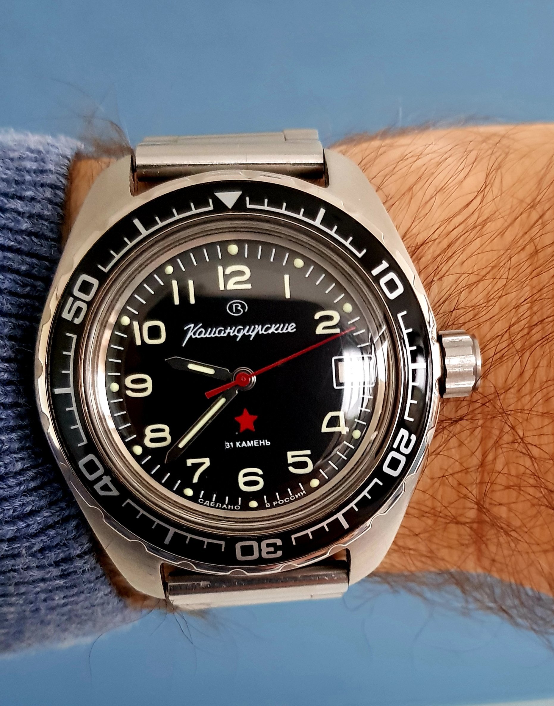My Komandirskie with the flags of the Soviet army, navy and air force. I like the case back.