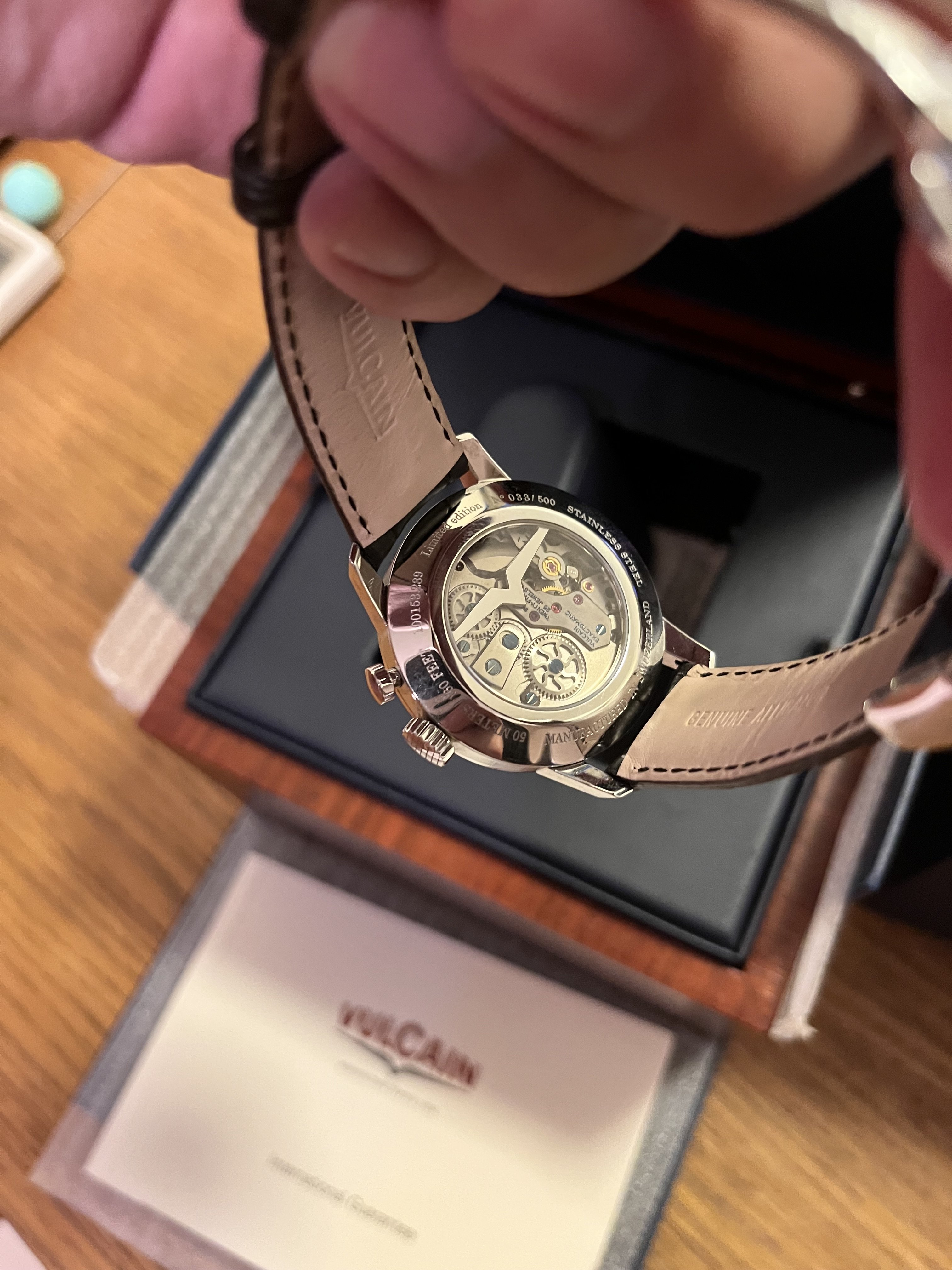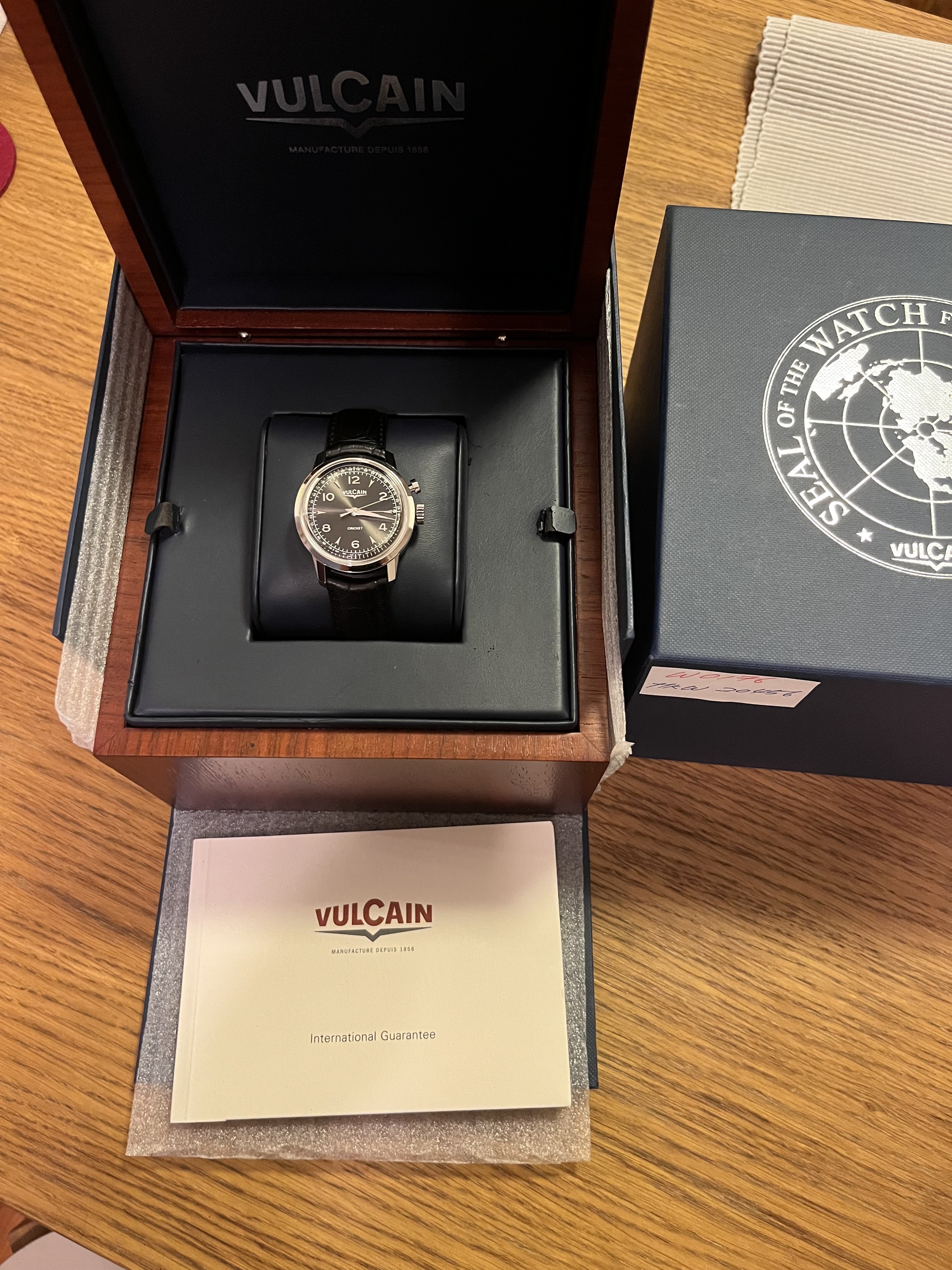 the watch comes with full box and paper. The paper isn’t dated, but given the fact that it’s an LE and Vulcain submitted it for 2011 GPHG (https://www.gphg.org/horlogerie/en/watches/heritage-presidentswatch), it’s safe to say that the watch was made in 2011.