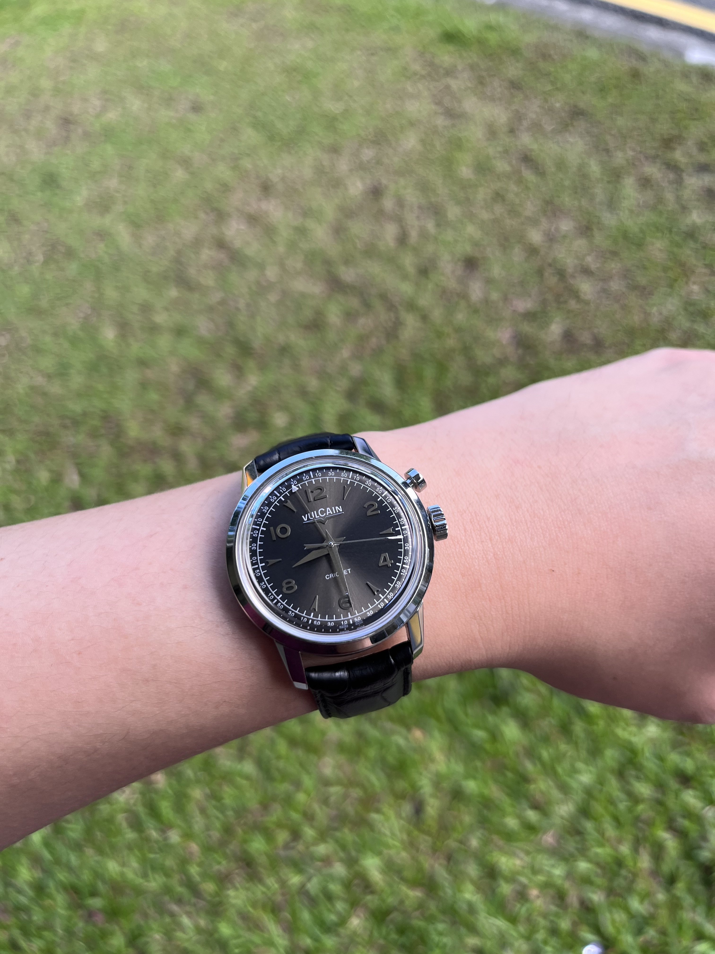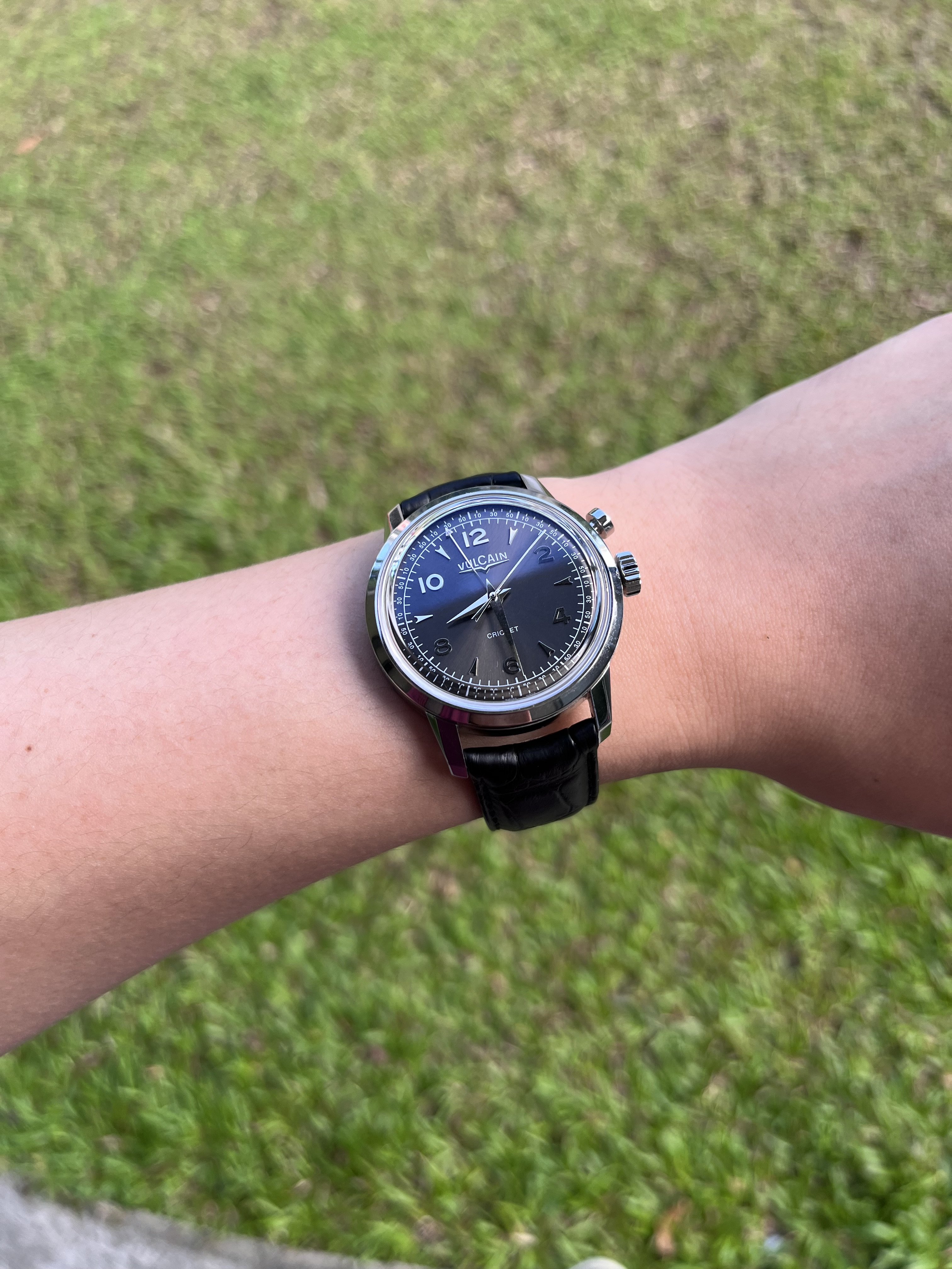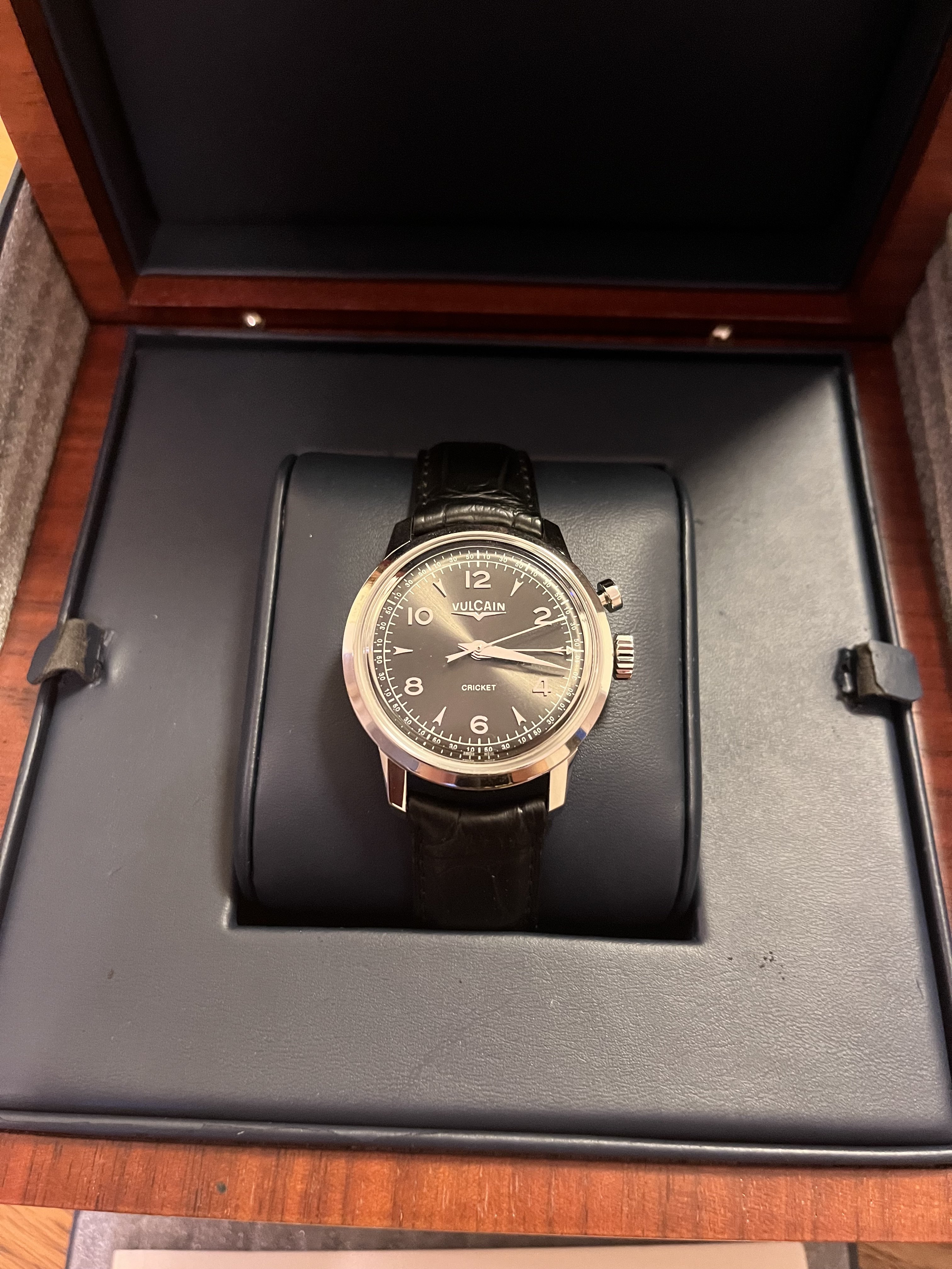 ·Clearing my not-so-wore watches, I have a rather modern Vulcain Cricket for sale. I admit that I went through a phase for alarm watches, and this Vulcain is one of the finest of its line. Reference 100153.289LF, this Vulcain is 39mm in diameter, 48 lug to lug, and sports the V-10 movement - this was a critical element for me, as it is the closest to the original Vulcain 120 movement - unlike most of its relatives at that time which were sized at 42mm with V-20 movement that has a massive rotor blocking your view to the alarm complication and the super cool winding gear. I like it more than the original vintage cricket as I can see the movement through the display back.