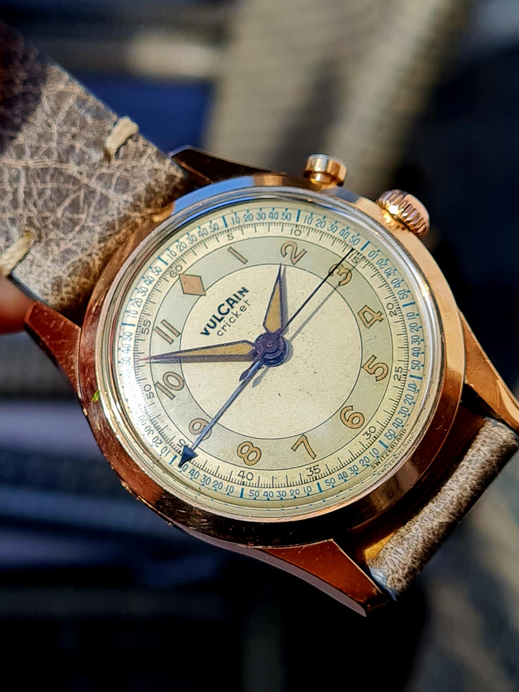 The watch is the template for the new classic line of Vulcain Cricket with the same dial design.