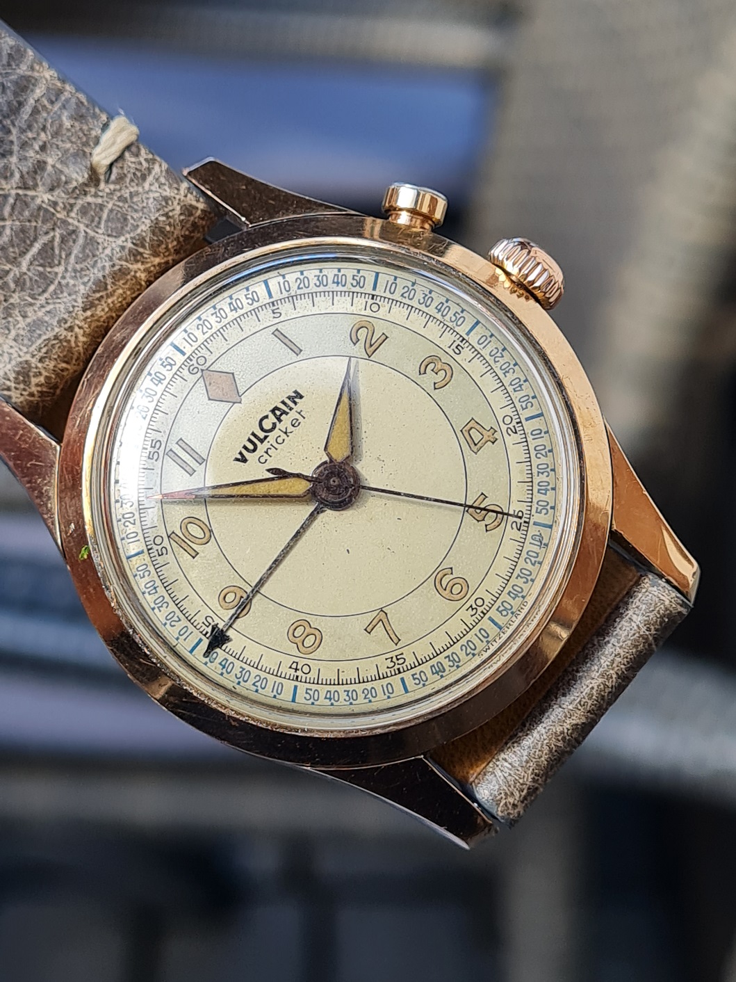This Vulcain Crickets are alarm watches and the famous movement (Vulkcain 120) has two (!) barrels, one for the watch and one for the alarm function.