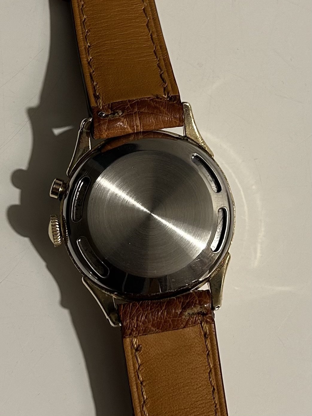 I *think* it’s from the early 50s based on the dial and logo style but would love to learn more. Pictures below, unfortunately I don’t have any pictures of the movement or inside of caseback.
