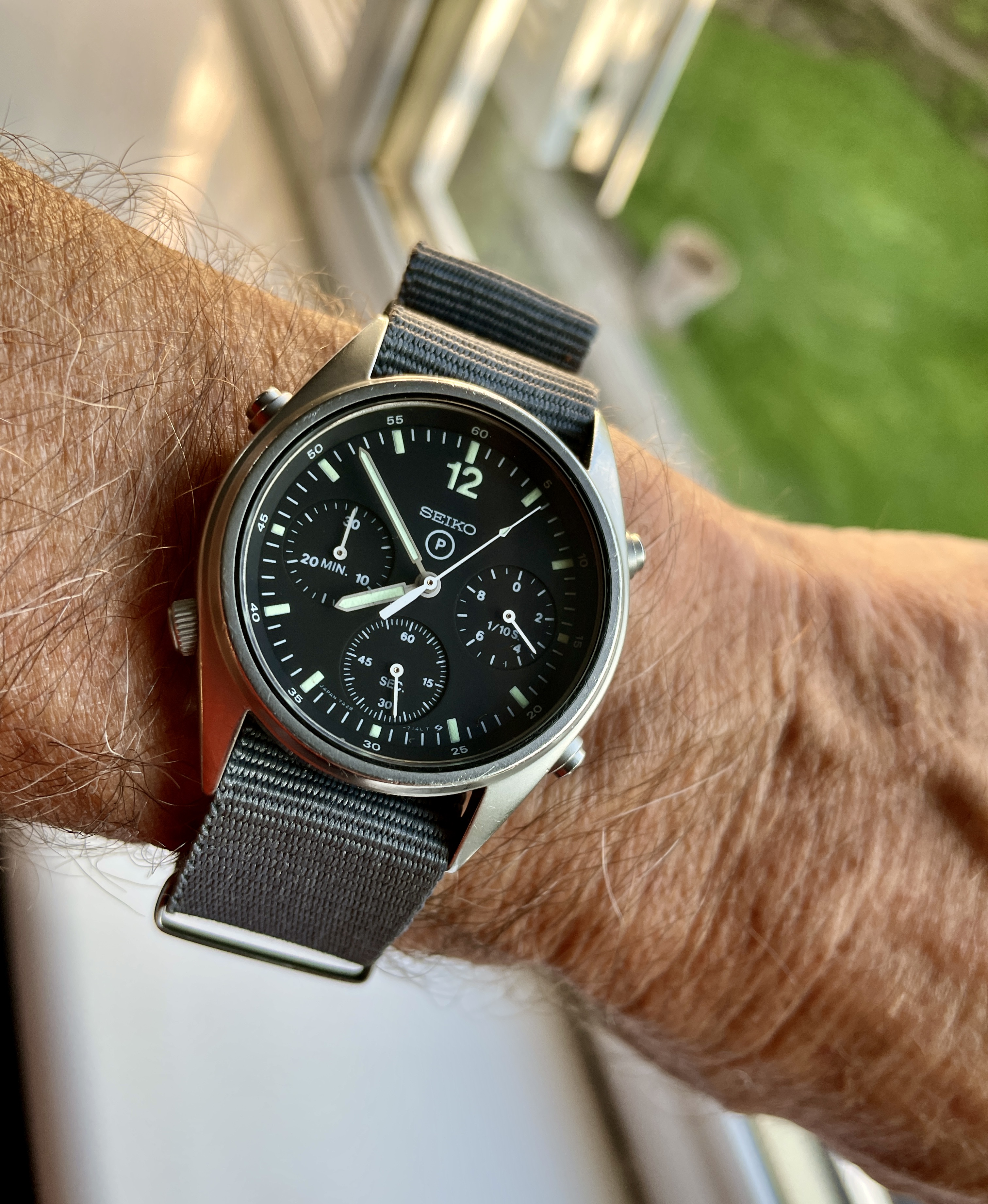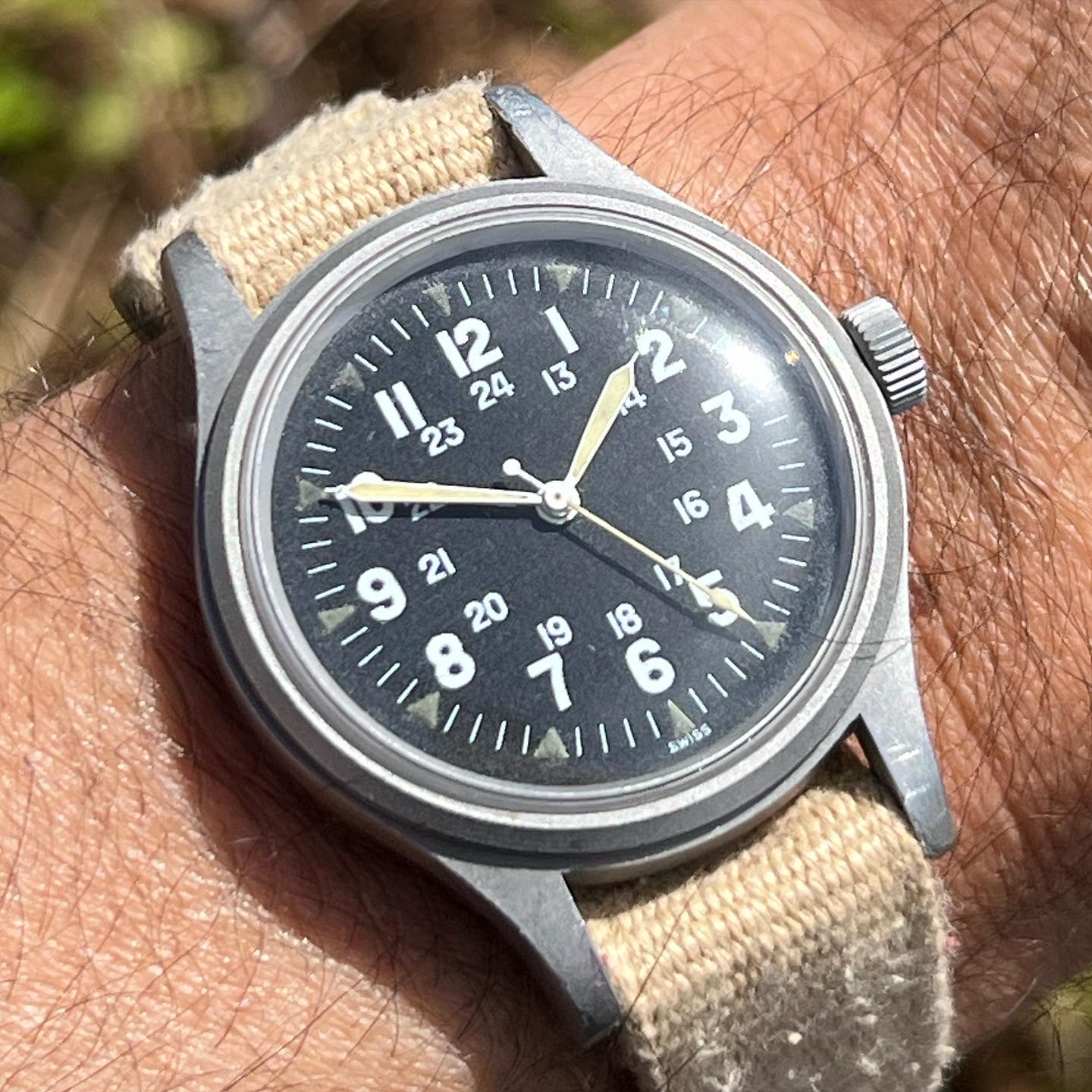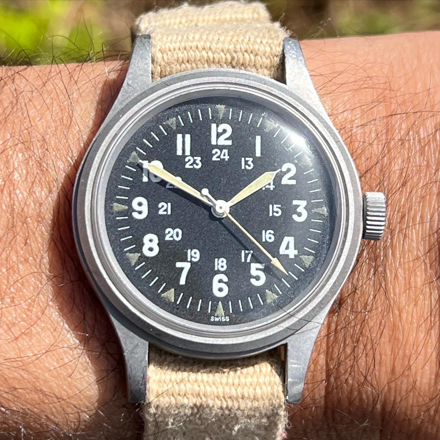 1970, Hamilton, FAPD 5101 or Type 1 Navigator issued to USA for only one month. Love the 36mm size on this one. The Caliber 684, like the Caliber 89 used in the IWC Mark XI, is shielded by an anti-magnetic dust cover.