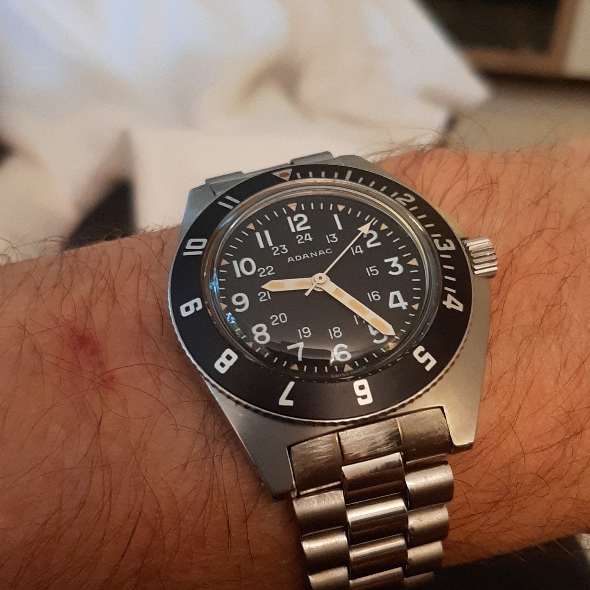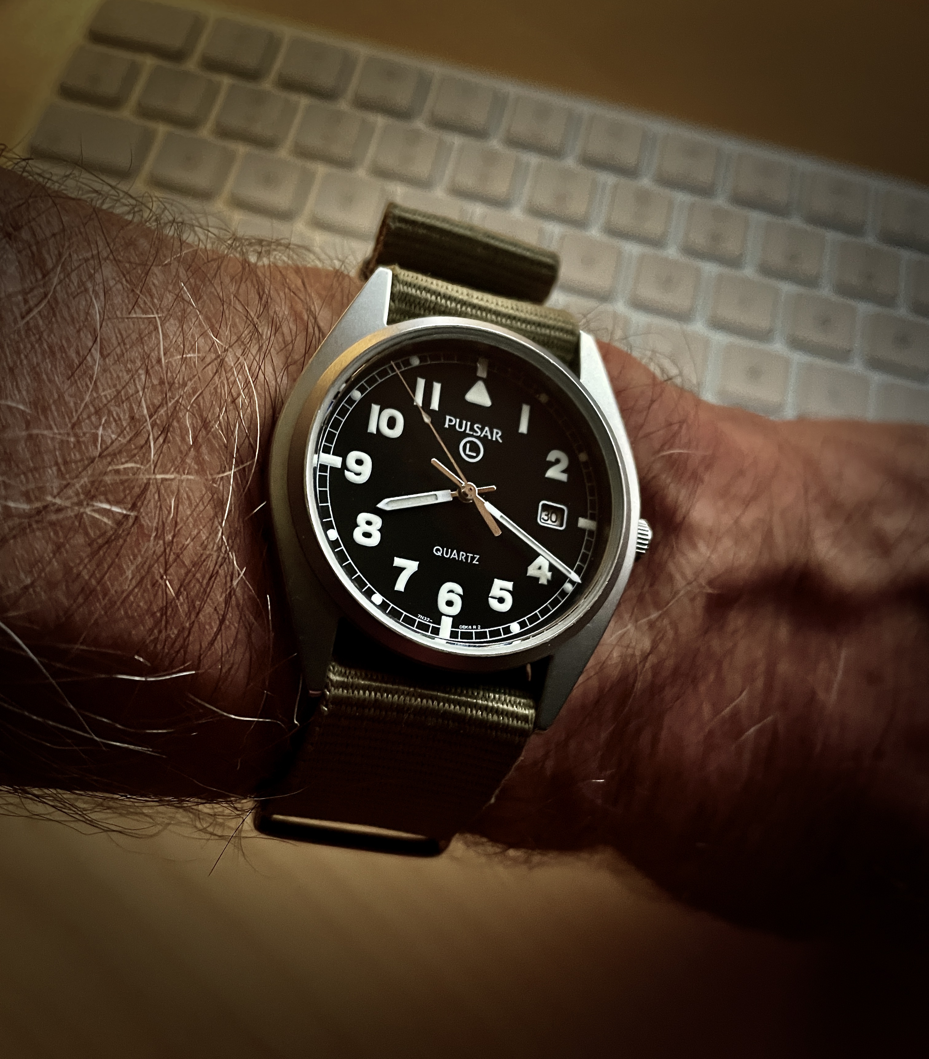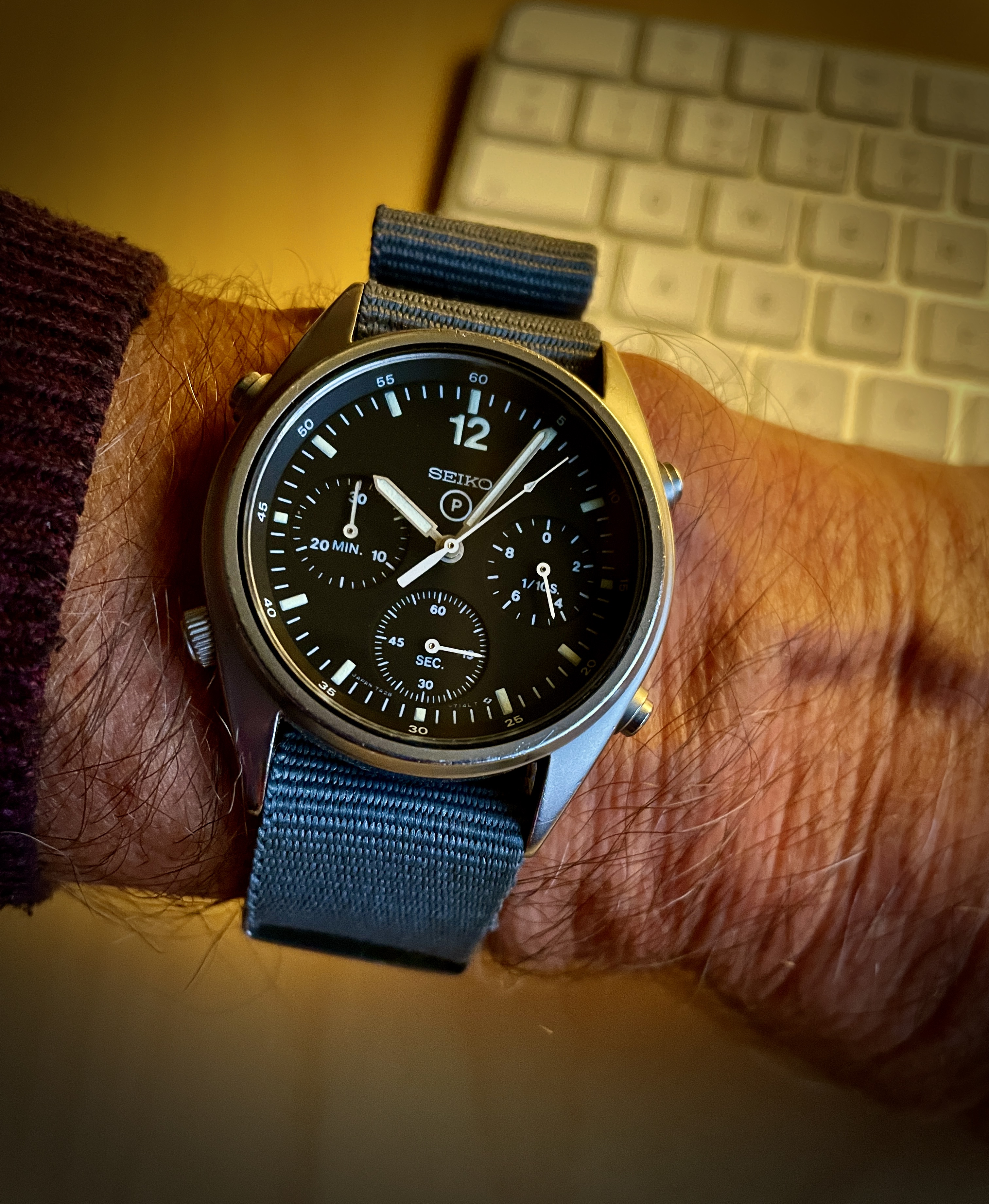 1970, Hamilton, FAPD 5101 or Type 1 Navigator issued to USA for only one month. Love the 36mm size on this one. The Caliber 684, like the Caliber 89 used in the IWC Mark XI, is shielded by an anti-magnetic dust cover.