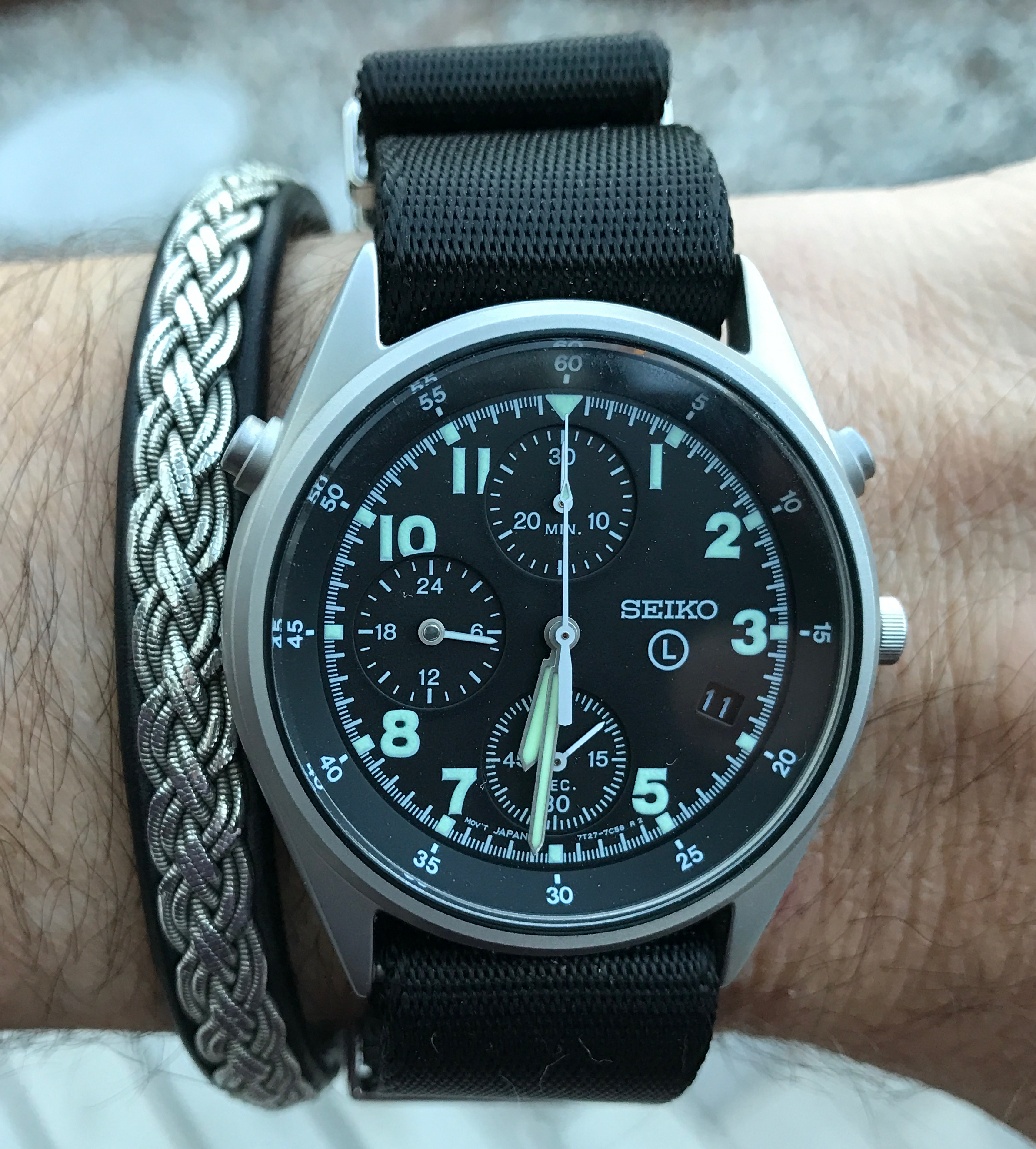 Got a "Royal Marines Military Falklands Issue Strap - Green" from CWC last week, I use it with my "Swedish Airforce Seiko 7t27-7a20 (a6)" which has been on the wrist today 😀