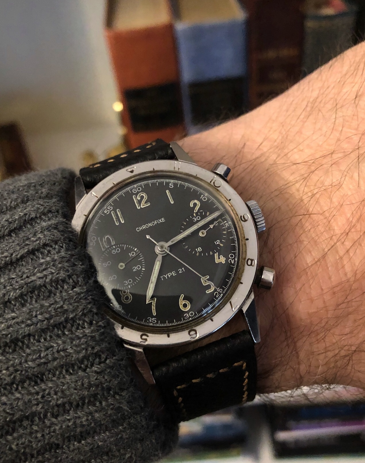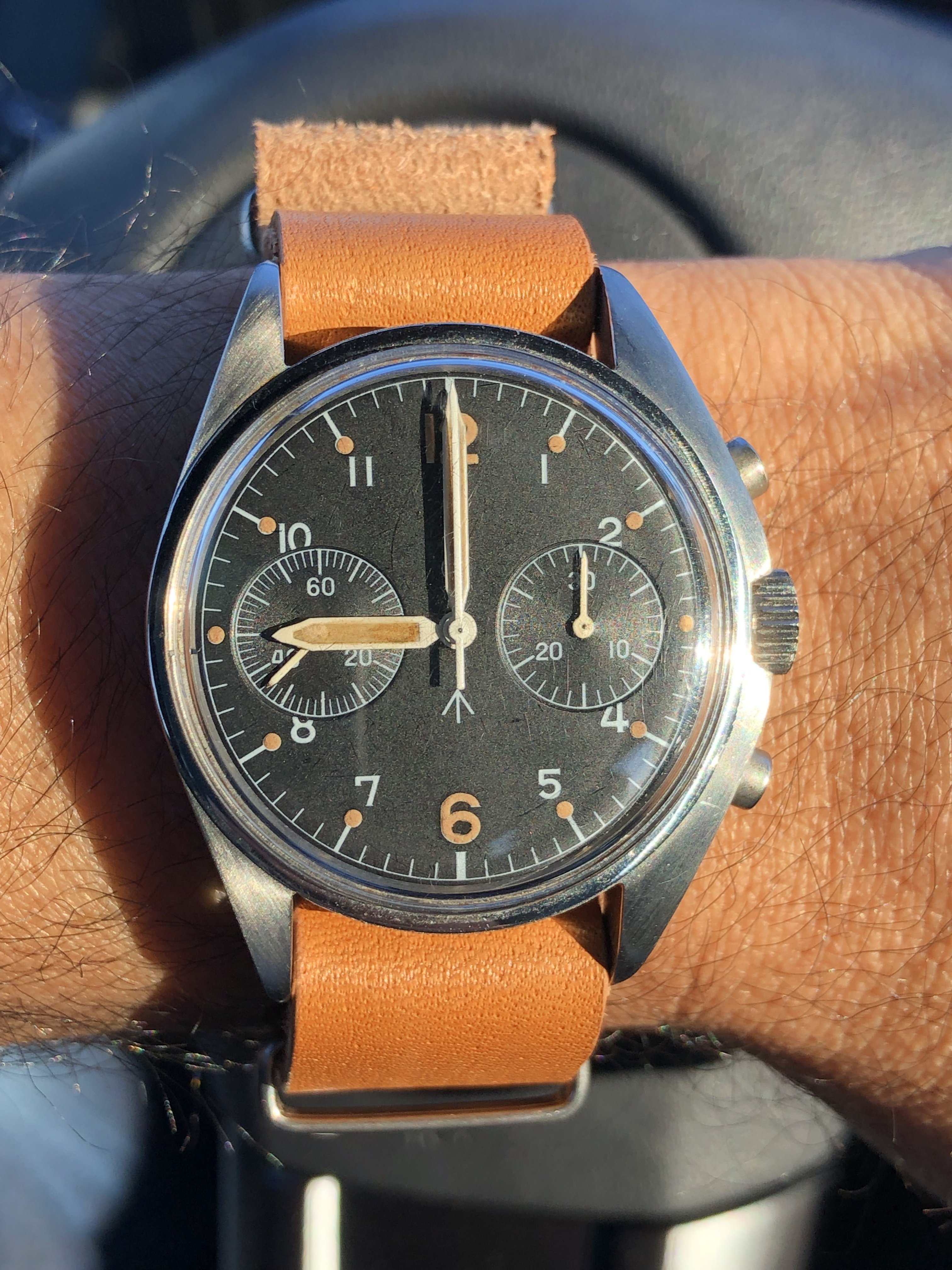 Posts 8,742 Likes 69,438 Darlinboy ·Jan 24, 2019·Pratts! Will I B******S!!! Chronofixe Type 21, French Army Helicopter Pilot flyback chronograph, issued circa 1969...