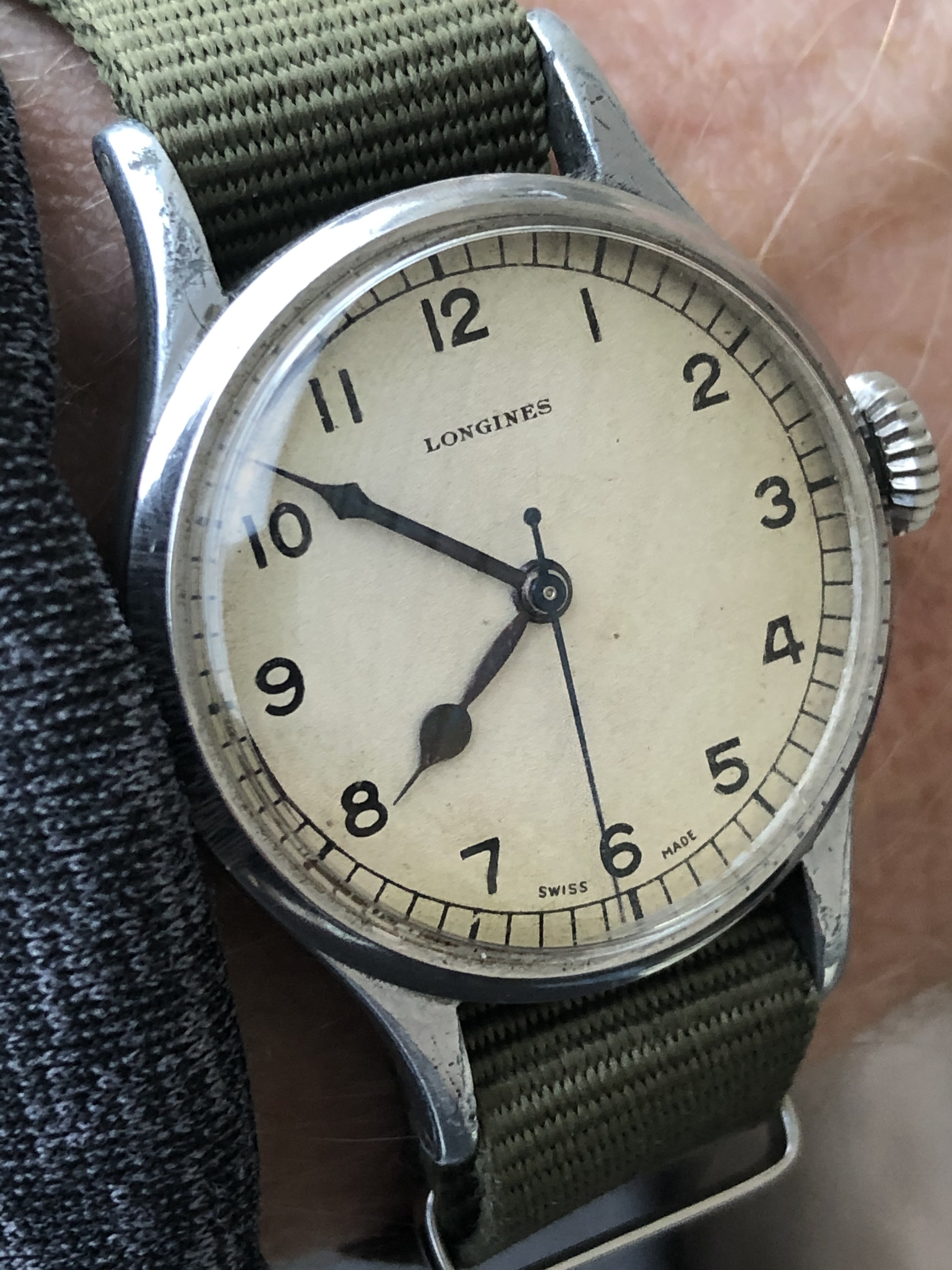 Omega 6b/542 58 issue bought in the 1980's by the previous owner at an RNZAF military surplus auction. The dial and hands were possibly changed by the RNZAF. Dial is the thick anti magnetic type.
