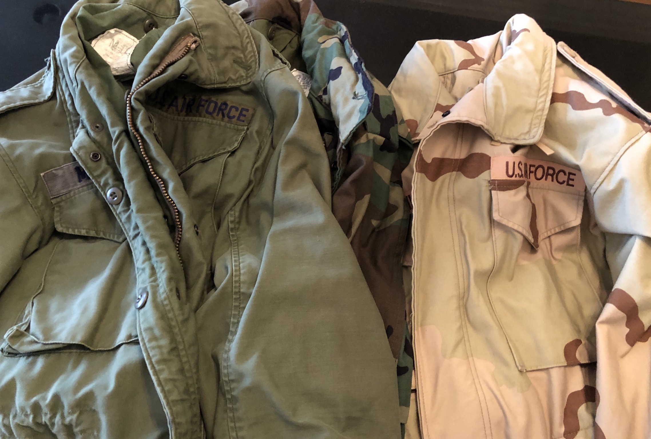 Dug out a couple of old jackets today in lieu of mixing with other humans. Uncle Sam always had something for us to wear, from the jungles of SE Asia to the woodlands of Europe to the deserts of the Middle East. The watch shown with the flight jacket was never worn with that jacket. At that time, I was wearing a very nondescript Bulova Accutron.