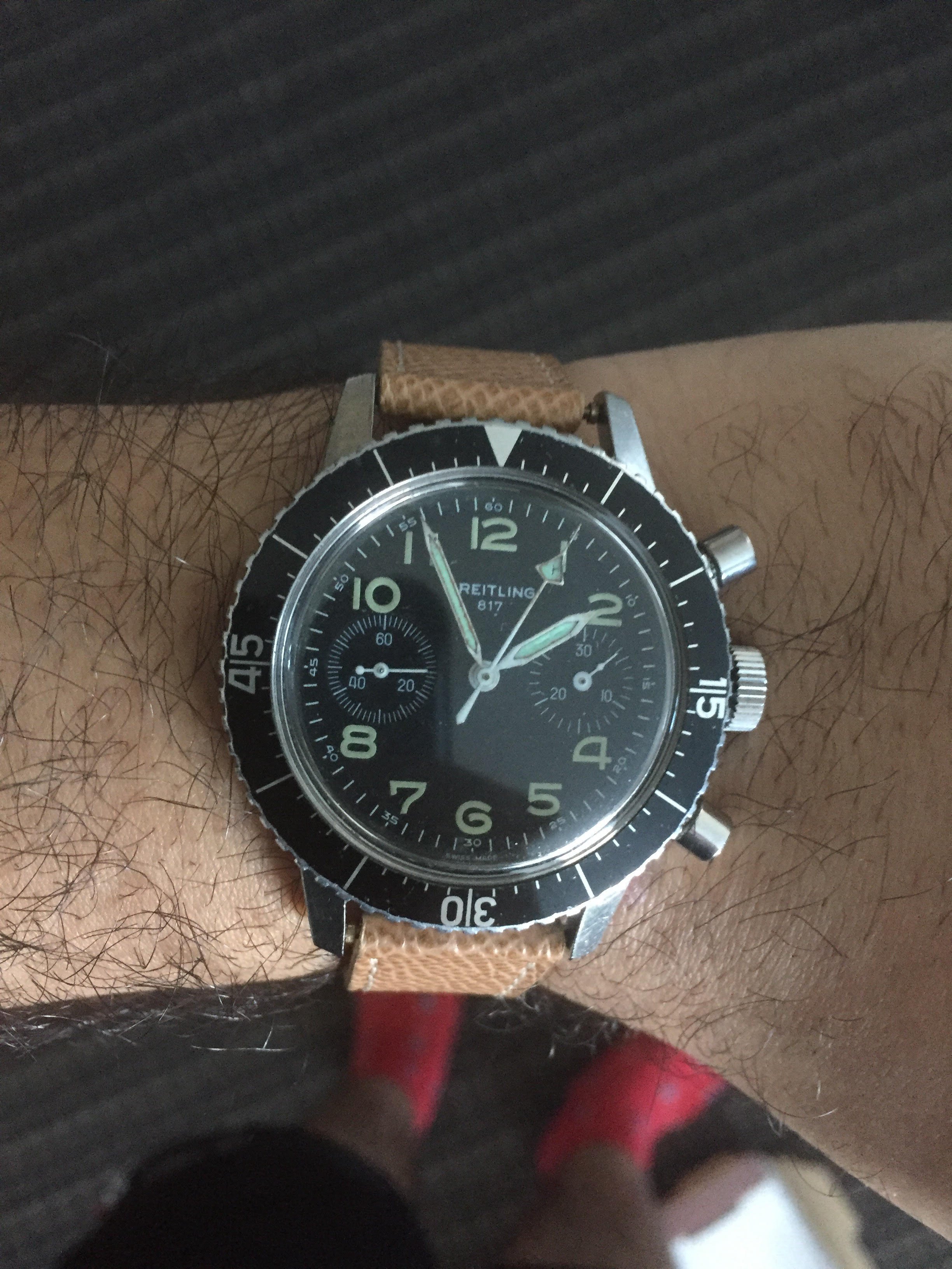The tale among vintage Breitling folks is that the pilots didnt much like the watch- this was 1975, and quartz/automatic watches were all the rage- and a mechanical chrono was so passe. In addition, it came on a bracelet made by the Japanese company Speidel, and the bracelet was supposedly horribly uncomfortable. As a result, few of the watches survive today- until very recently<30 were known to exist (the expert on these watches is a gentleman who posts in may forums as Dracha- he advised me greatly about this watch) What makes this tale super interesting is that the Italian Government recently found and sold 40 of these examples at an auction- starting bid was 28,000 Euros for all, but it probably went for much much much higher, given that recent examples without box and papers have sold for $14k+ at auction.