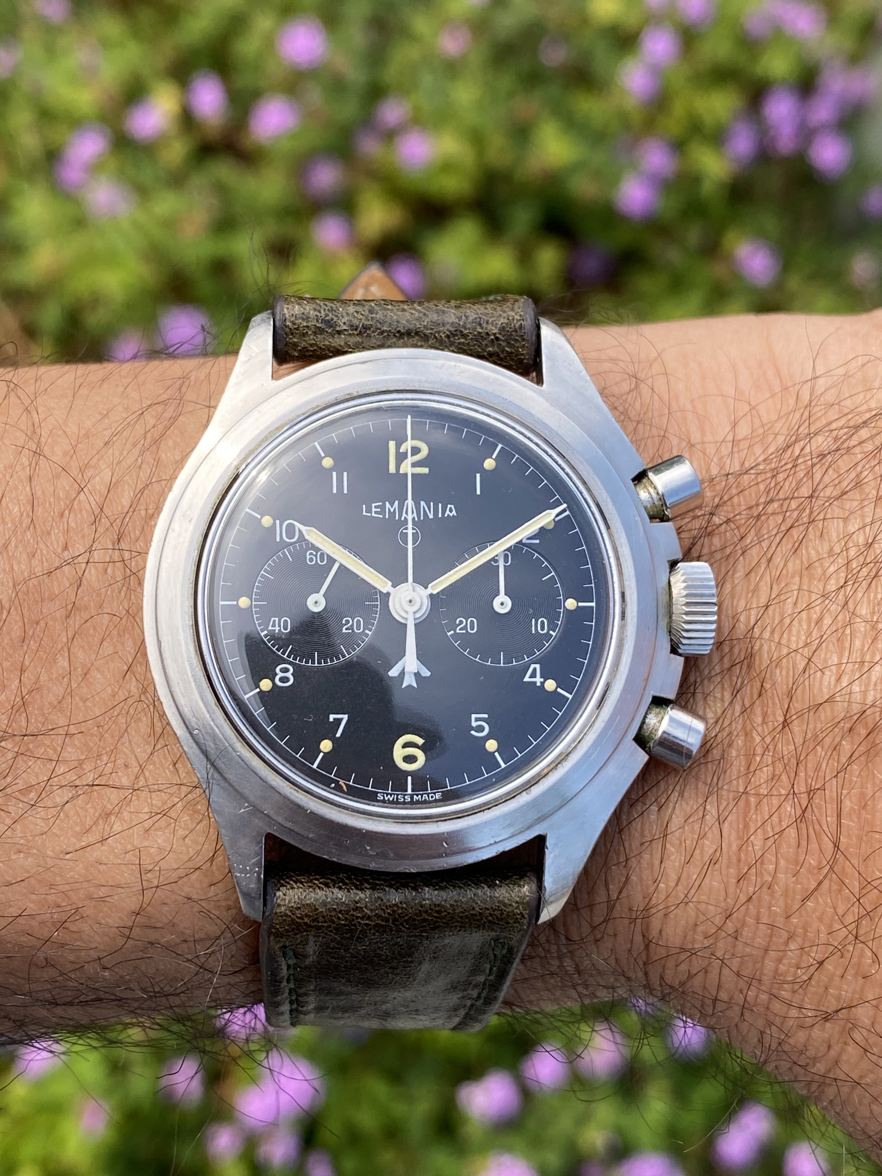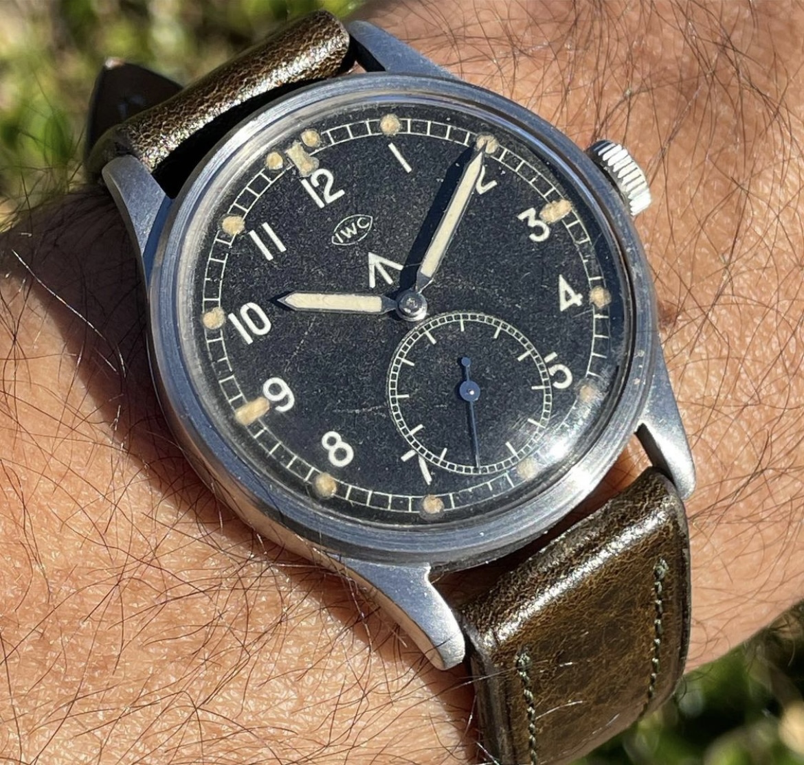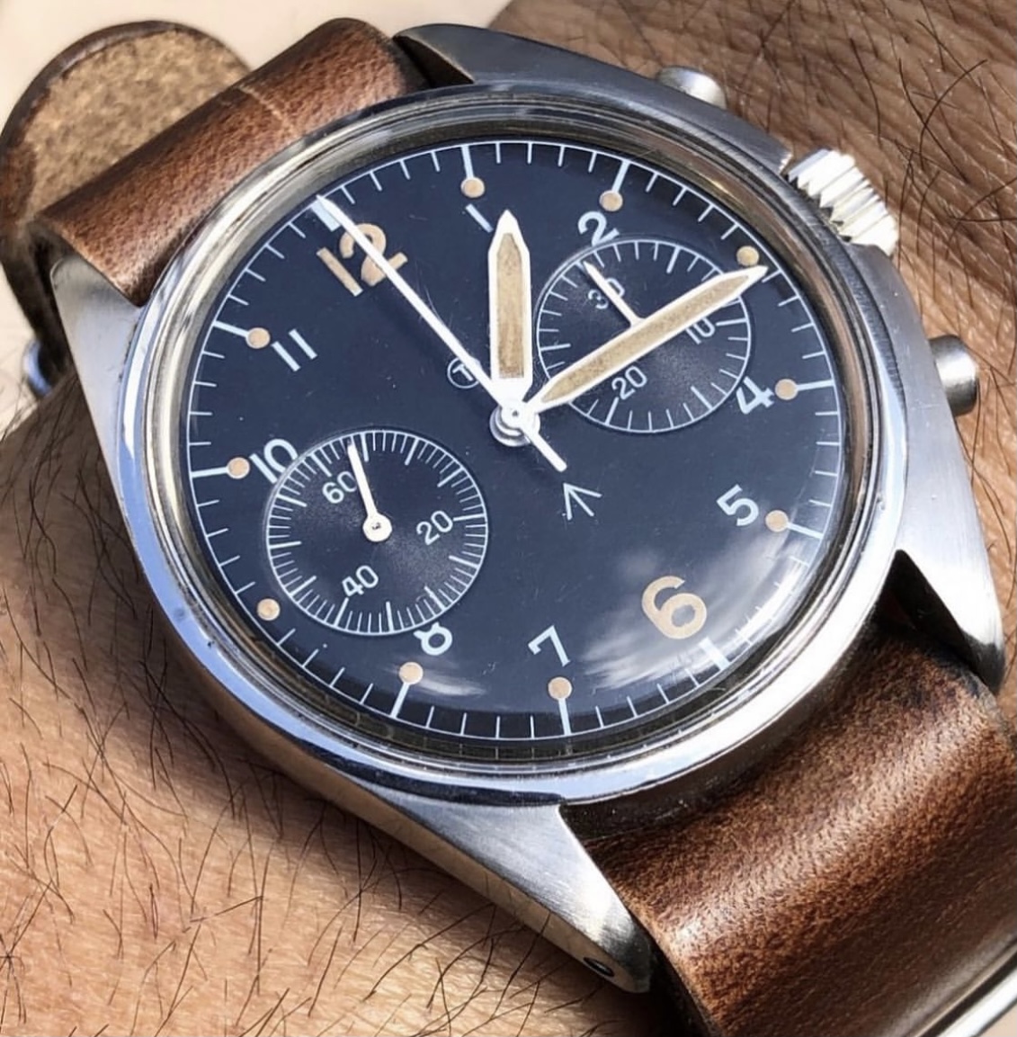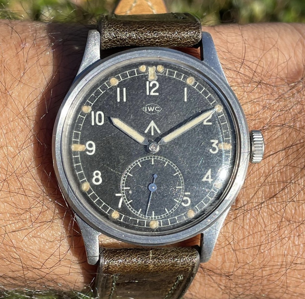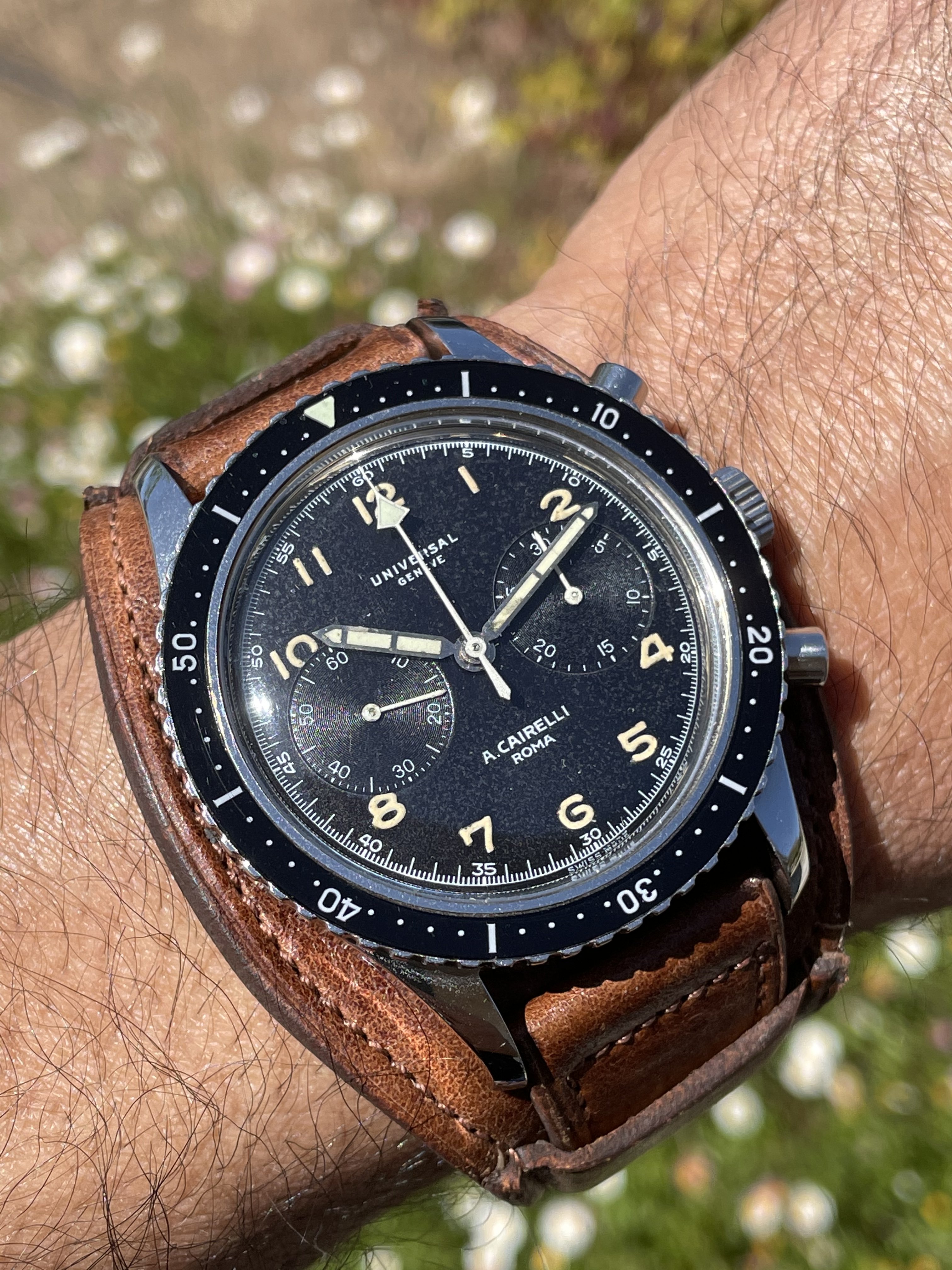 Put on my Bulova A11 this morning but took this picture before putting it on. My Grandfathers type A2 flight jacket with the watch. Both date from approximately 1943 and he was likely issued a similar watch when issued the jacket. Jacket was worn while serving with the 13th US Army Air Force in the South Pacific.