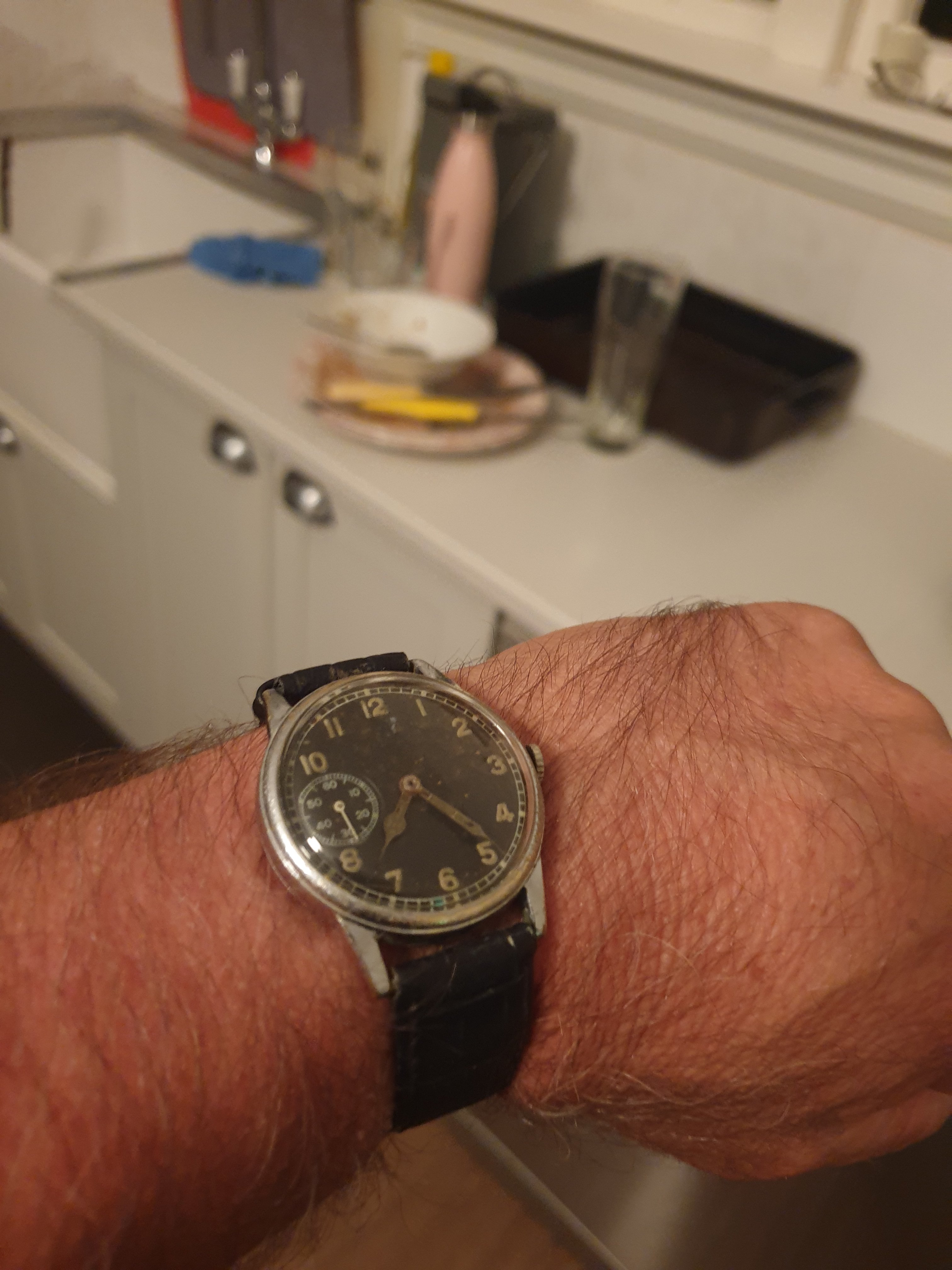 great looking smiths watch. that arrow signifies that it is property of england if i am not mistaken