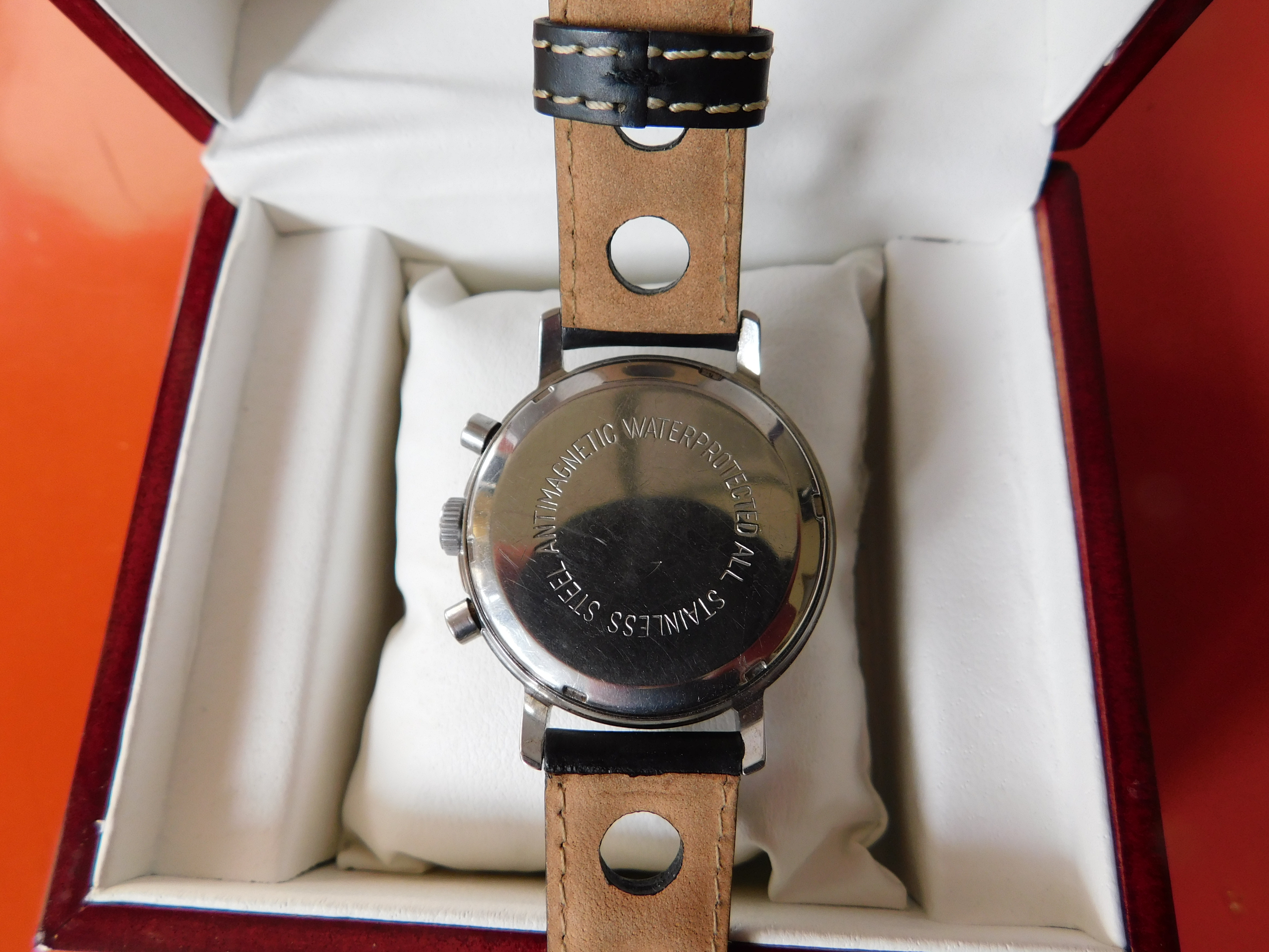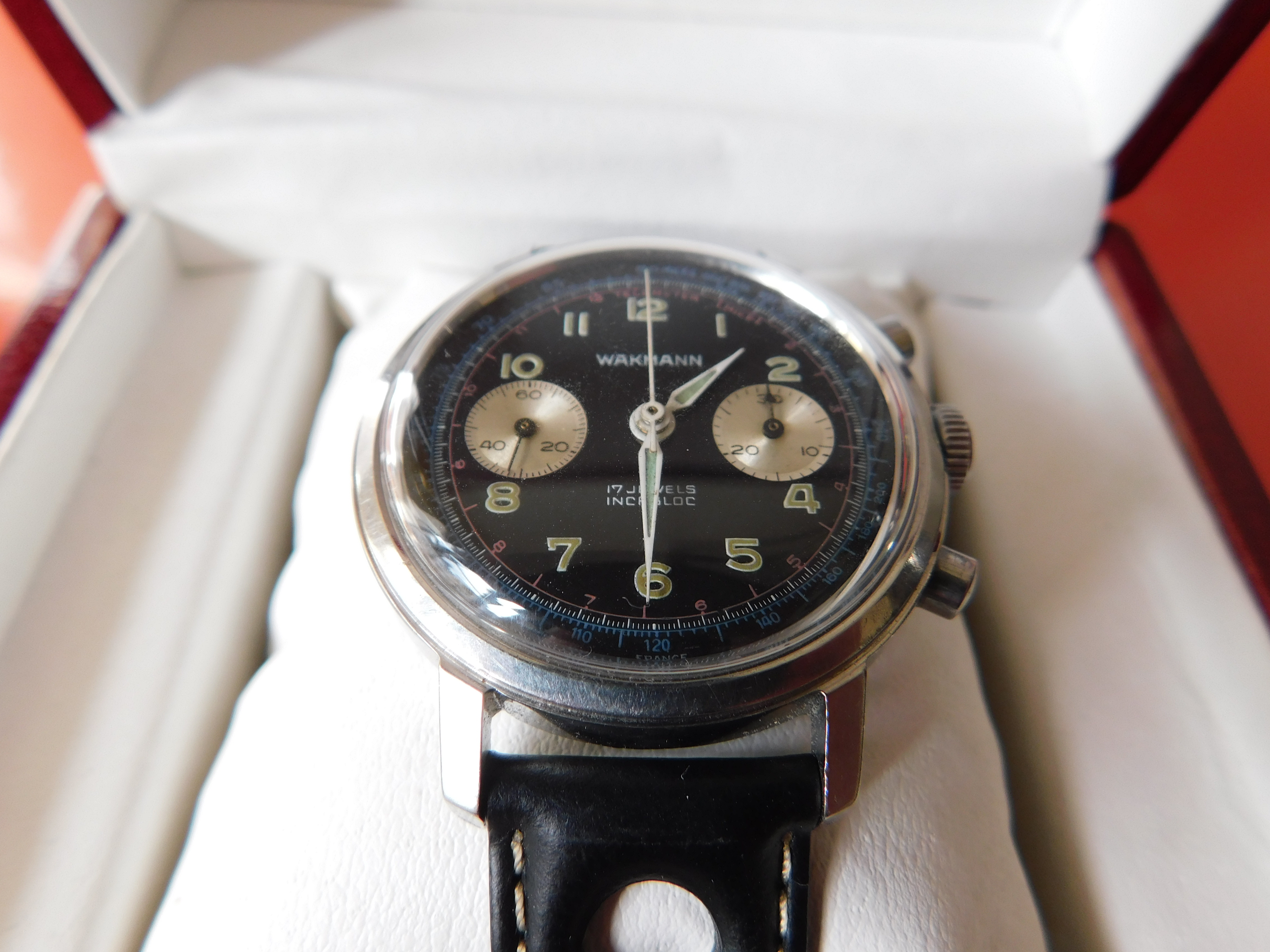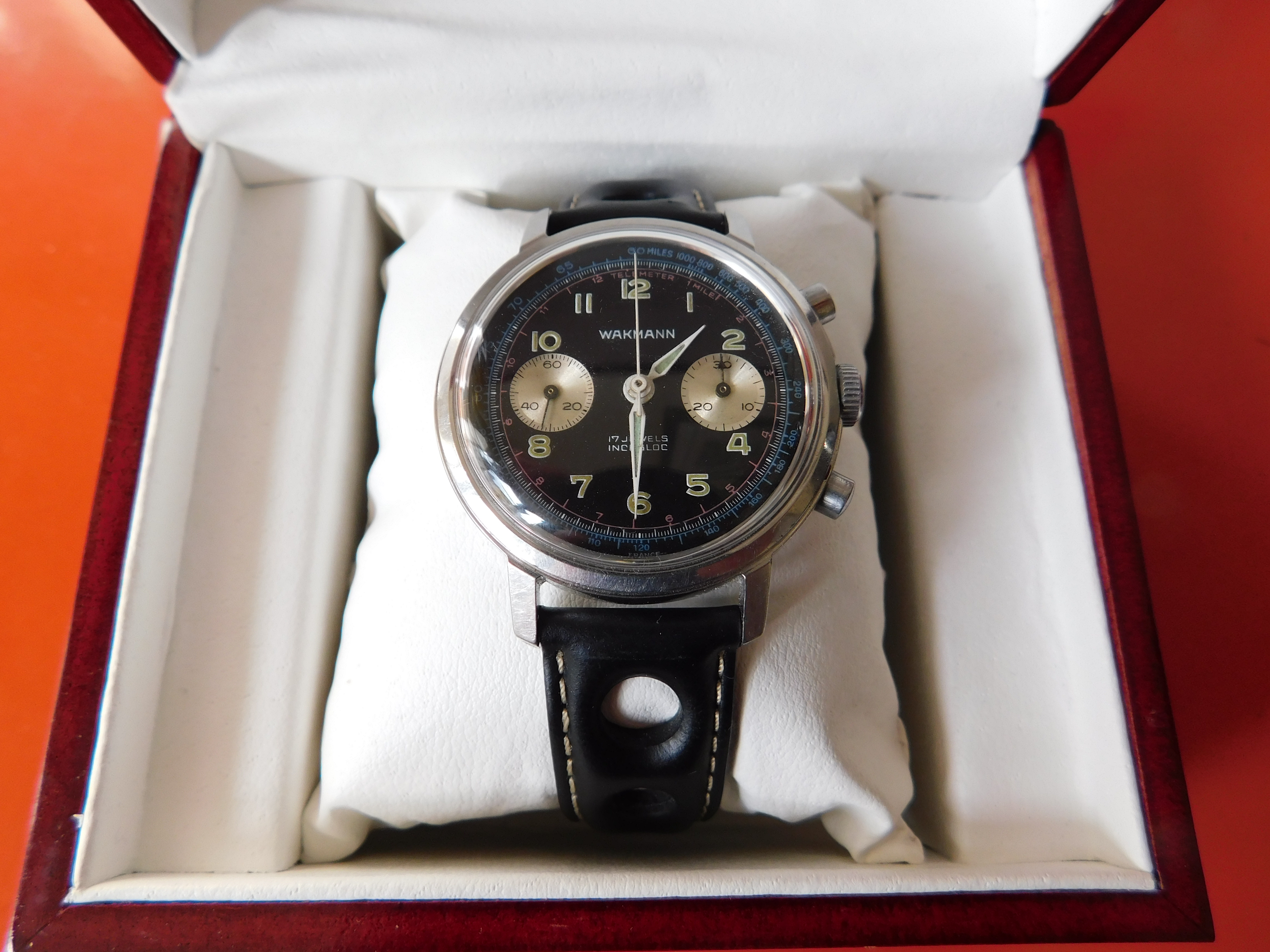 ·On offer is a vintage Wakmann chronograph, c. 1965, reverse panda dial, all stainless steel.