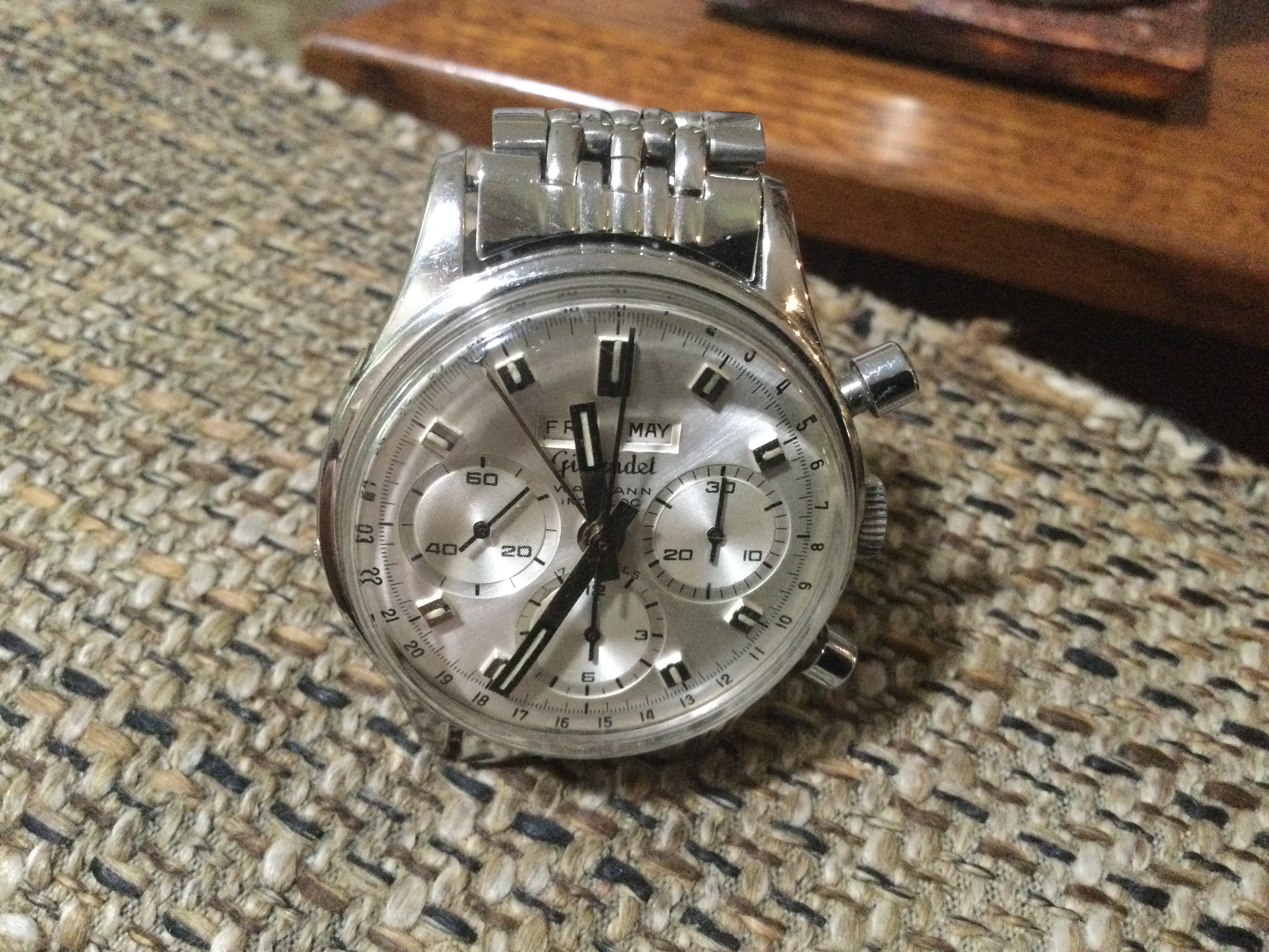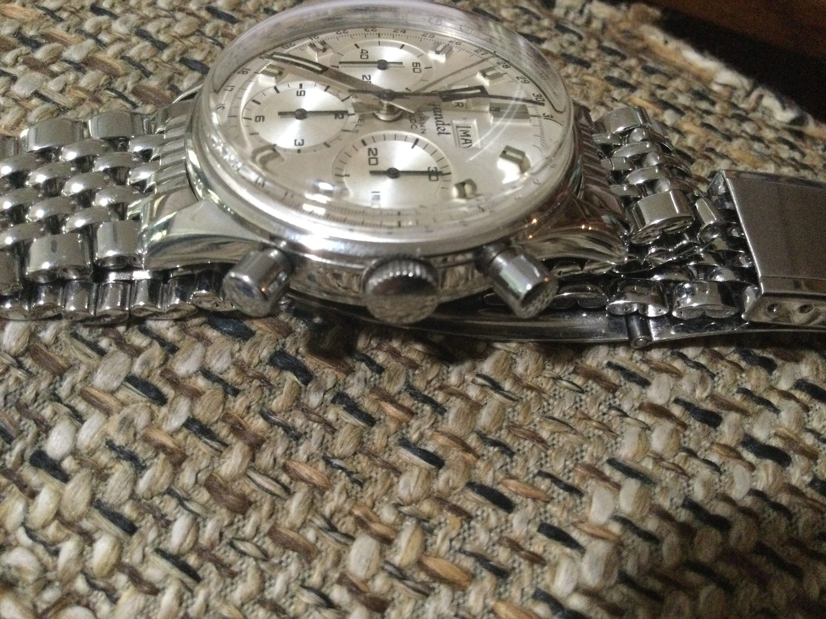 I am very naive in the space of vintage watches and was hoping to get some advice on a potential purchase of a Wakmann Triple Date chronograph which appears absolutely stunning. I have tried to compare the images of this watch with others on the internet and cannot seem to find a watch with the same dial and hands to compare it too, which is concerning. Would anyone be able to advise if the dial and other aspects of the watch appear genuine and original?