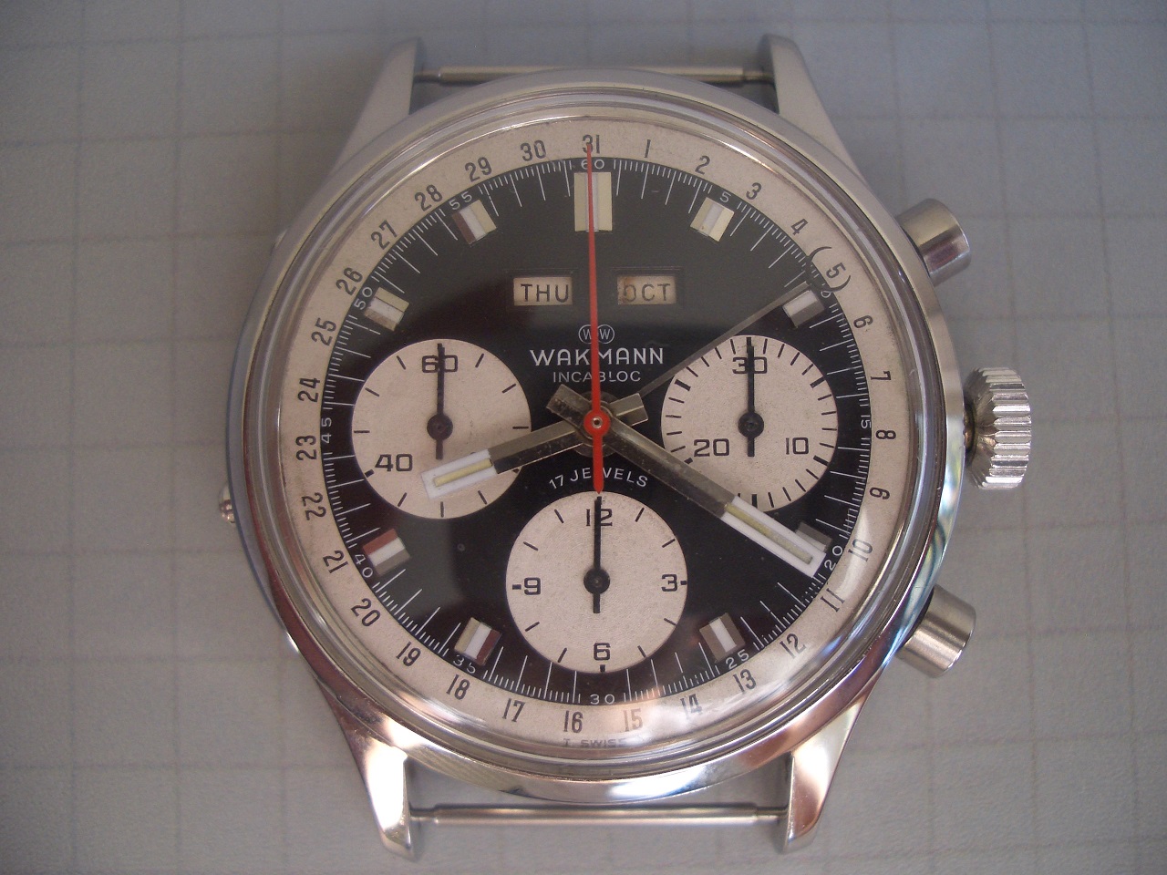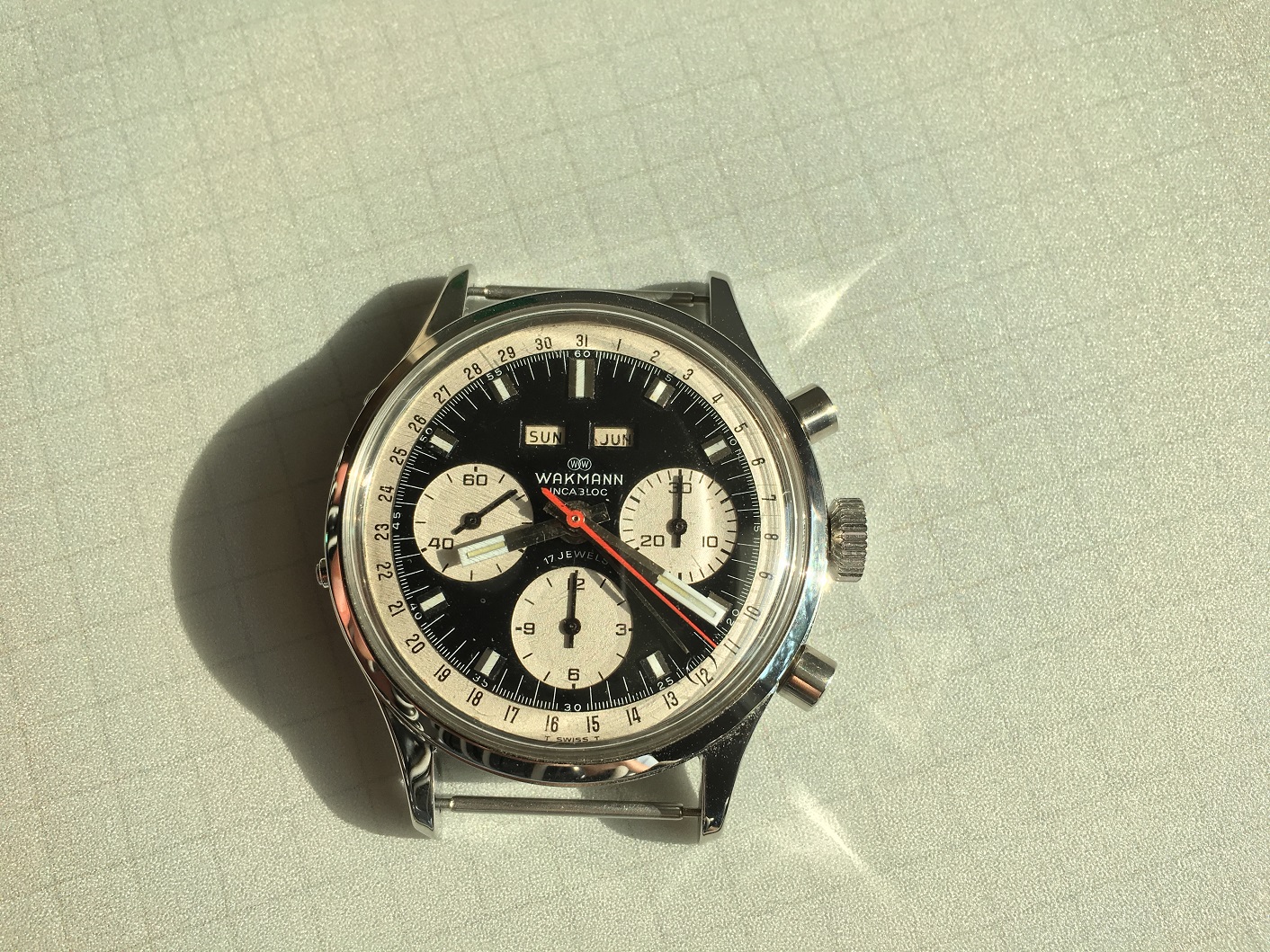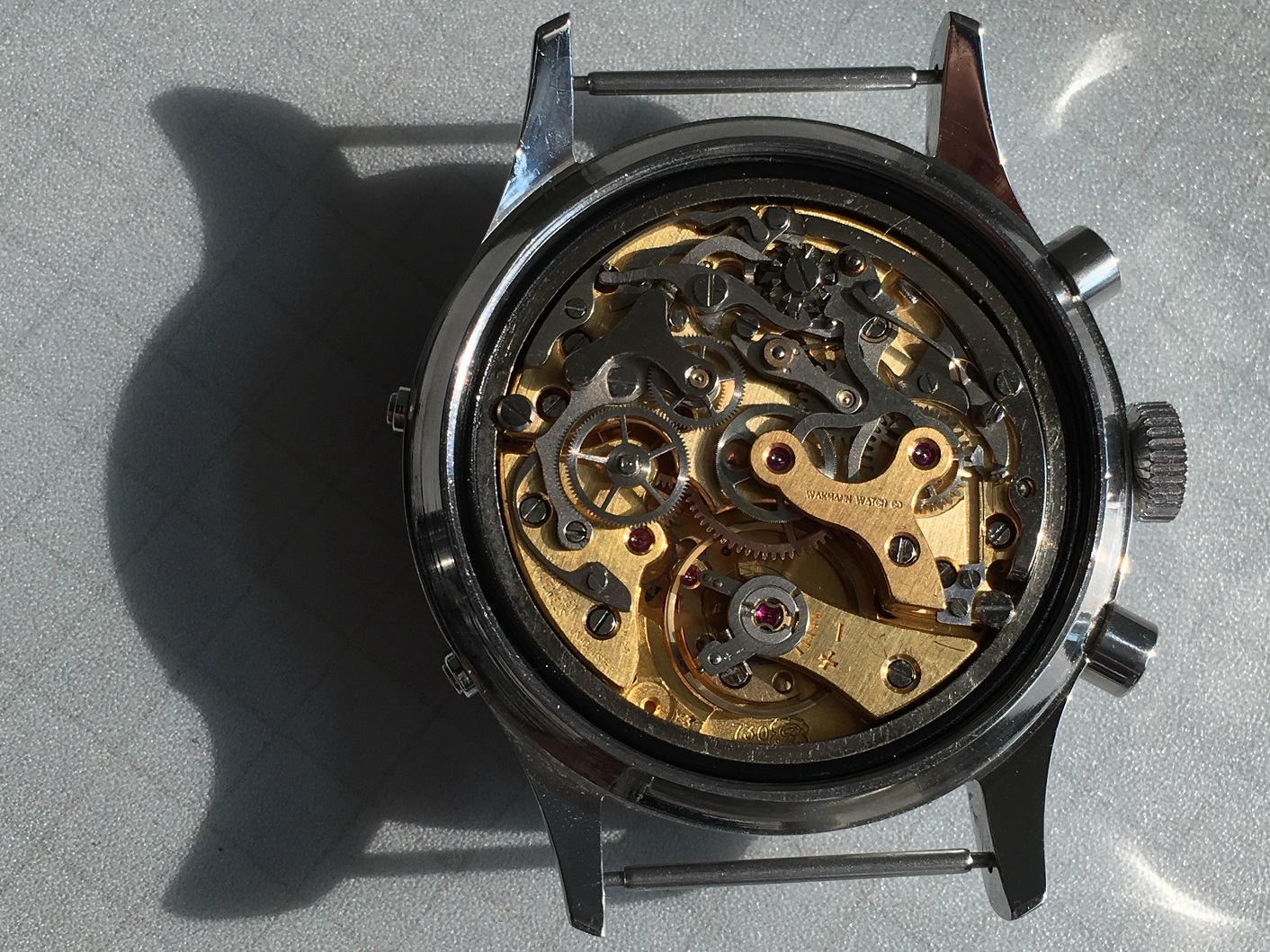 Movement: Super clean Valjoux 730 (later iteration of the Valjoux 72c) all functions working properly, serviced last December 2015
