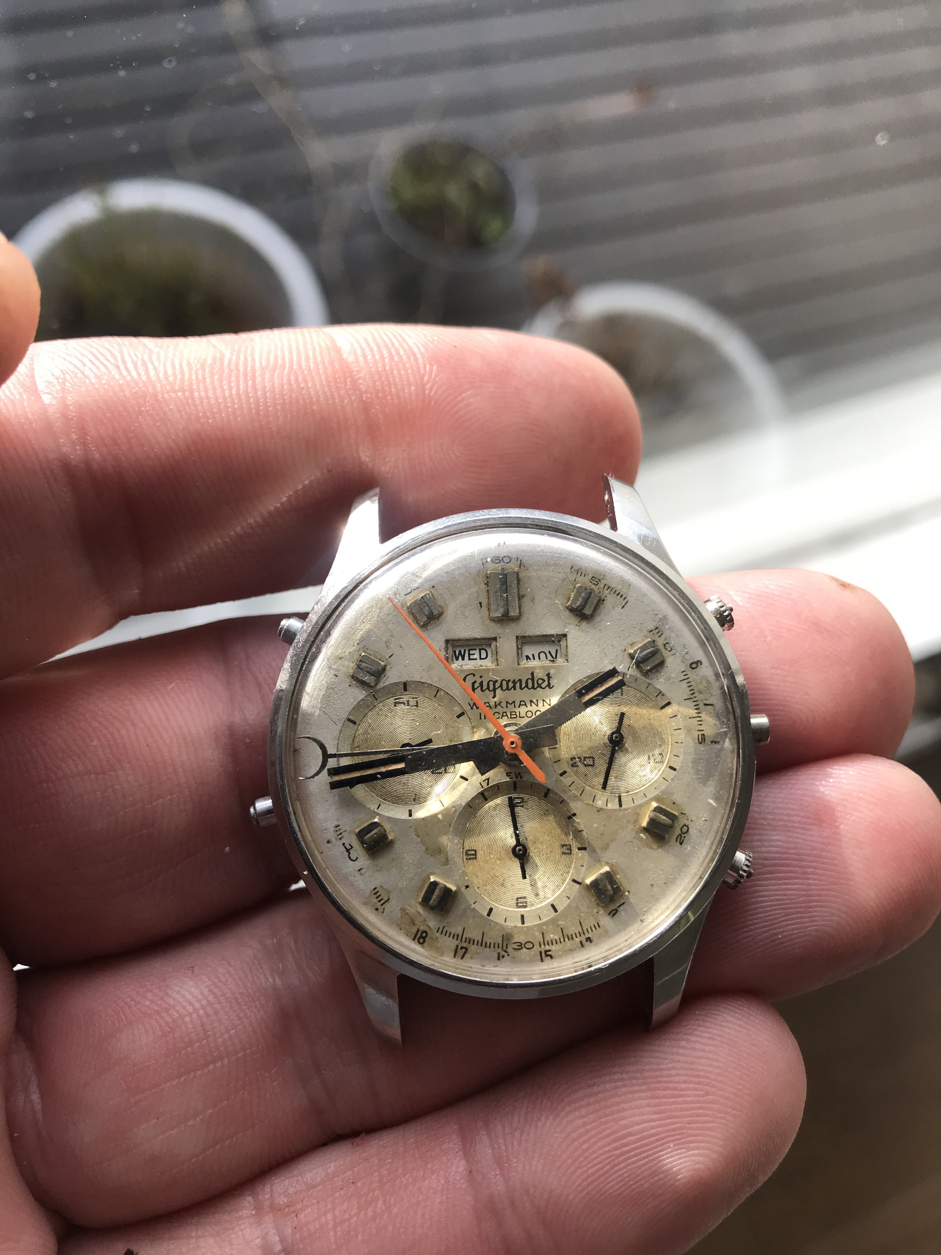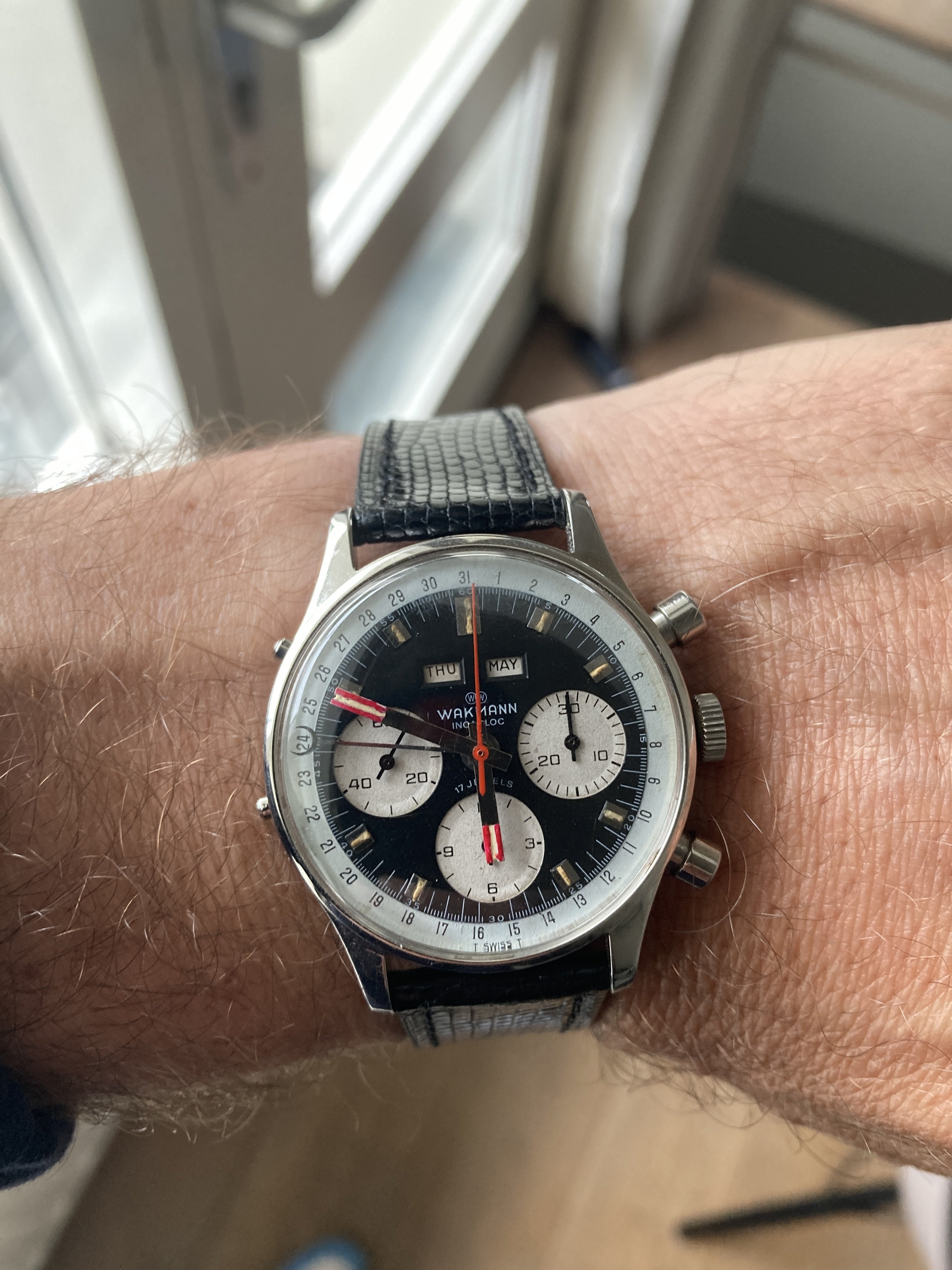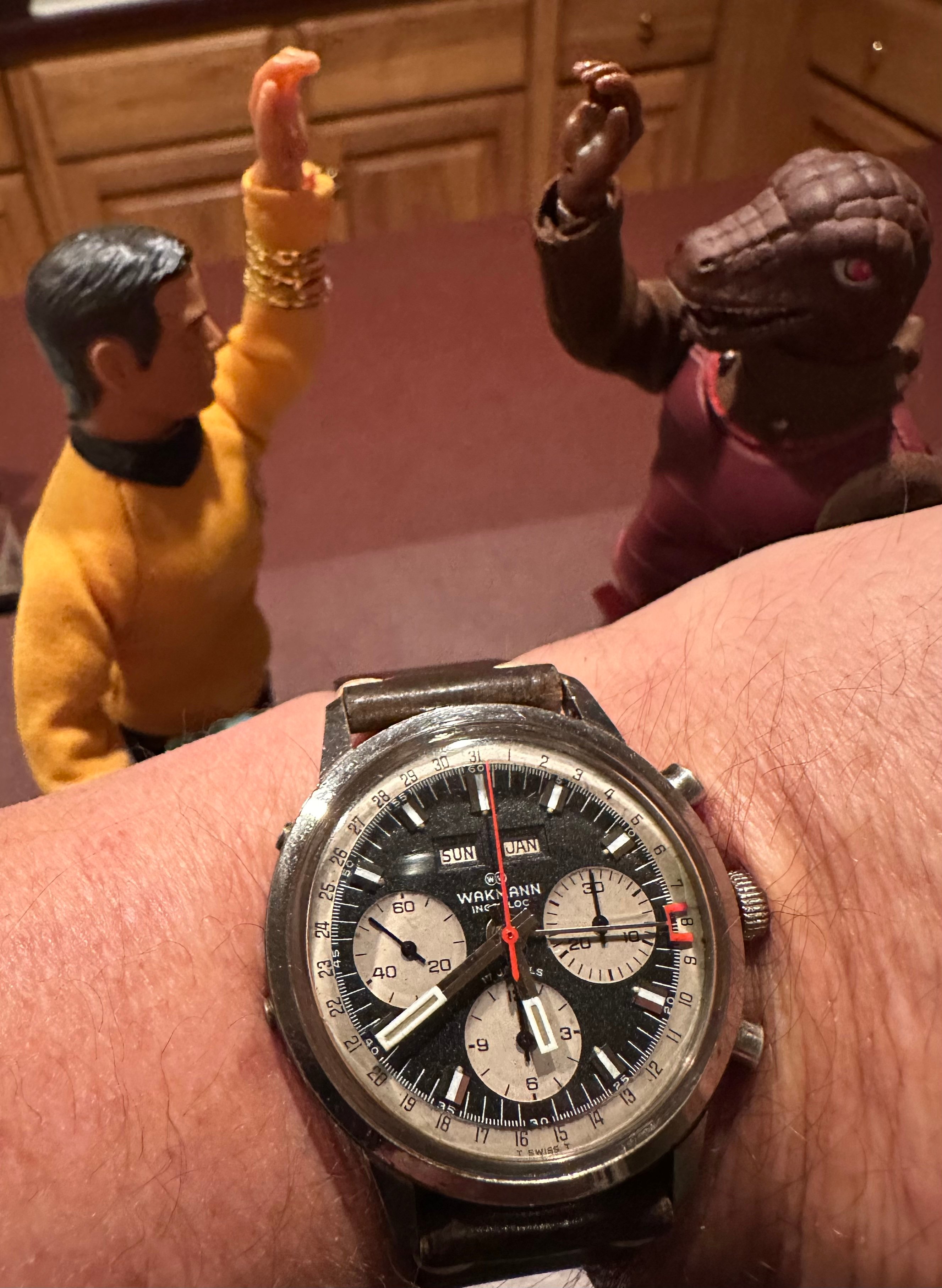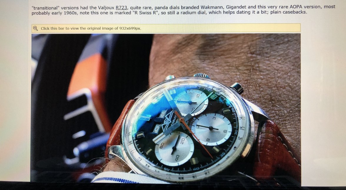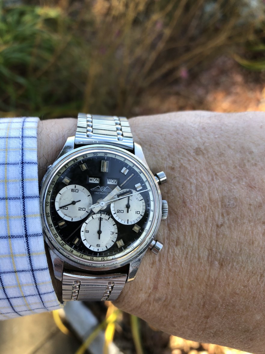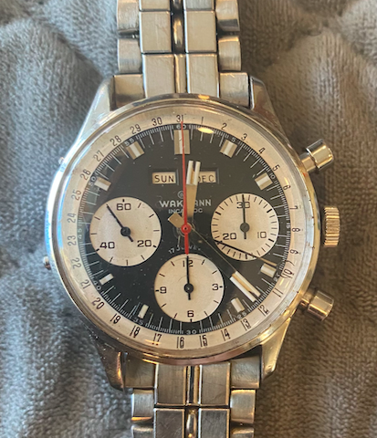I own two of these now but don't wear them much, not because they aren't attractive. I find this to be one of the most aesthetically pleasing chronographs of that era...or now, and they have solid movements. The chrono functions are superior to several others I own. And even the date features on mine are reliable. They keep reasonably good time, too. So why are the prices on them still mostly below 3k, and why are there always half a dozen of them for sale on ebay? At less than 3k, how many great-looking, reliable vintage chronographs with a Val 72 family movement are there to be had? I'm not sure I can think of any. The 72 was good enough for those old Daytonas for a very long time, and one could easily argue that they are not really any better built than the Wakmann.
