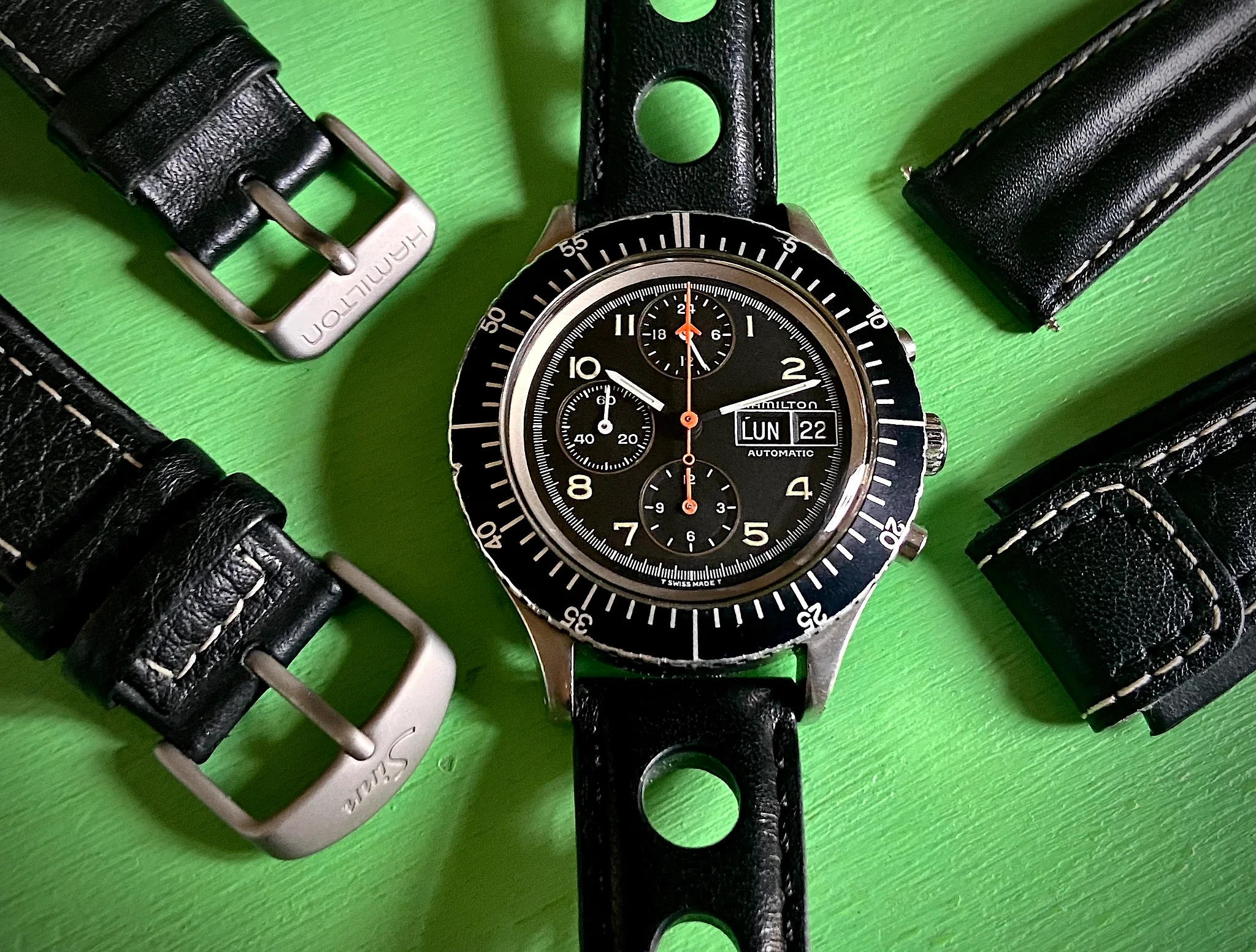 Posts 3,410 Likes 17,405 hmmmcamu ·Jan 4, 2025 Beng7 This strap looks great with this watch. Who makes the strap? thank U, the strap came and is the original strap for my HAMILTON Lemania 5100 chrono. strap on the upper portion of the photo below