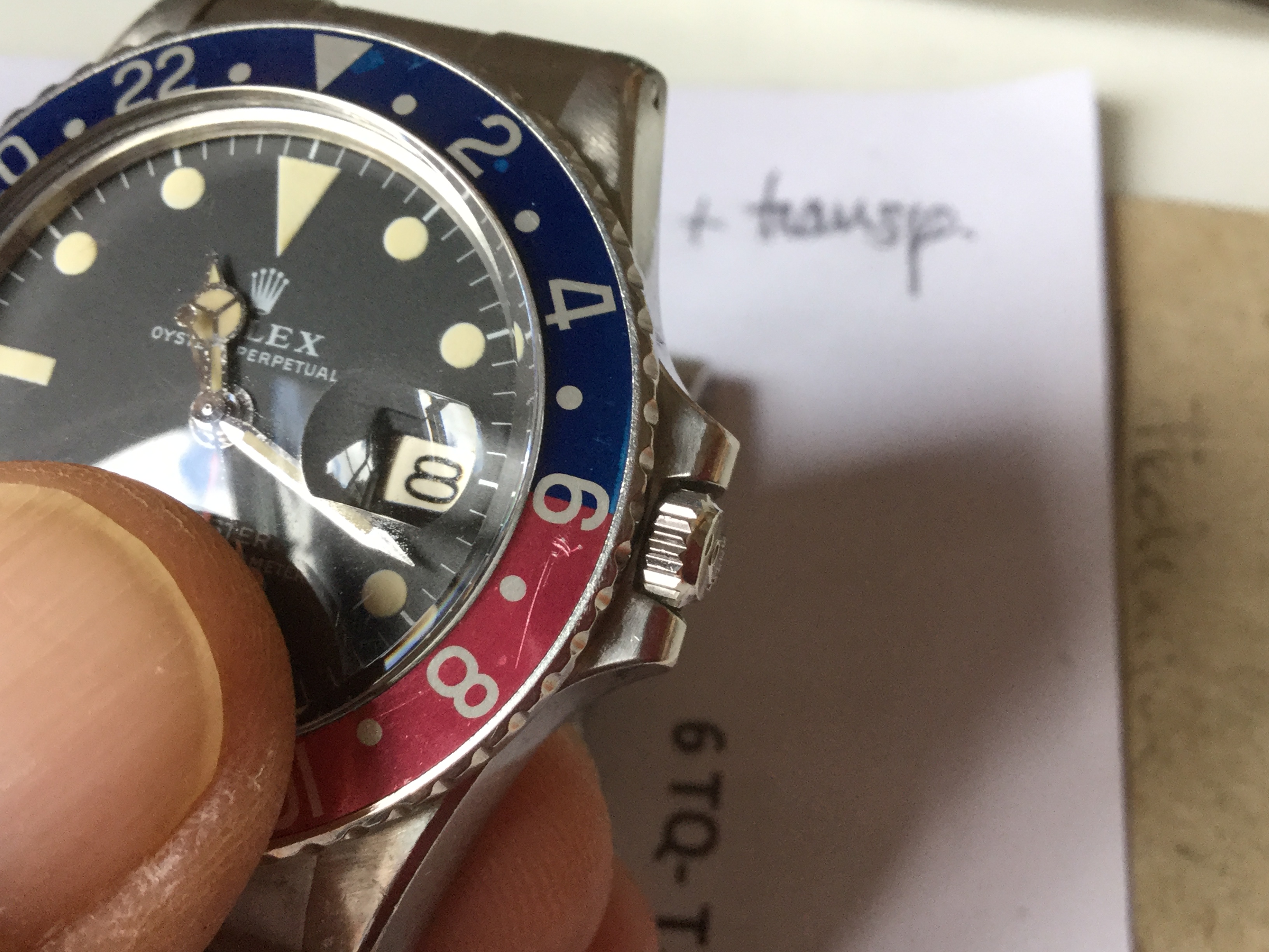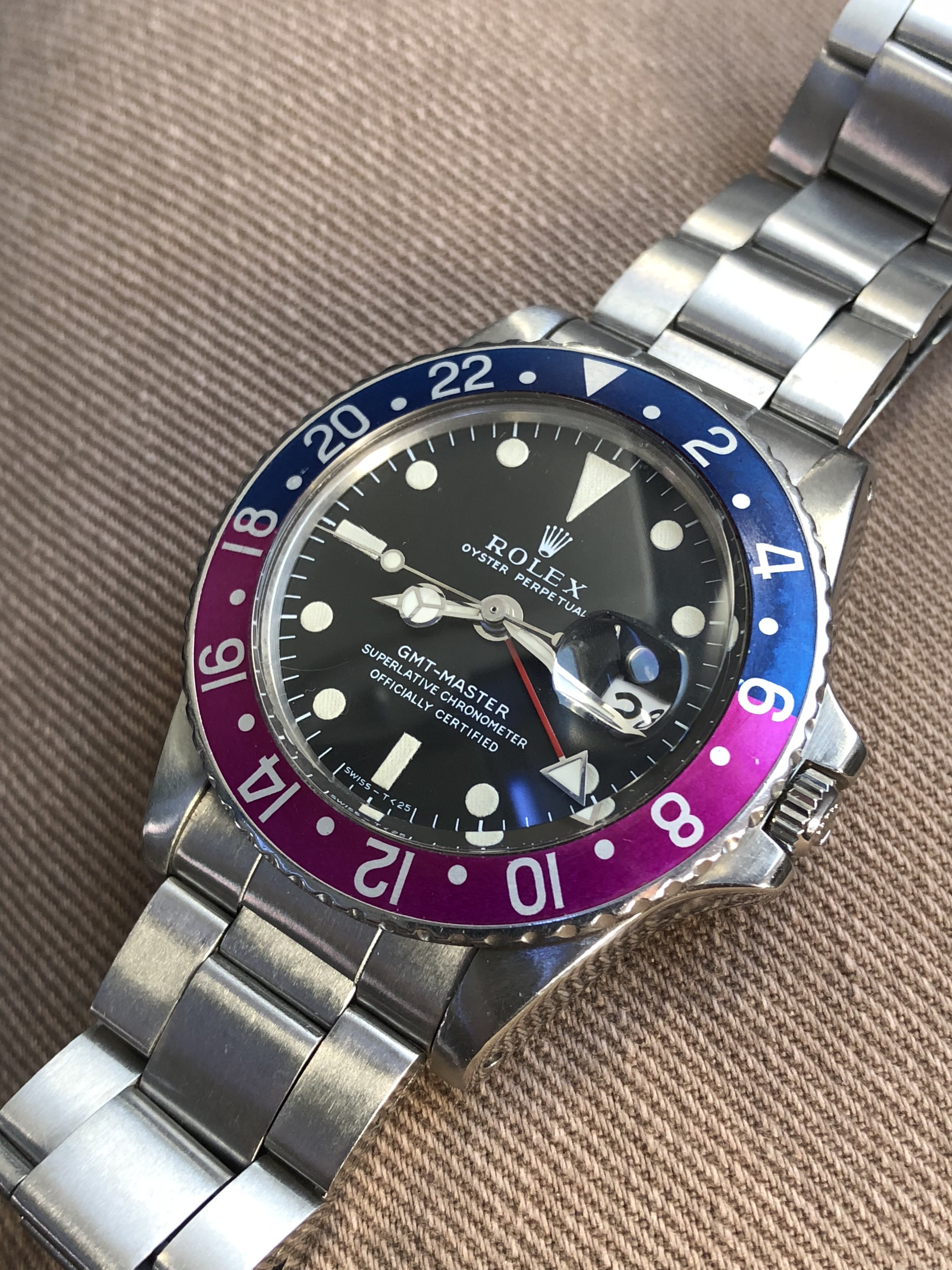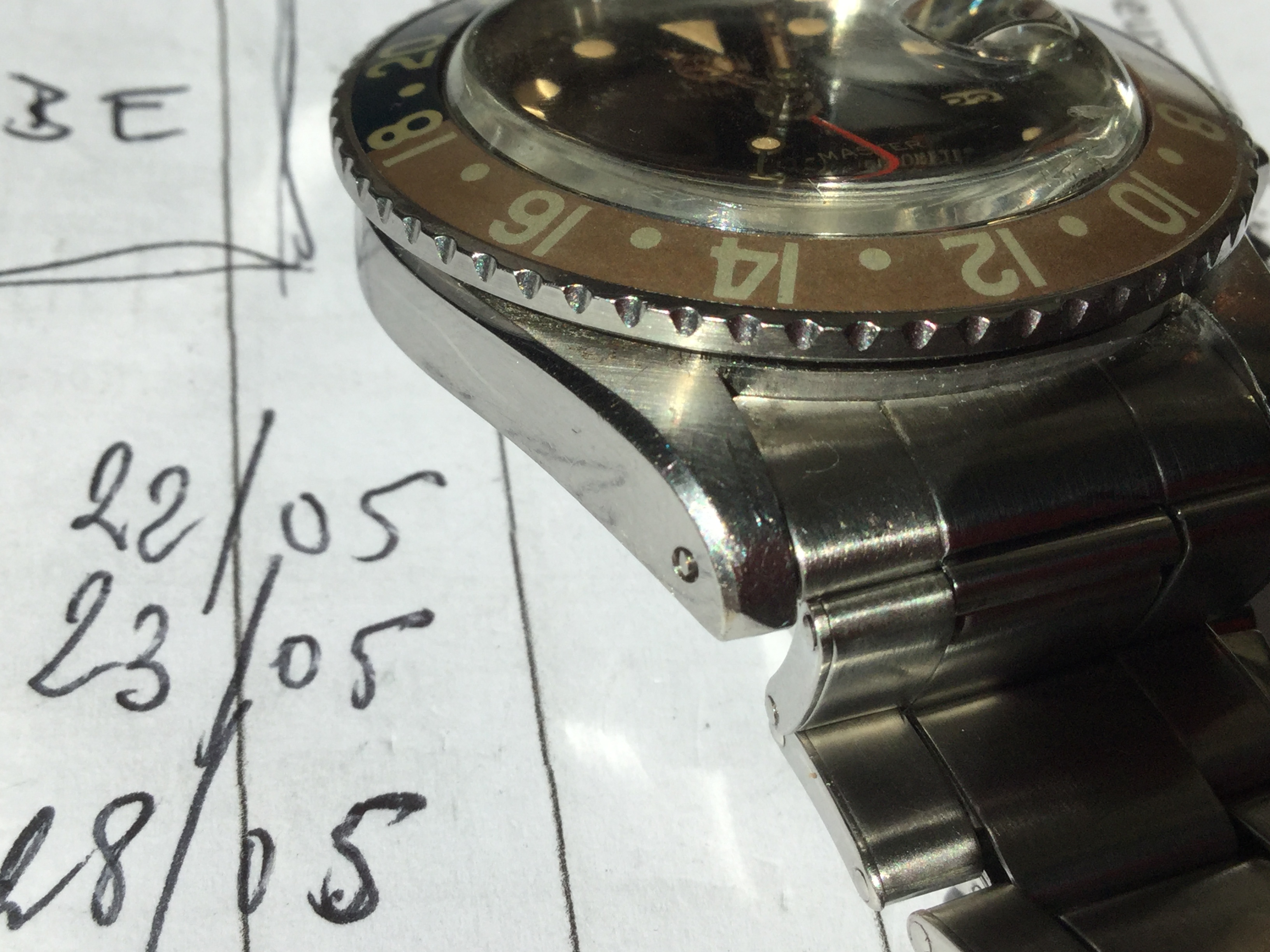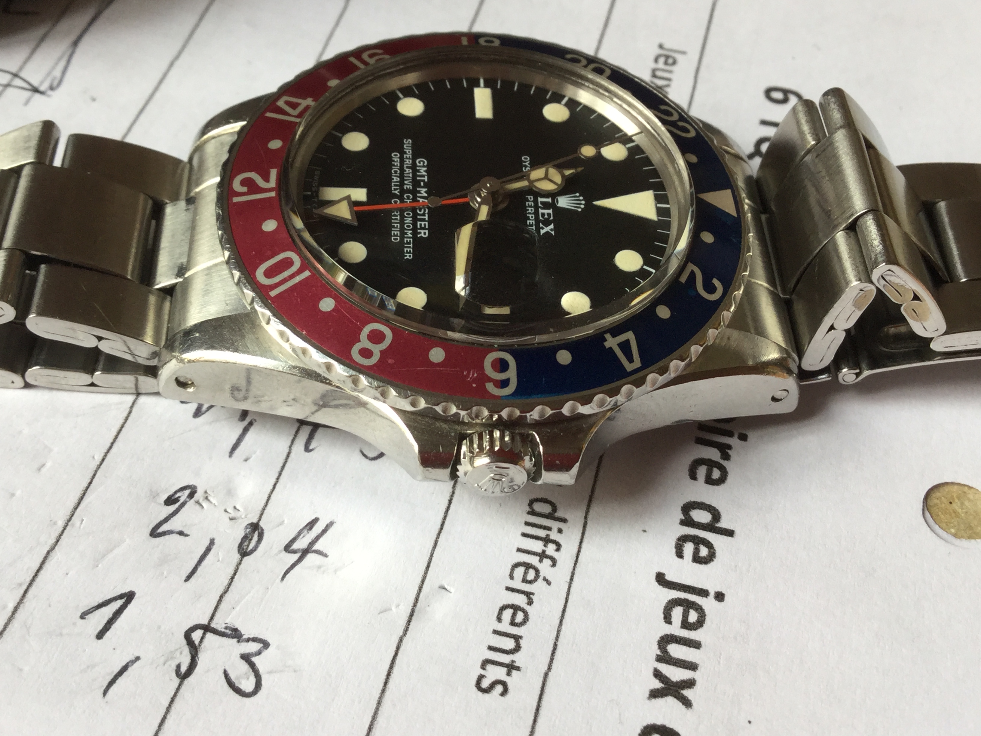 genuine vintage watches. The reason why some watches have been tampered with to look better (it cannot be statistically otherwise, remember) is because, in their pre-cosmetic-surgery condition, they were not worth the $15K that finer examples commanded. So someone has spent a $3K (random #1 number picked) enhancement job on a $7K (random #2 number picked) watch to be able to make it look like other original $15K GMT's. This is not genuine supply - this is artificial supply... I cannot think any of you who bought some of these watches (there MUST be some here - again, statistics... we just don't know which ones are concerned) would say "Oh, I don't care that I paid $15K for a watch that got a nose and a boob job to bump its value 50%, really" if somehow it could be proofed that their watch has been enhanced in such a way. I certainly wouldn't take it easy - I'd go bonkers and bang my head against the wall and possibly do something silly like taking a couple of days off and drive to the seller's shed with a few friends I'd recruited at the local pub and handed over baseball bats to so we can have a casual discussion with the seller on that topic.