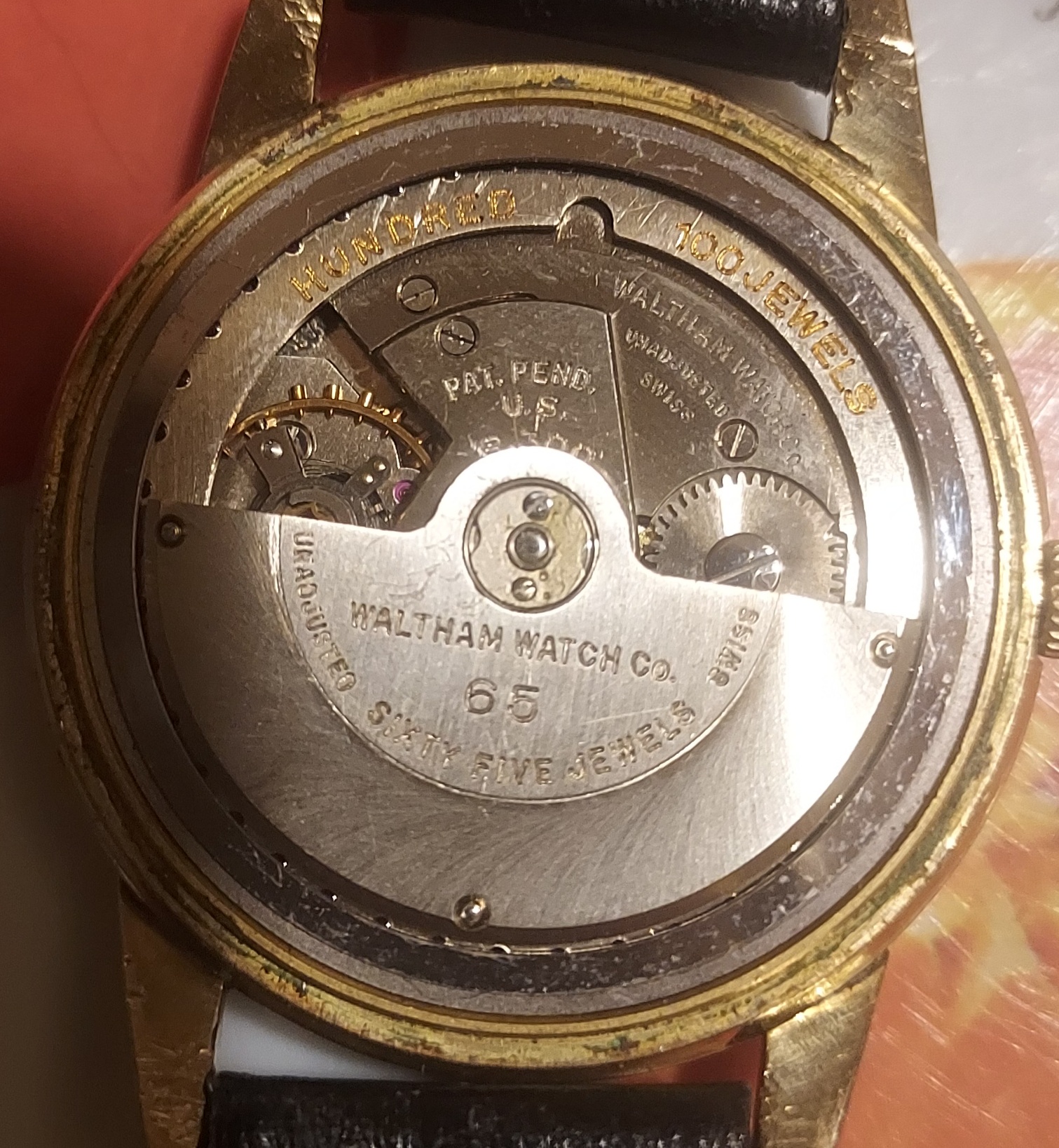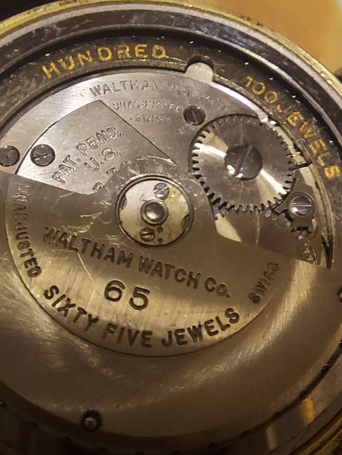 And THAT doesn’t look correct, am I wrong? The inside mentioning BOTH indications :100 jewels AND 65 jewels. My guess is that at some point of its life, the watch has been repaired with a 65 jewels Waltham part. Is it a problem? For purists, certainly yes. For the proper working of the watch? I suppose not, BUT the point is… the watch doesn’t work properly… for the moment. Your opinions, guys, if I may ask? It would be greatly appreciated!