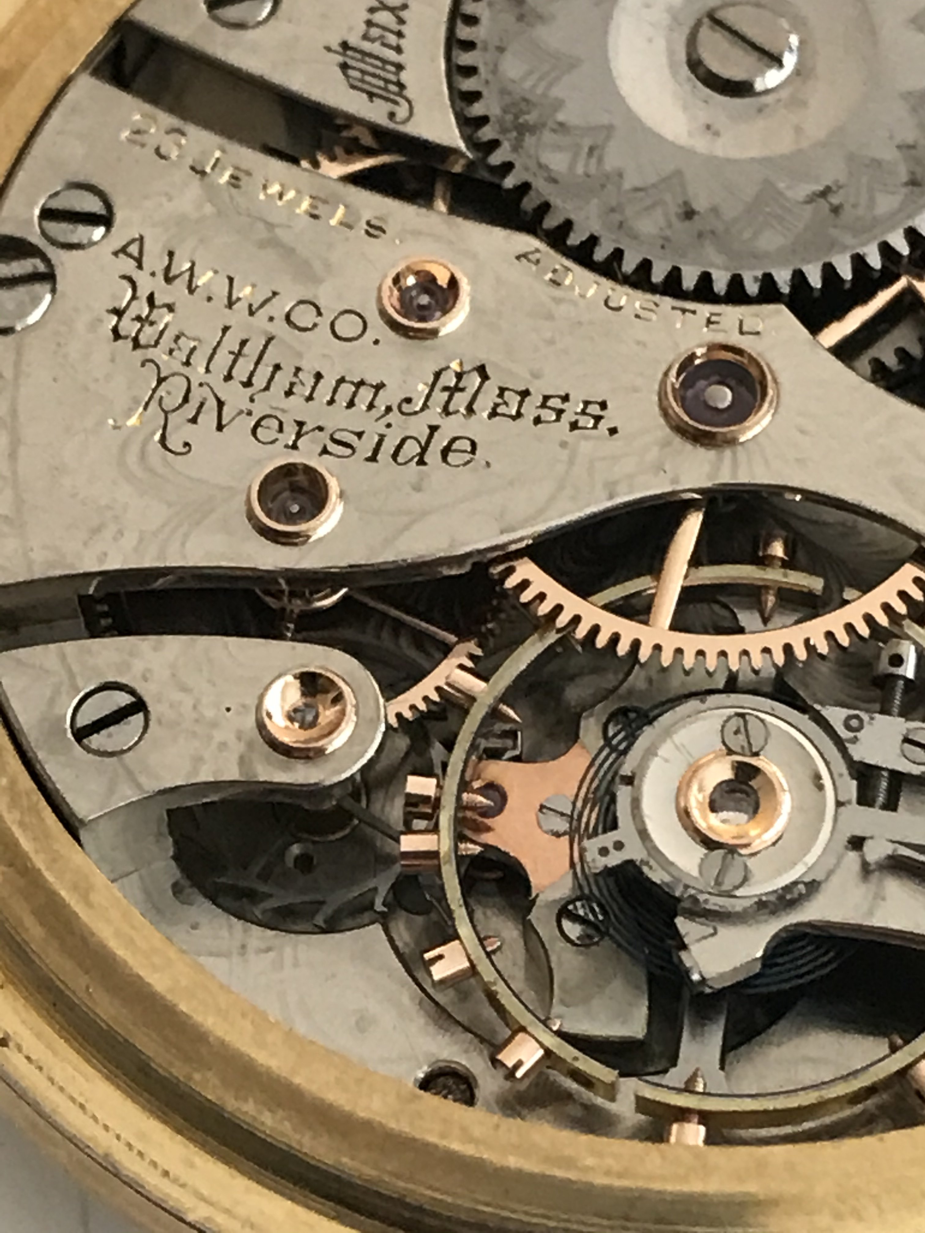 Here’s one of my nicest American pocket watches, a Waltham Riverside Mamimus.