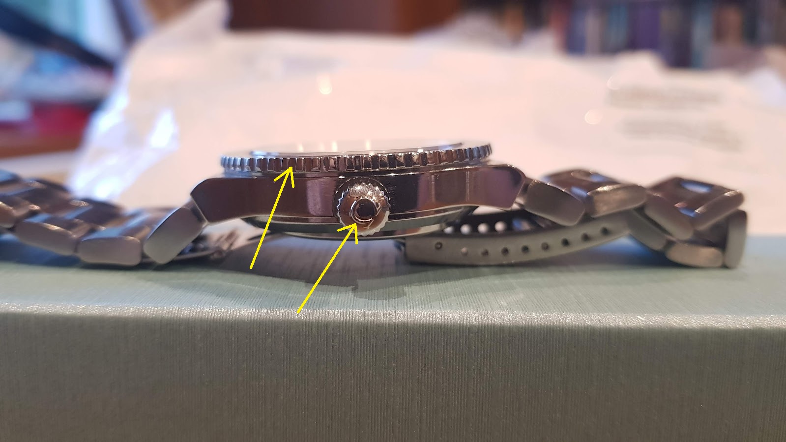 * The shape of the knurled ring of the bezel is wrong and it lacks definition