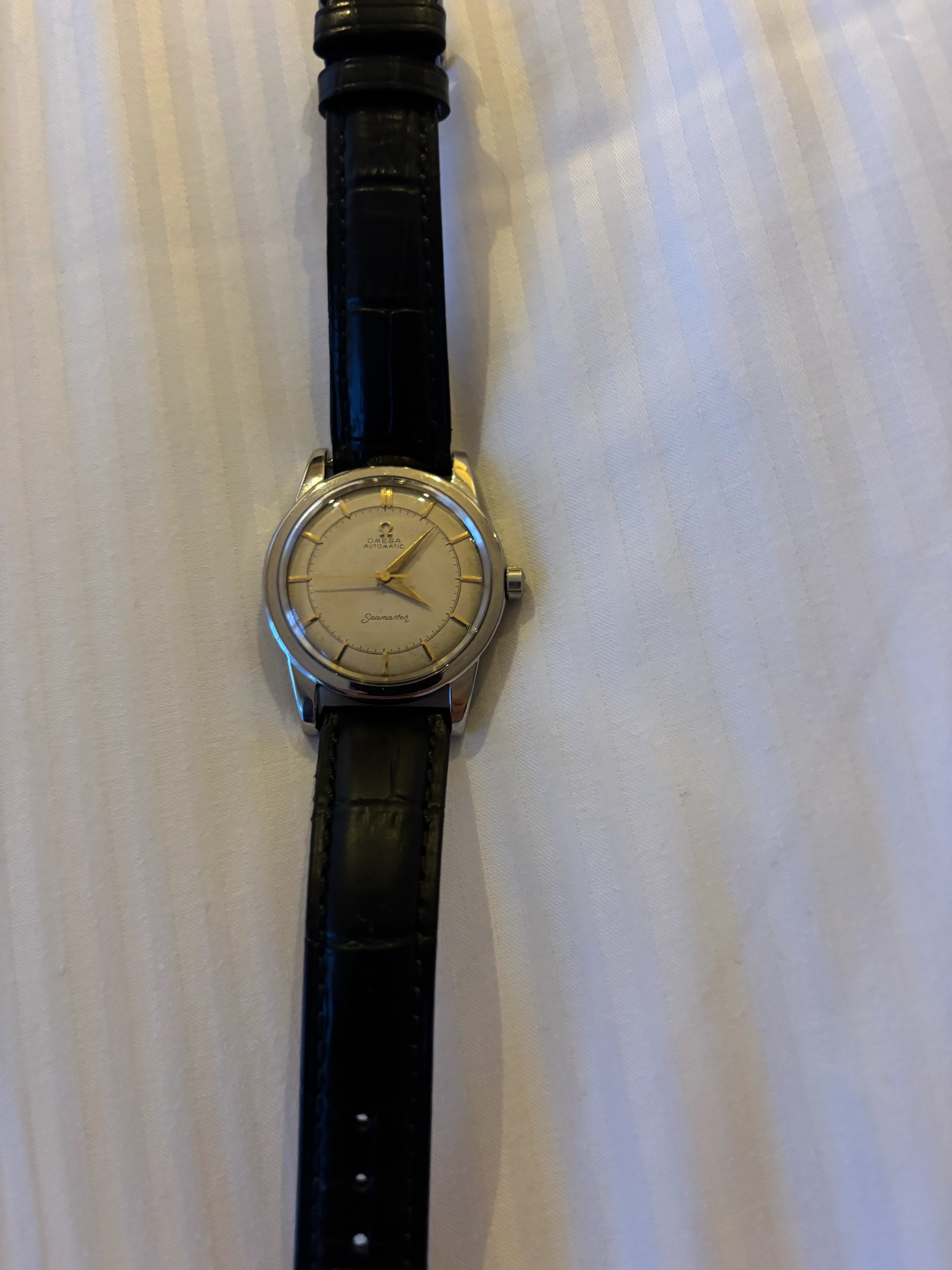 ·HI, new to collecting vintage watches and eager to learn. Purchased this Omega Seamaster while in London last month. I was told 1960s' but I think it's 1950s 2577. I'd love to find an original seahorse caseback, although it think the current back is genuine Omega, I'm pretty sure it's a service version. I'd love to hear people's opinions of it. As I was looking for a 1965 model I guess I'm still looking for one...which means I get to buy another 😀. Probably look for a Constellation with a pie pan dial and take more time than I did on this more impulsive purchase. Thanks