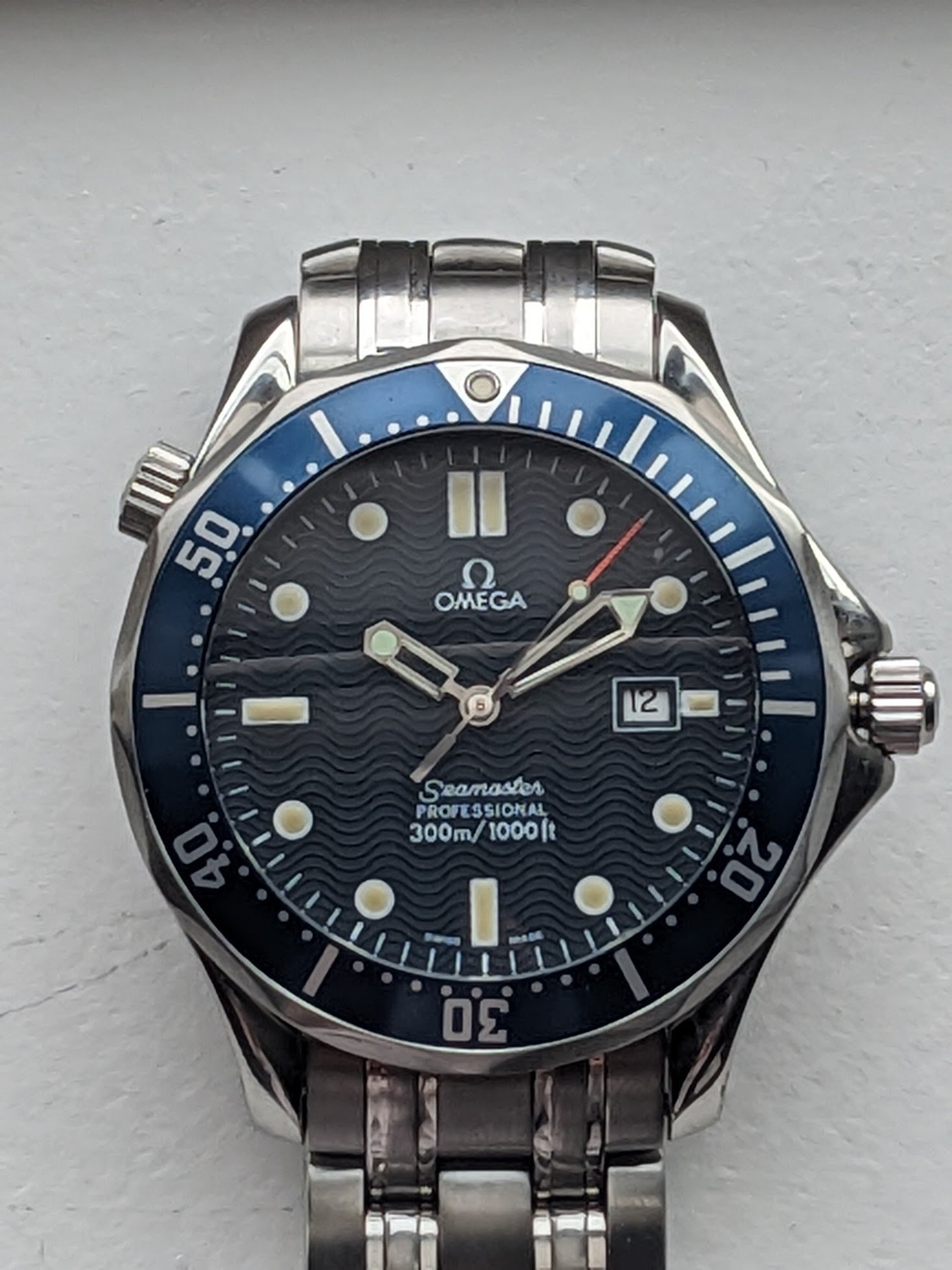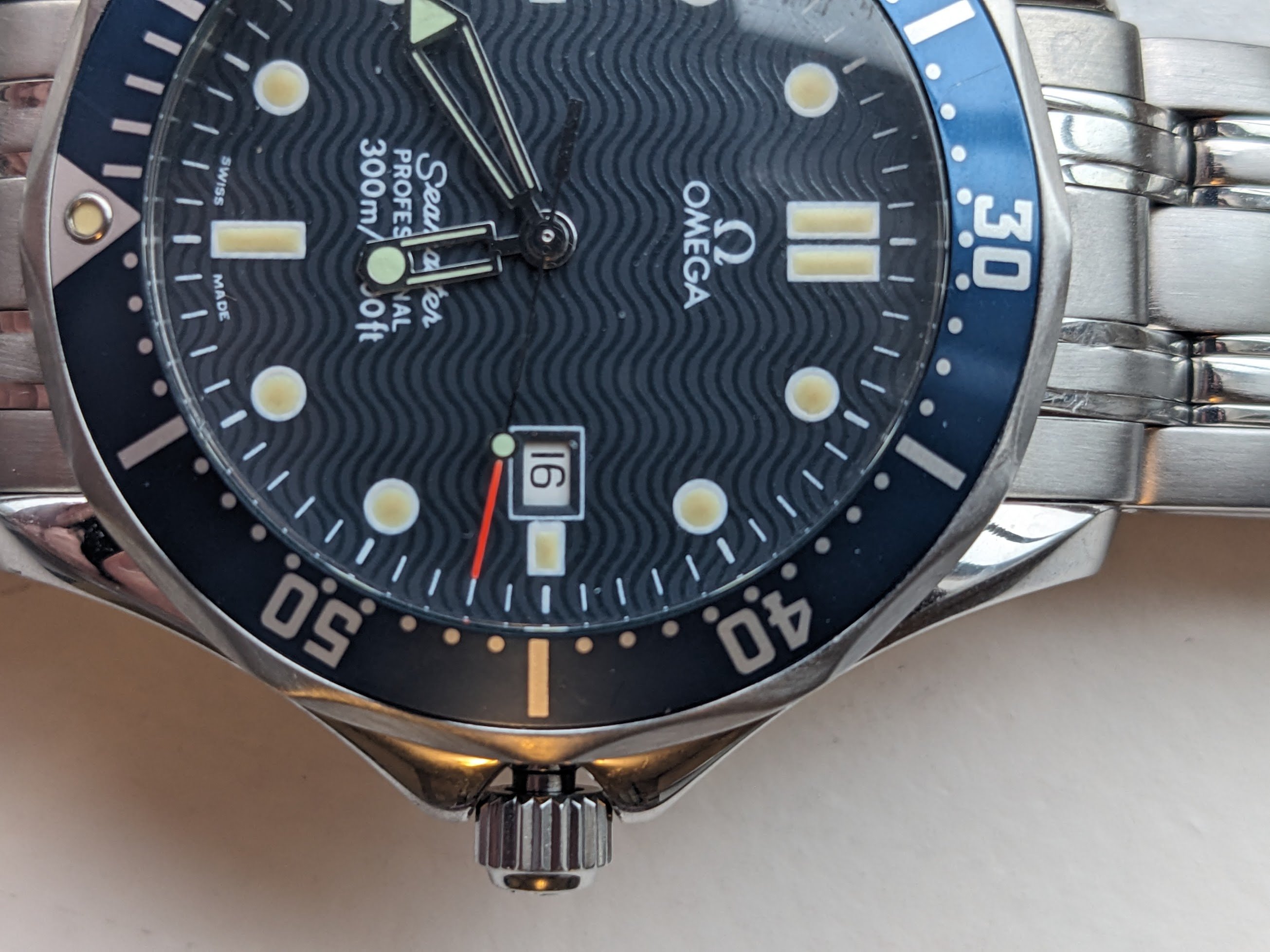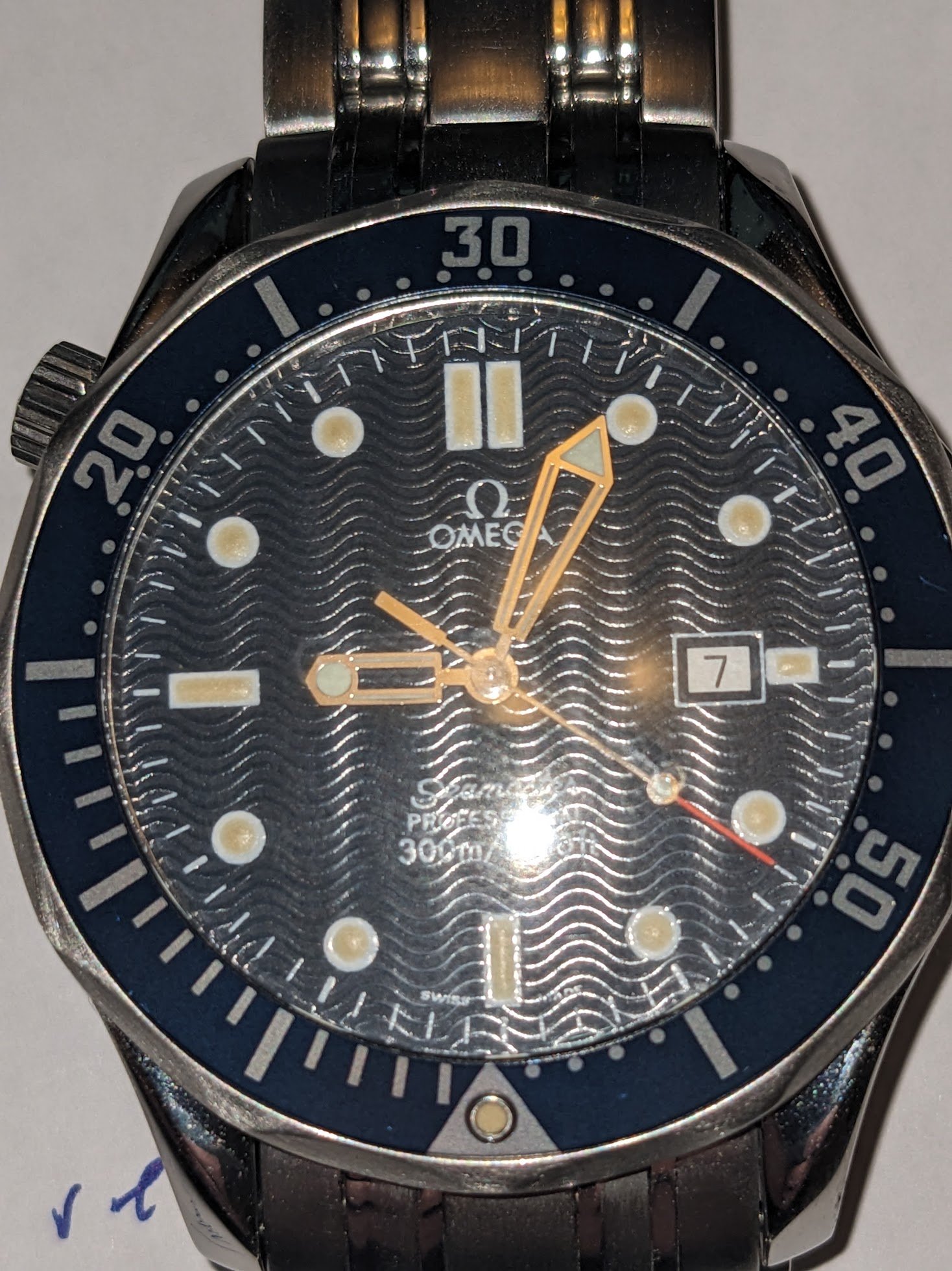 It's my first Omega, and I was pretty certain it was authentic. Seller was reputable, I've never seen a fake of a 2541.80 reported. Typical giveaways on other model fakes such as date window, font of dates, sharp corners of bezel numbers, position of the helium valve, all look correct. When I purchased it, I knew the dial was the Luminous version, so I expected it to be 1998 or newer. What I didn't realize at the time of purchase was that the 5553xxxx serial number meant it was a 1995-1997 era, which used Tritium.