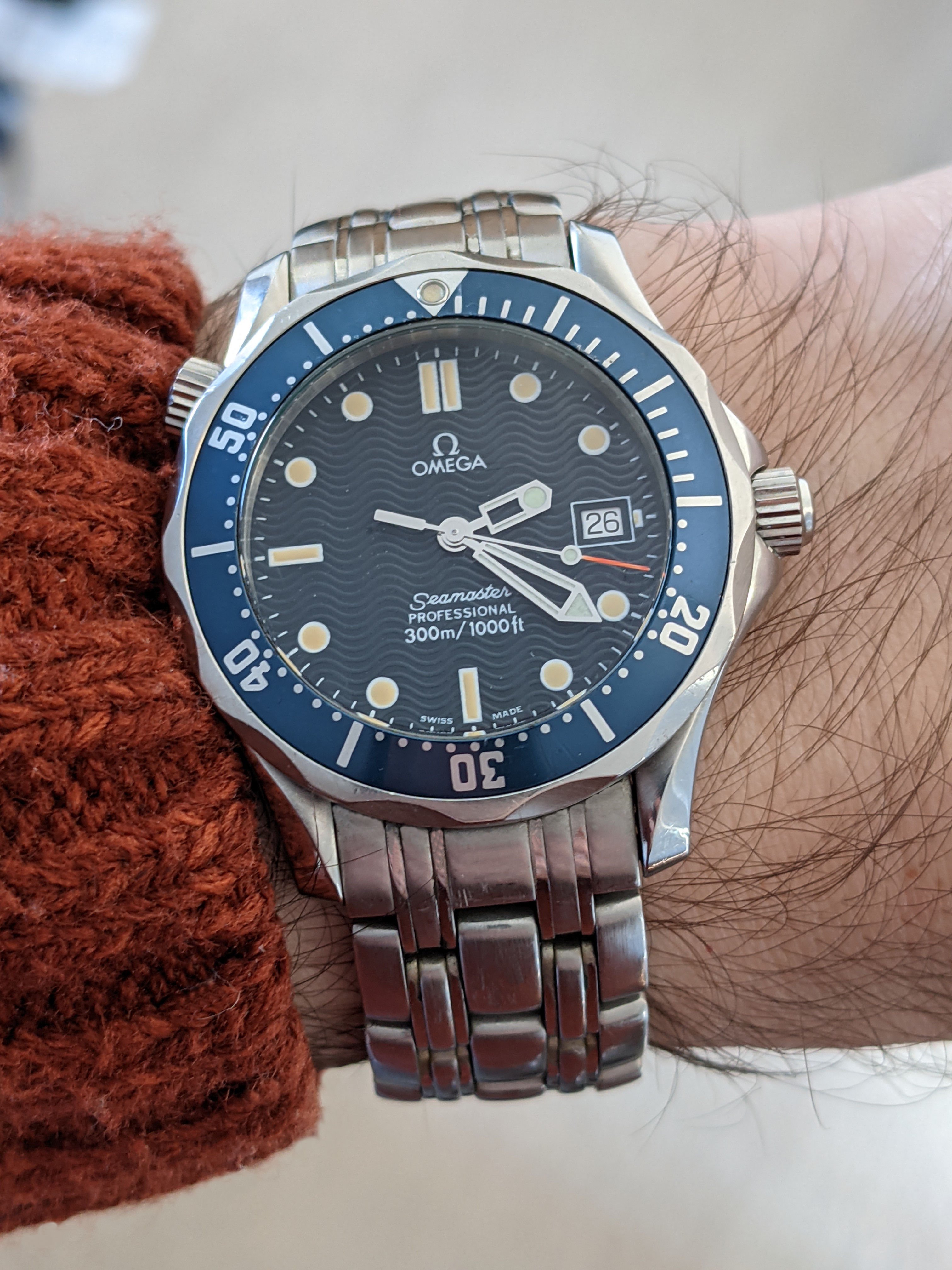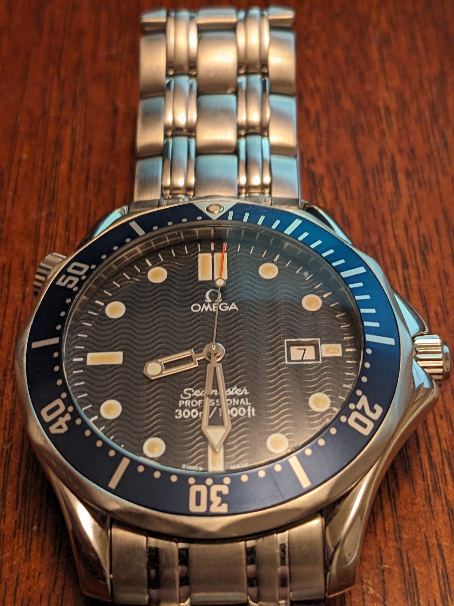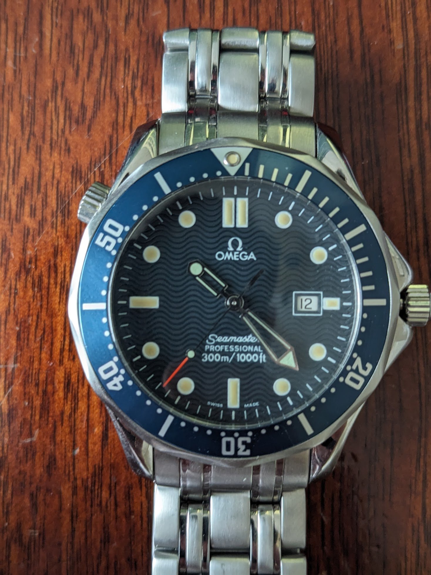 It's my first Omega, and I was pretty certain it was authentic. Seller was reputable, I've never seen a fake of a 2541.80 reported. Typical giveaways on other model fakes such as date window, font of dates, sharp corners of bezel numbers, position of the helium valve, all look correct. When I purchased it, I knew the dial was the Luminous version, so I expected it to be 1998 or newer. What I didn't realize at the time of purchase was that the 5553xxxx serial number meant it was a 1995-1997 era, which used Tritium.