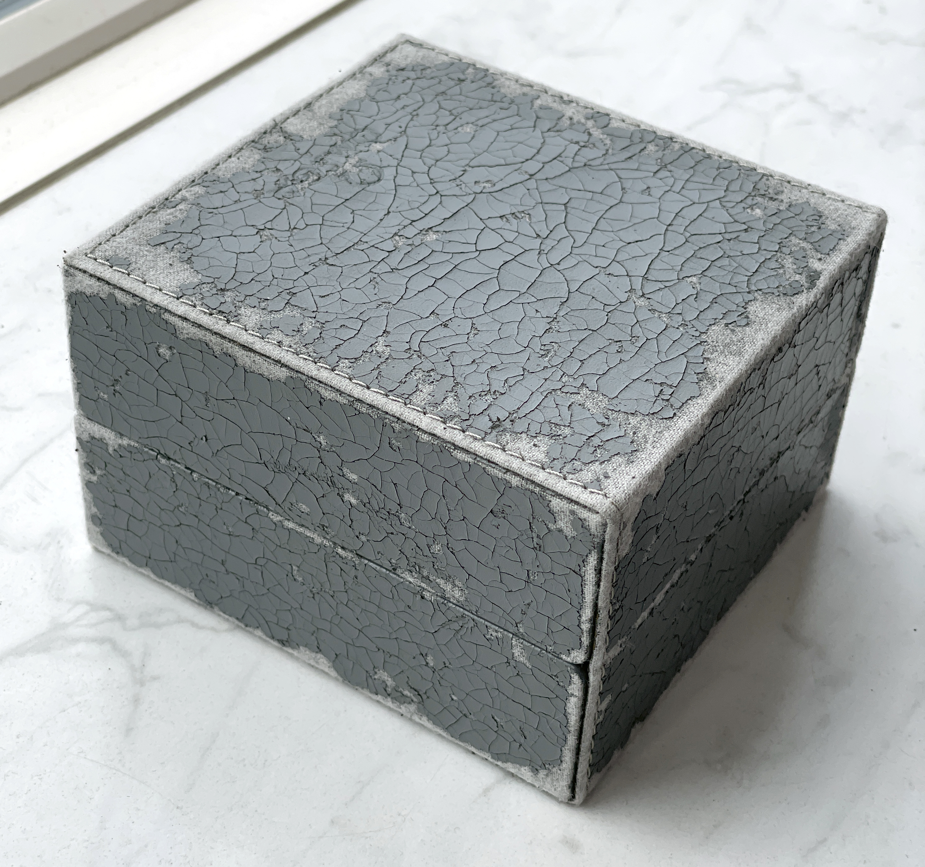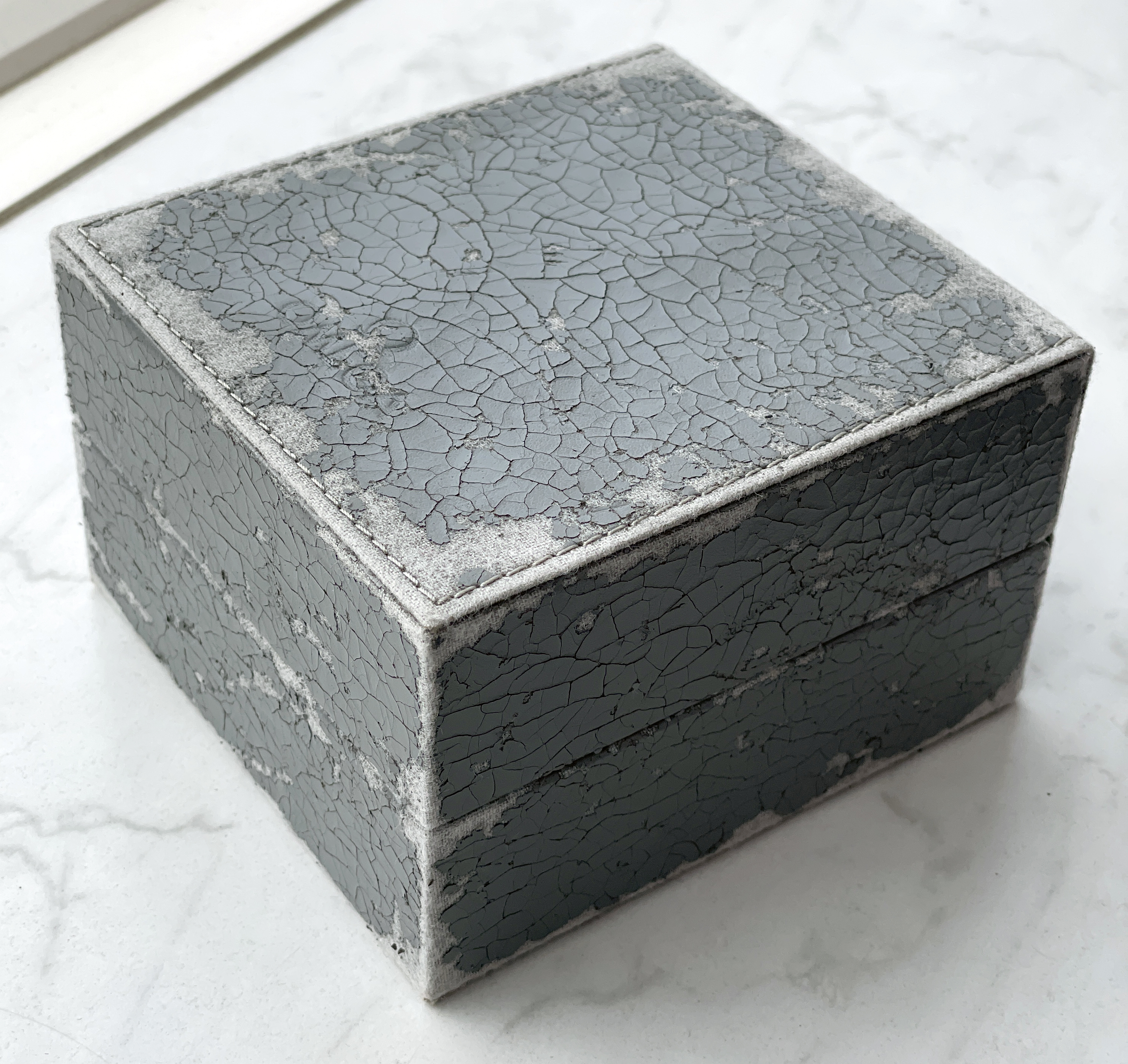 The grey exterior is clearly worn, but is attached well. So no flakes are falling off when handling the box.