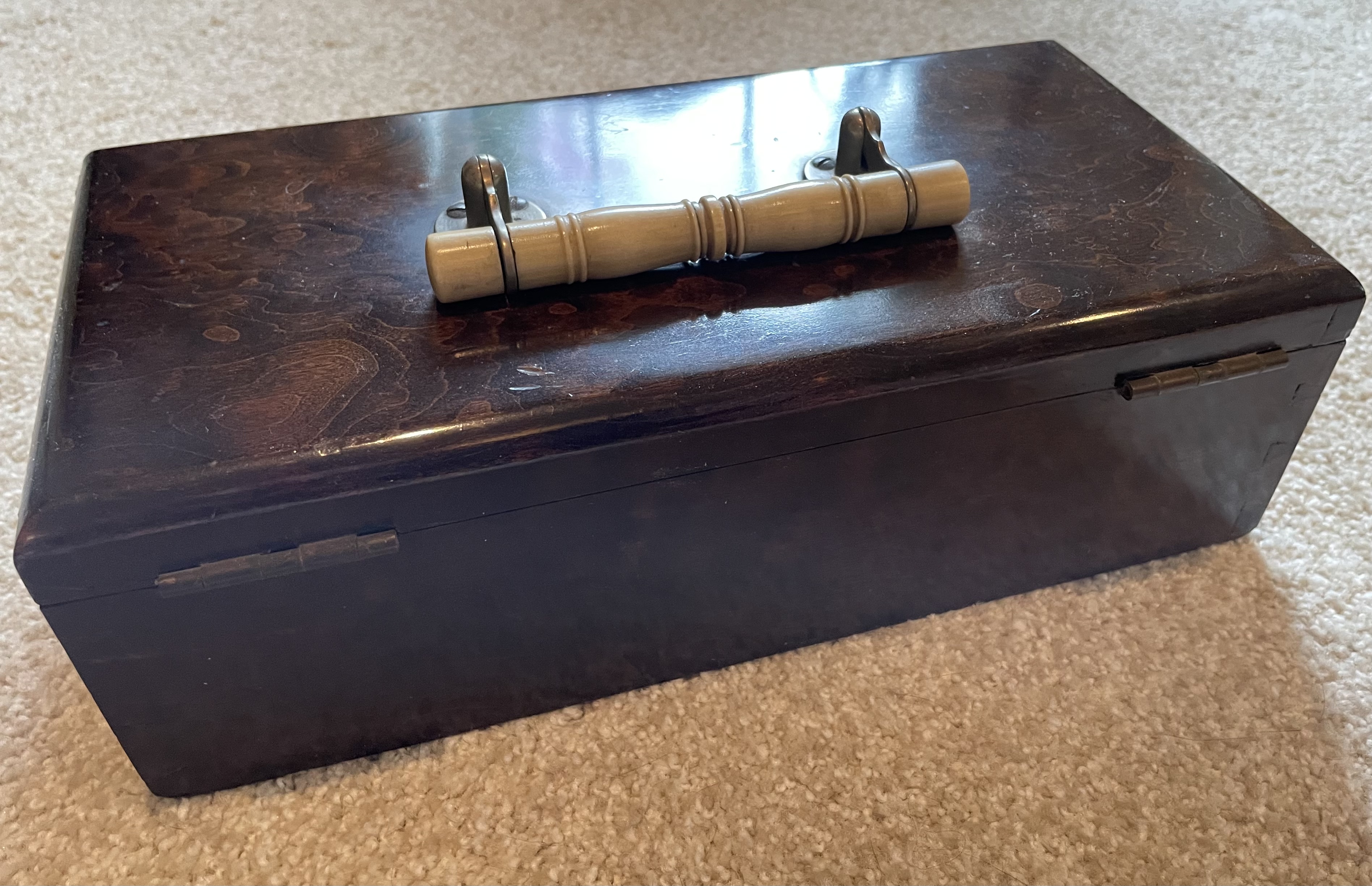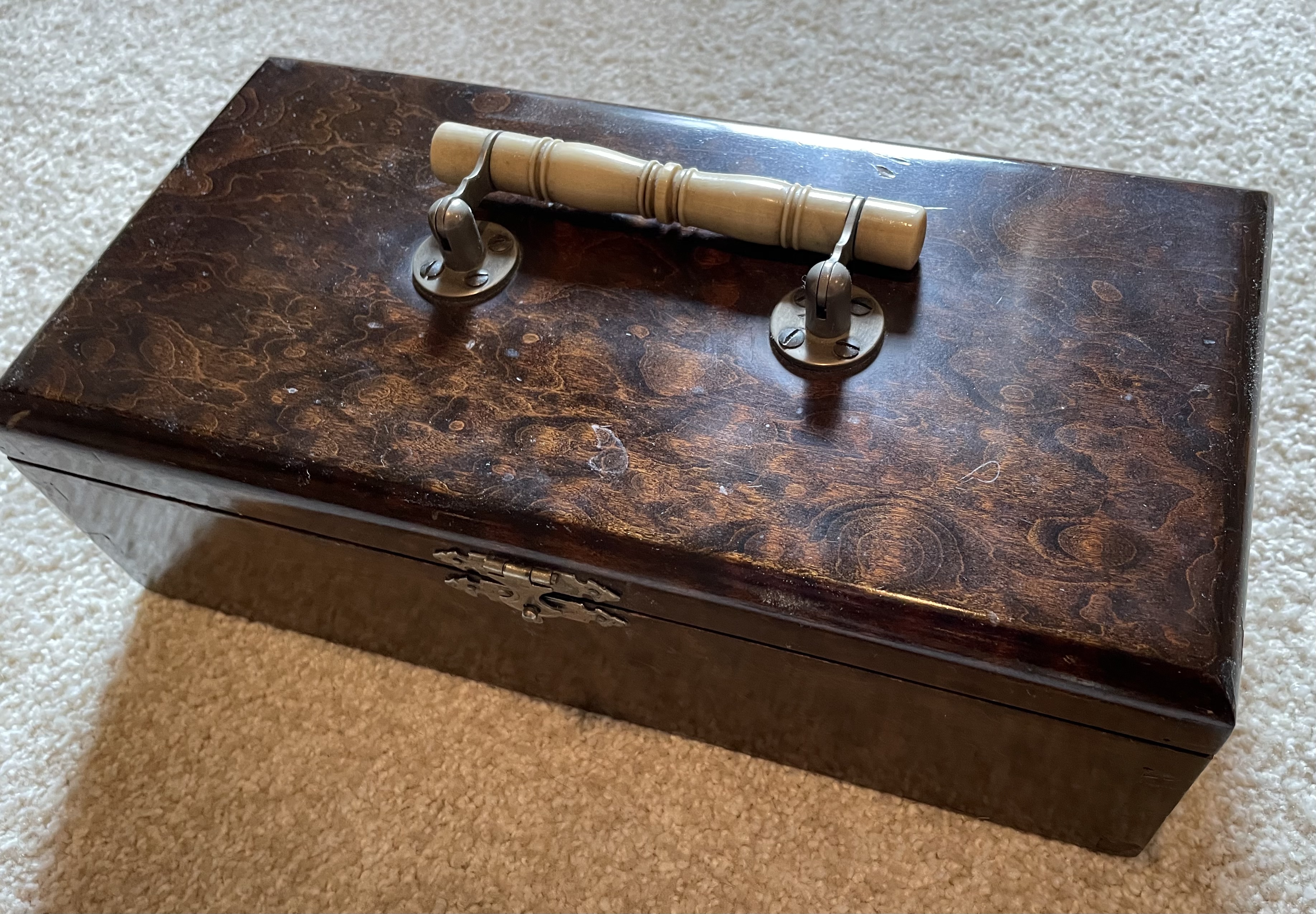I looked for a watch box thread but found none, so....Last Christmas I stumbled upon a birds eye maple box with a real ivory handle and decided to put it to use as a watch box. I'd never used a box before. (maybe a drawer and some wraps) My wife made me a pair of little pillows to put inside, and now I have a watch box. It has no compartments for watches, but it has character. Anyone use a humidor for watches? “Watch” ya got?