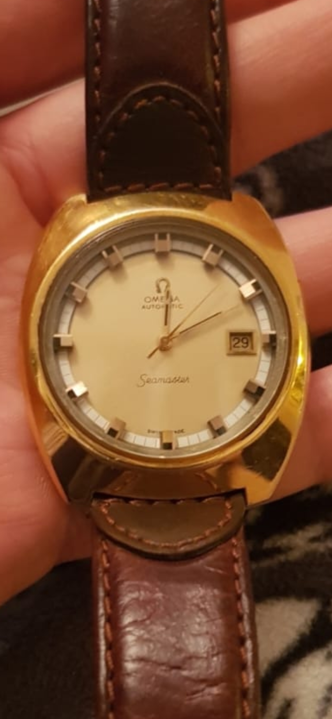 However, we can see the dial has been repainted which significantly impacts the value on an already entry level watch from the period when Omega was in decline. As a rough estimate I’d say it’s early-mid 70’s and worth £200-250. Obviously the sentimental value may be much greater.