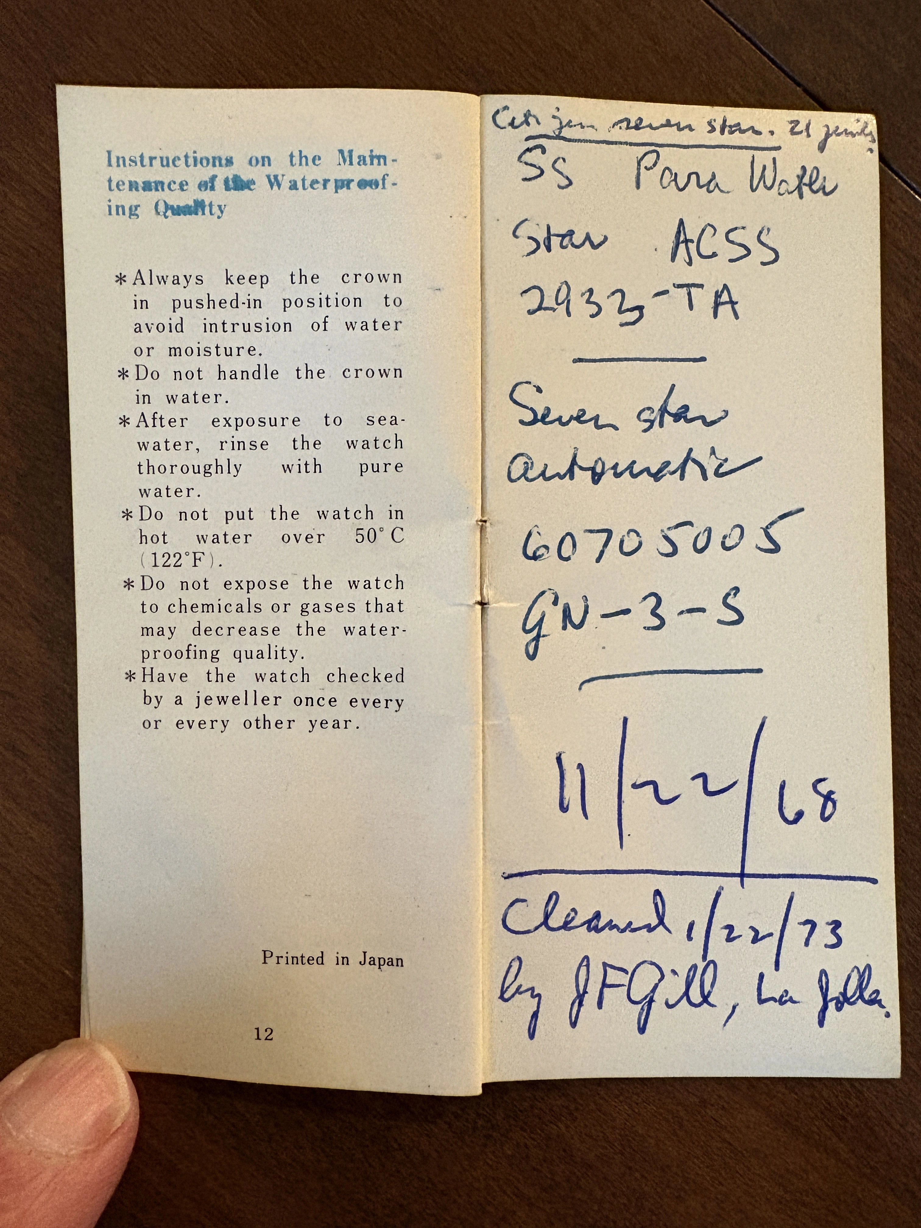 Haha, gotcha. Unfortunately, the Eterna papers (warranty and receipt) are for a ladies' Eterna. Actually, it looks like the owner had some nice watches, including a Memovox and some sort of Movado. He also cared for them well, since there was paperwork for later overhauls. Lots of interesting paperwork, from Italy, France, Switzerland, London, Israel, Japan, and La Jolla, California. Of course, none of those watches were in the lot. Just some junky wristwatches and the Elgin PW.