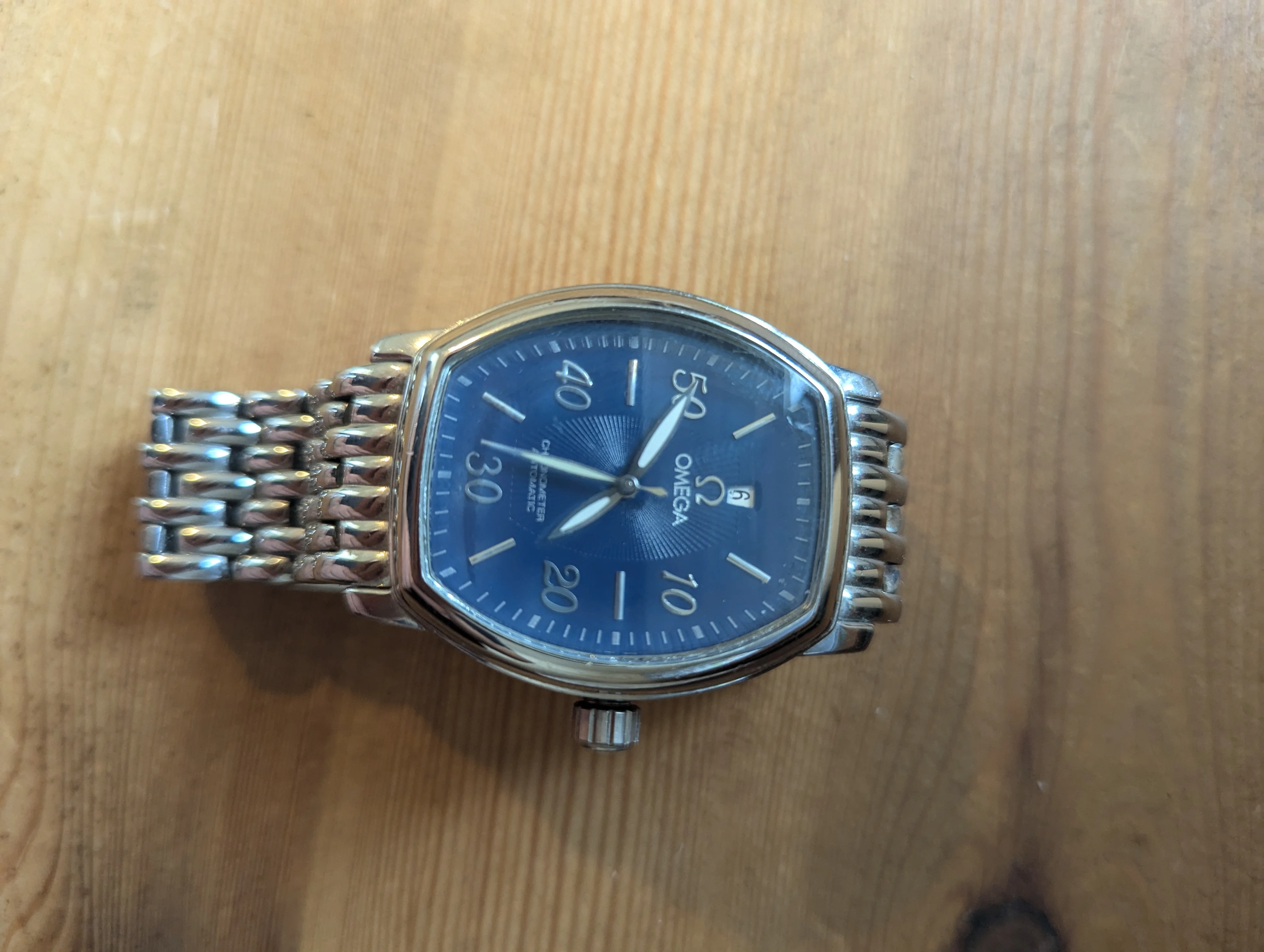 My name is Sean, I'm 37 years old and work for the NHS. Back in 2006ish I did a favor for someone and they very kindly gifted me this watch.i wore it a few times but mostly I kept it safe because I liked it and didn't want to damage it (I worked a different job back then) I've gone and looked at a load of different websites but I failed to find what model the watch is. It's reminiscent of De Ville Prestige Tonneau, but it uses 10,20,30 ect instead of Roman numerals or numbers. The placement of the date sits above the omega logo, which isn't very common. And on the back there's a reference number which doesn't seem to be bringing up any information in databases. The watch has a good weight to it and his automatic.