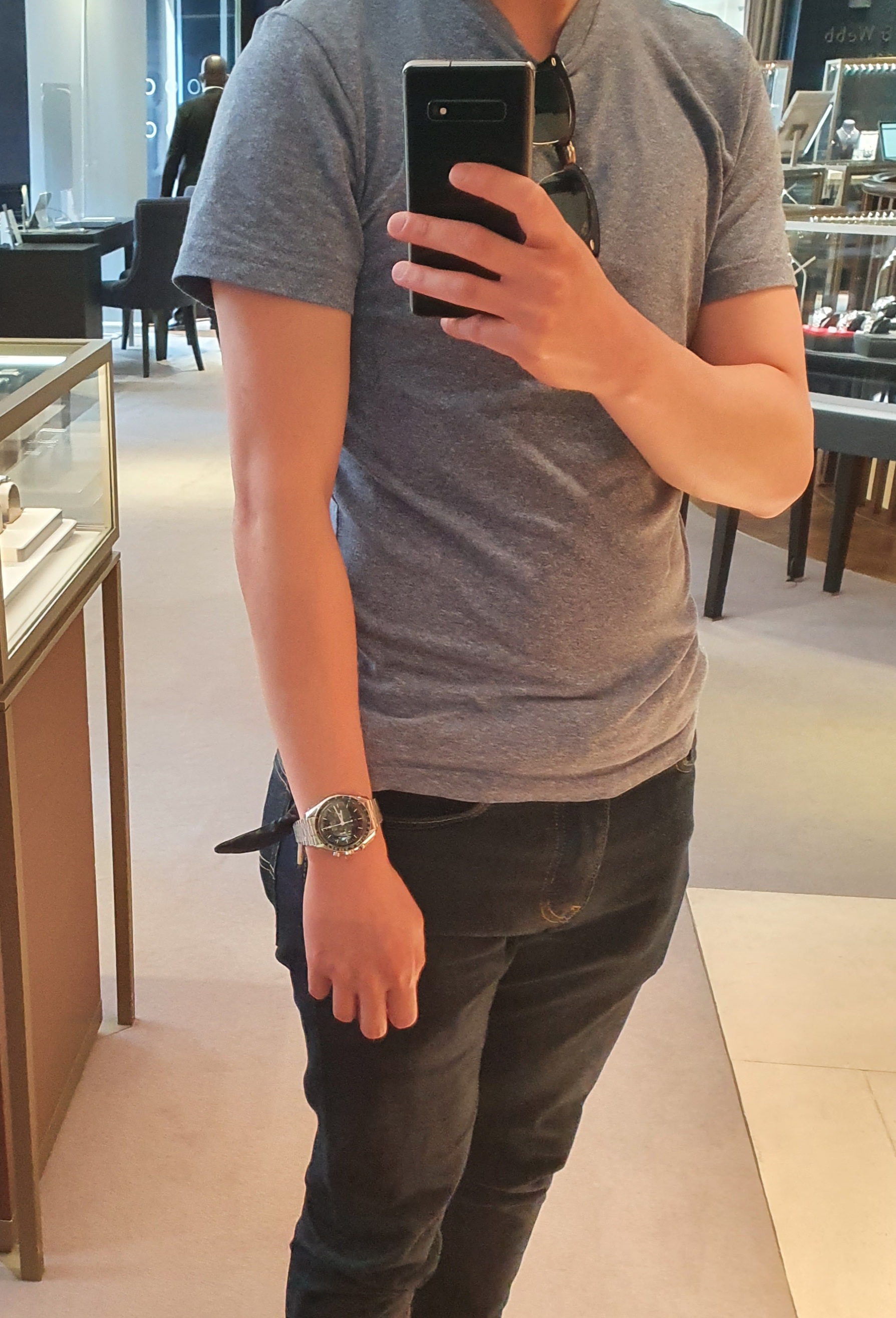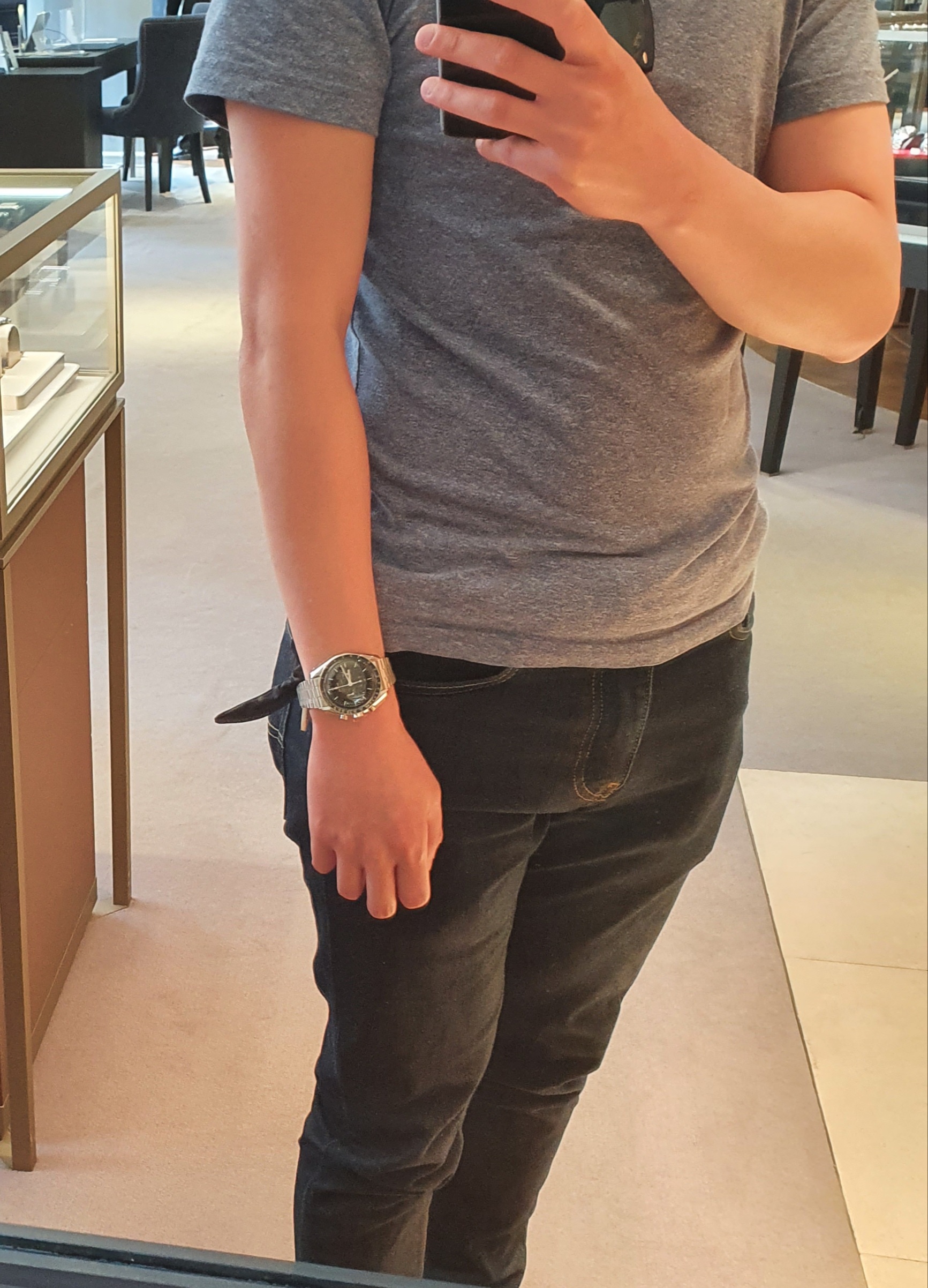 The 38.5mm would definitely fit on my wrist but I'm not the biggest fan of the dial nor the height of the watch. I really like the moonwatch and my only real concern is whether or not it is too large. I think I'm on the cusp? But opinions definitely welcome.