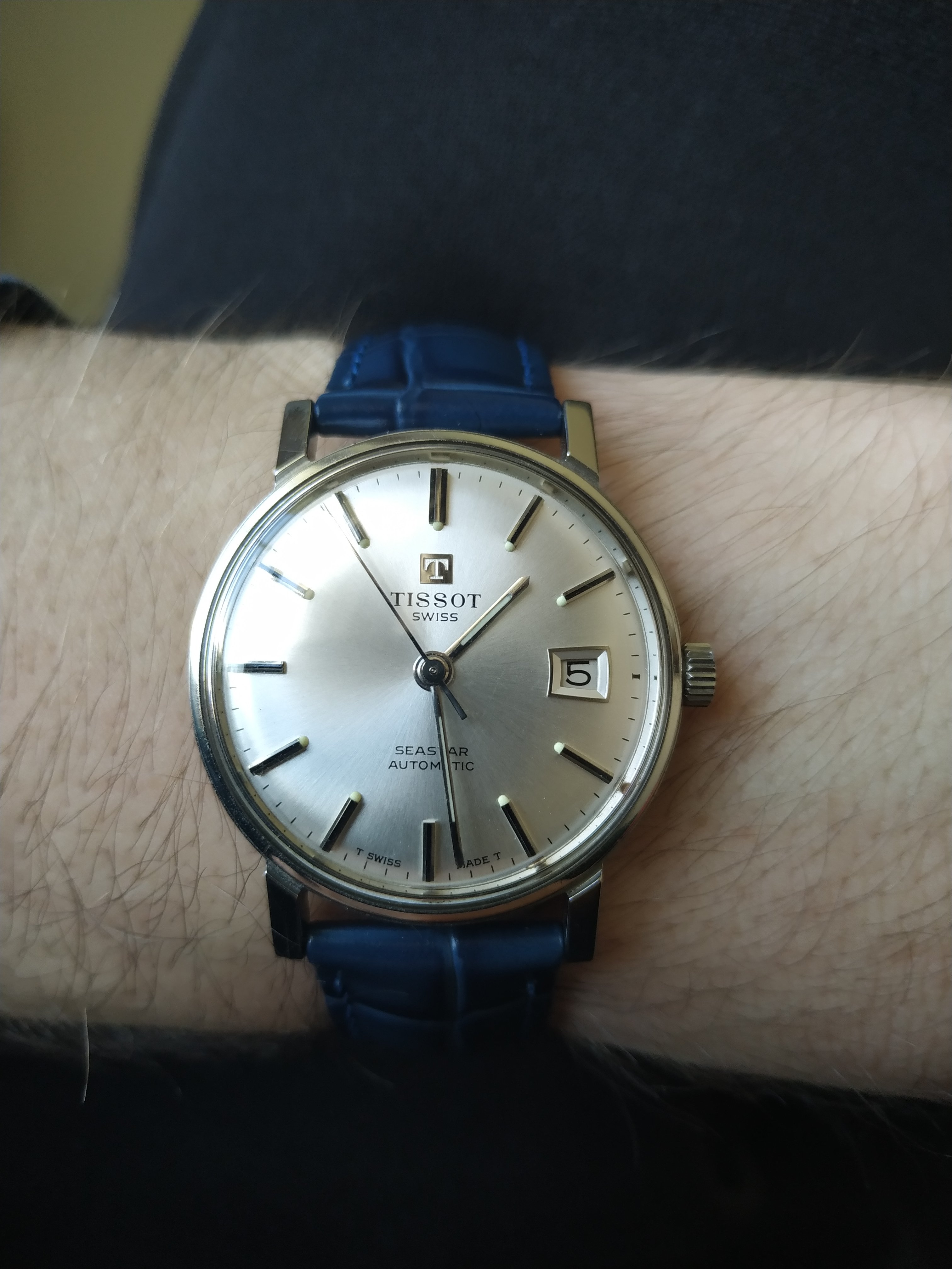 The first picture is the Arday, face up. The second picture is the Japanese copy of the Swiss FHF 72 (Font) movement in the Arday. The third picture is of Robert Day, former president of Bulova, Canada, after he retired, chatting with his son (father of the new owner of the watch), and the fourth picture is Robert Day’s grandson wearing his Arday Watch. He had a grand time regaling his relatives with this story, while wearing the watch on his wrist.